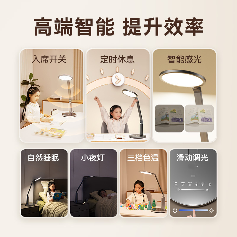 √智能感光实时亮度校正:根据环境光自动调节亮度,让台灯光线更精准适宜桌面周时时刻刻光线始终恒定舒适