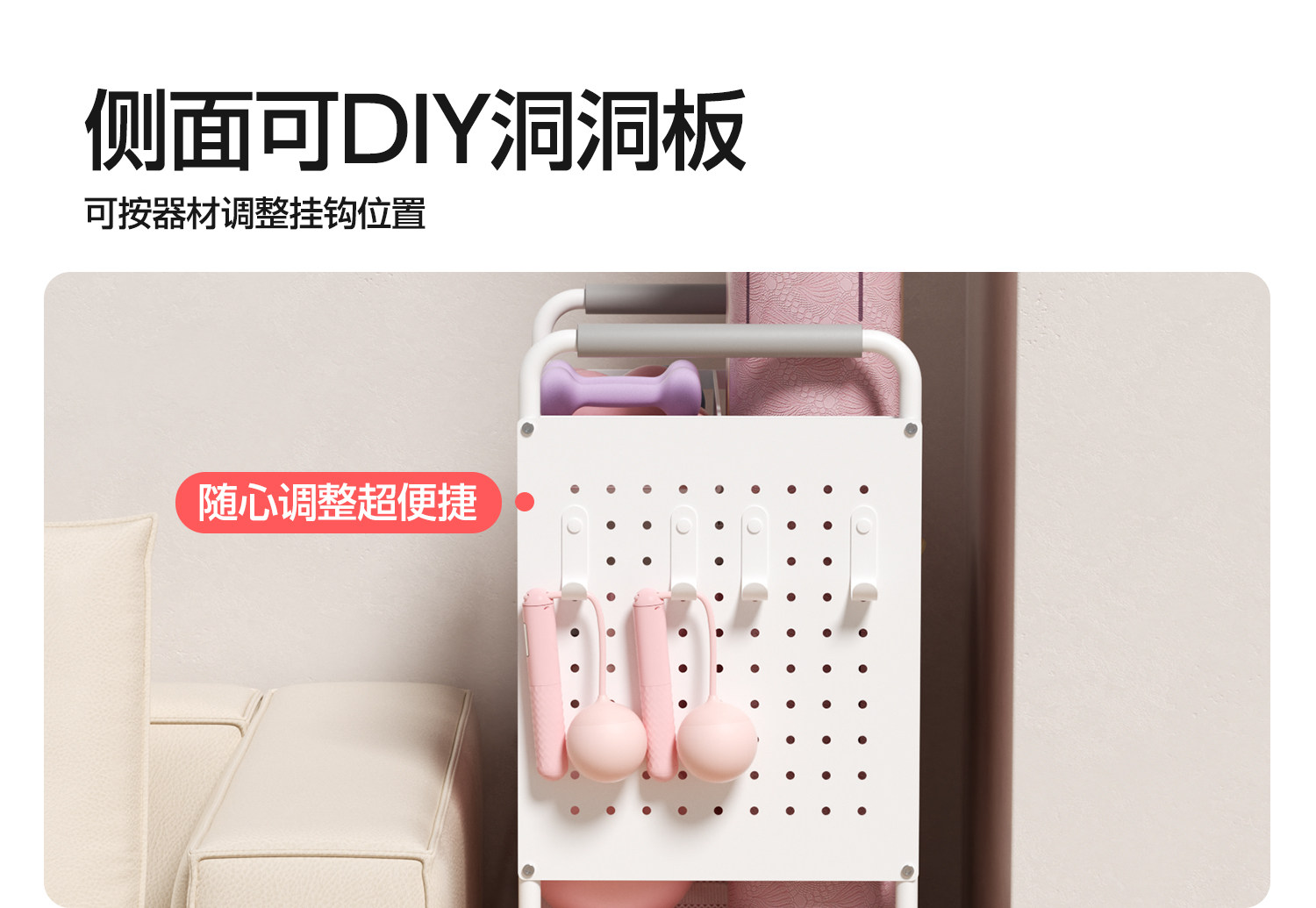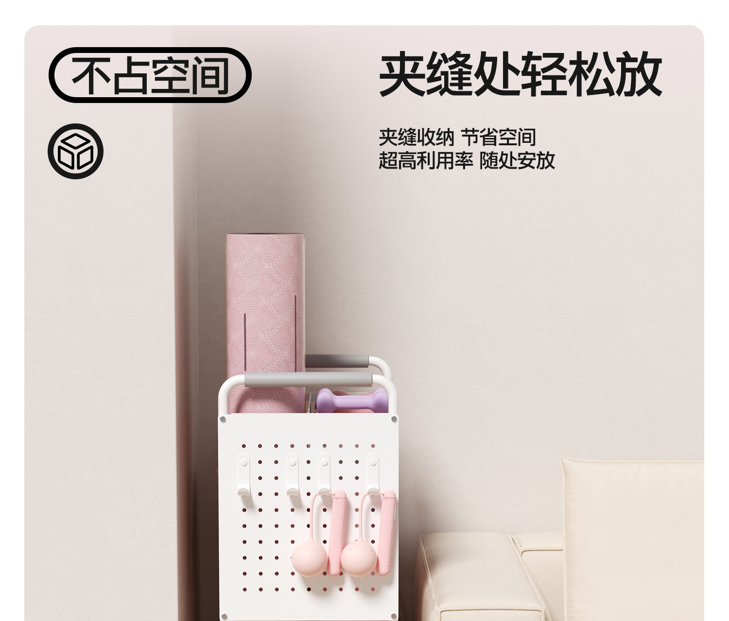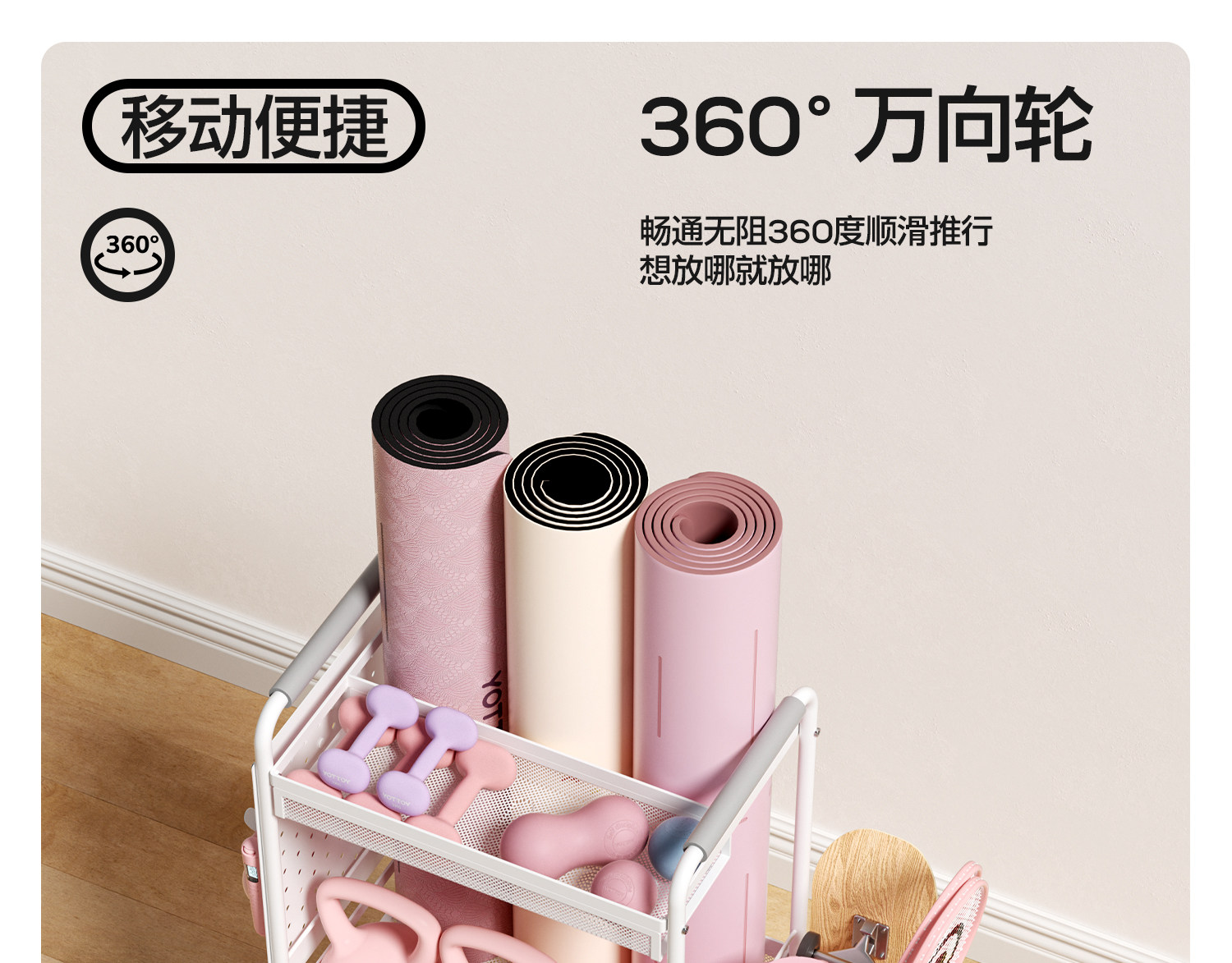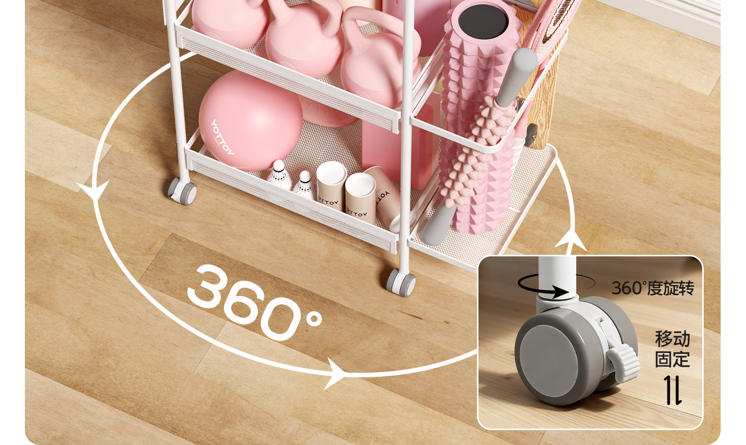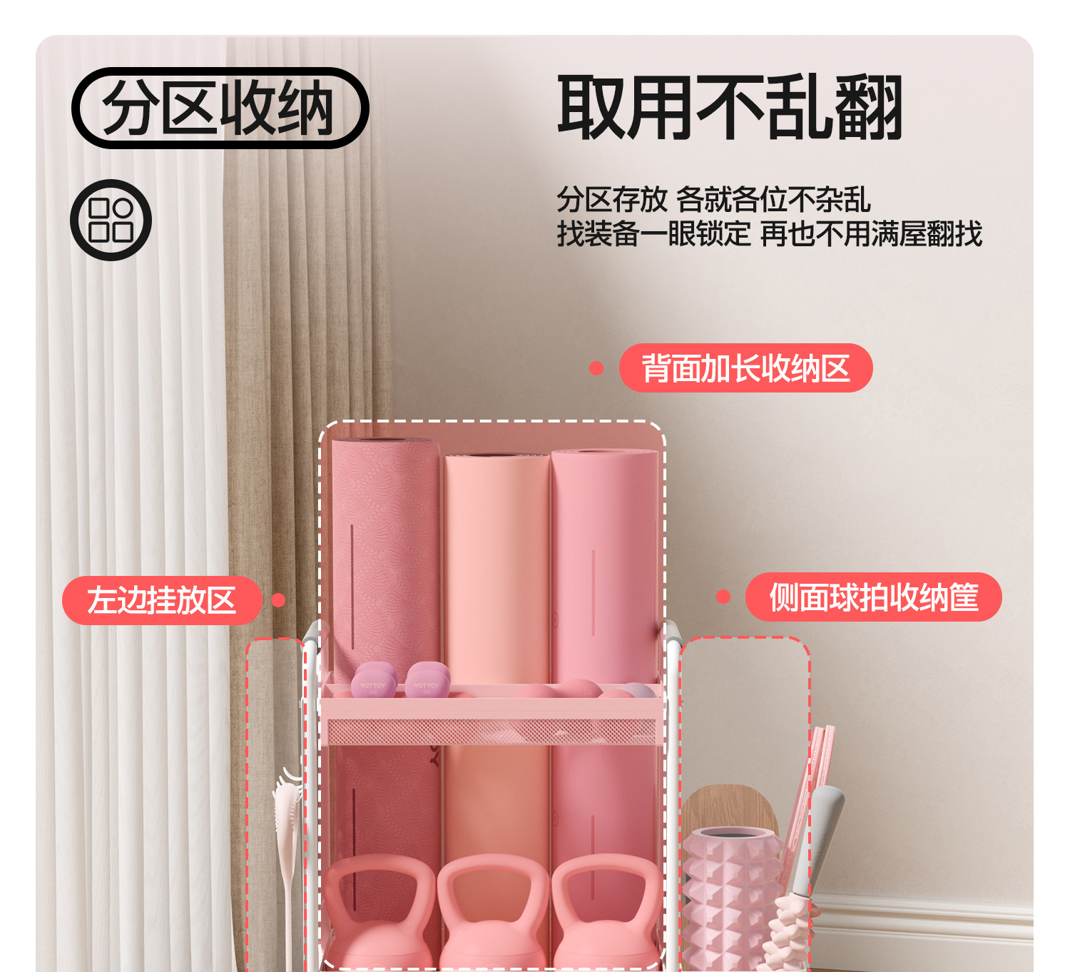 YOTTOY健身器材收纳架瑜伽垫收纳筐移动家用泡沫轴哑铃运动置物架