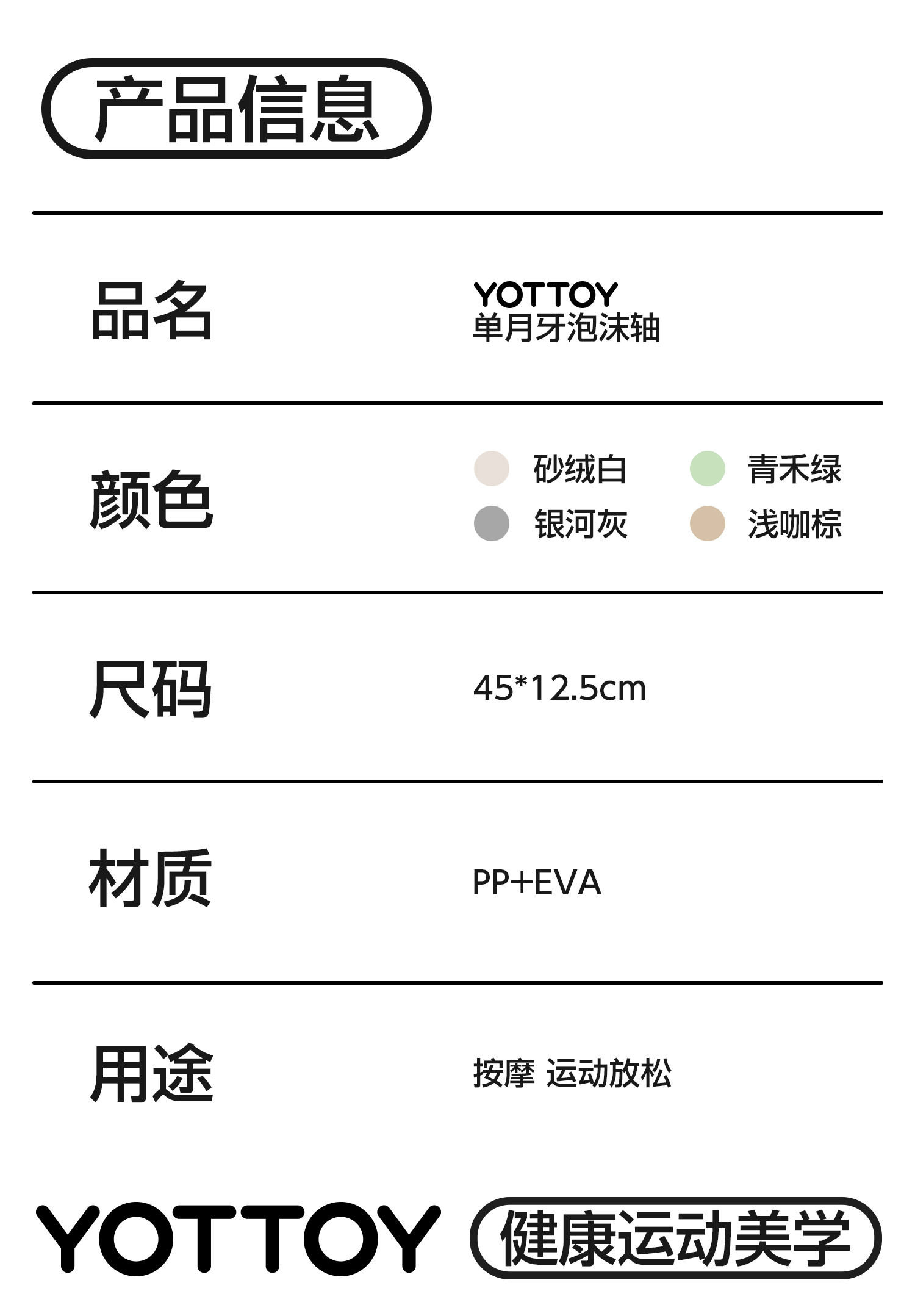YOTTOY泡沫轴肌肉放松专业筋膜滚轴瑜伽实心按摩滚轮瘦腿滚背神器