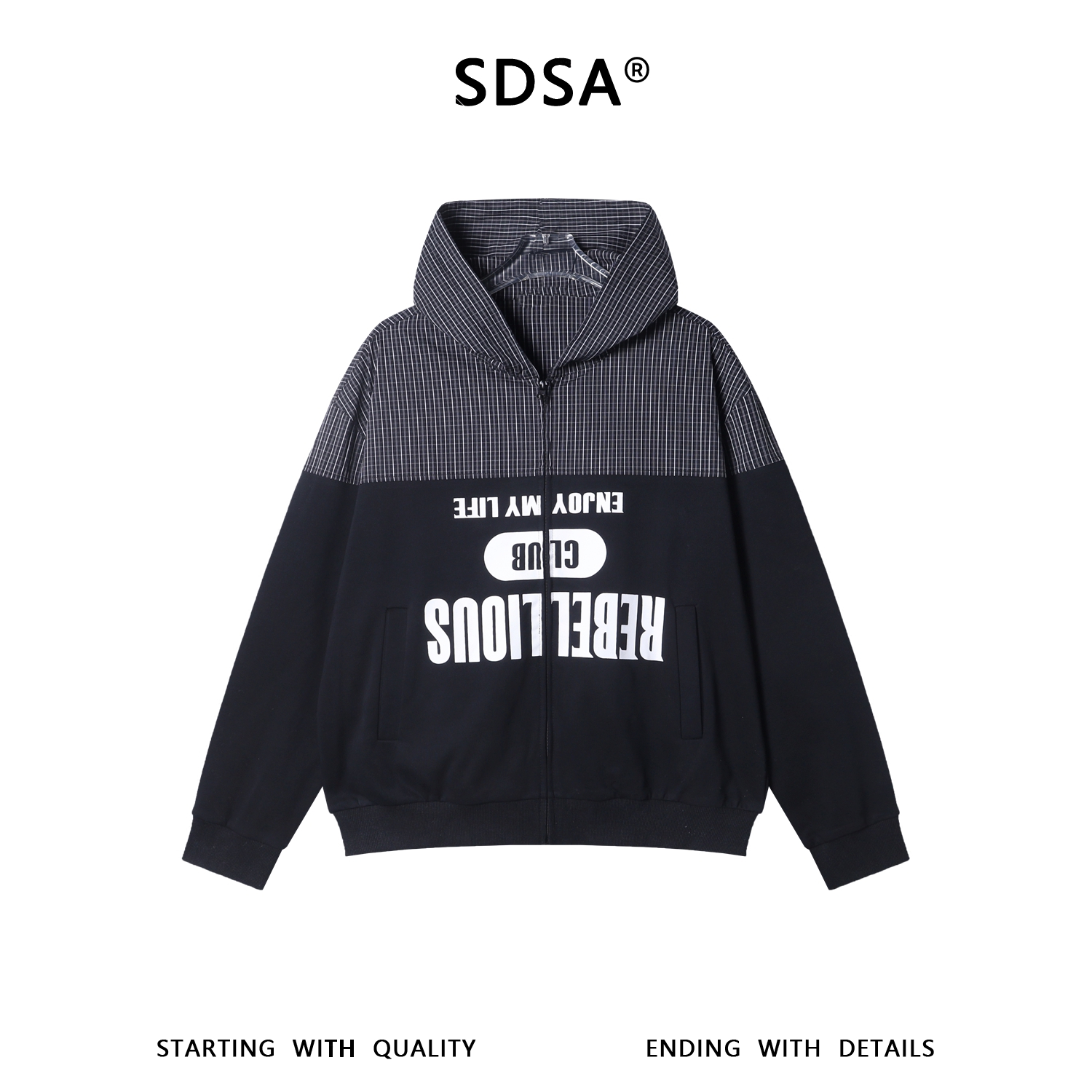 36002SDSA秋冬新款痞帅男装美式拼接撞色印花字母拉链连帽卫衣开衫百搭