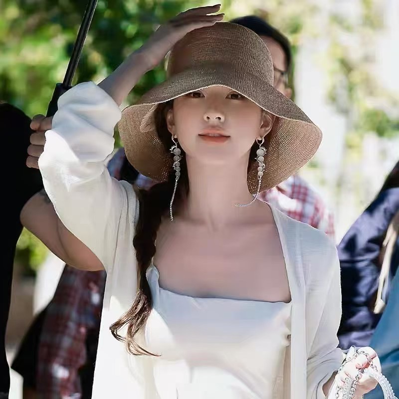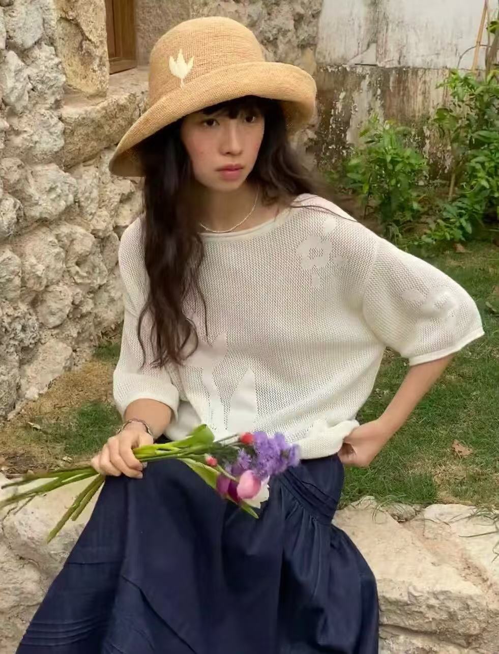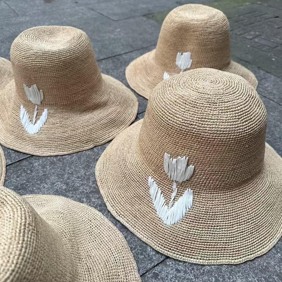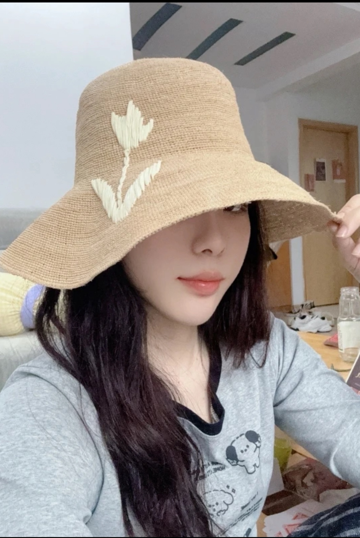 🌷赵露思同款郁金香拉菲草钩针大帽檐草盆