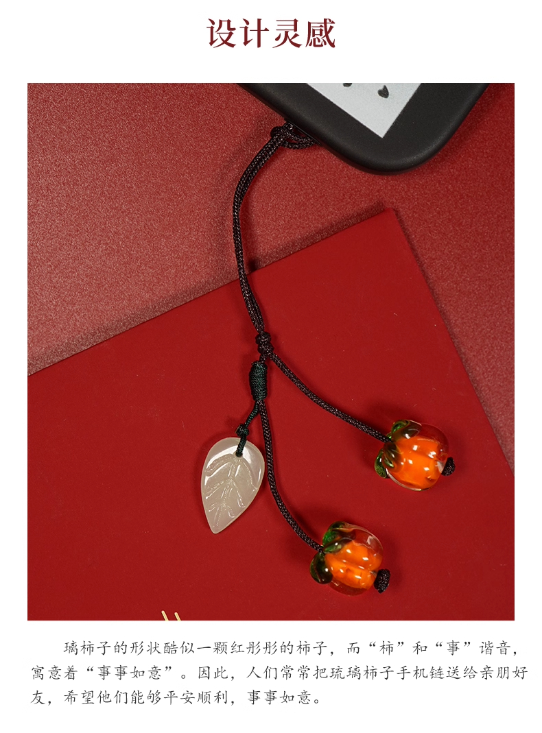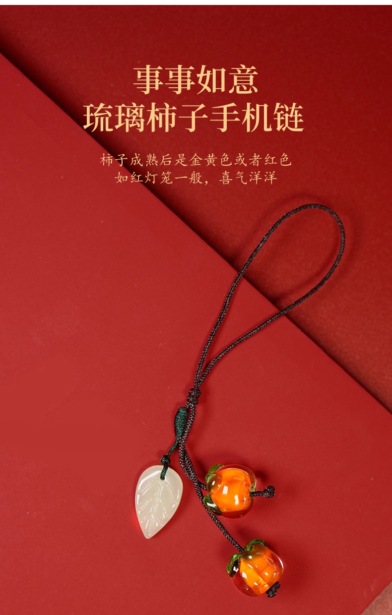 【普陀山】事事如意琉璃柿子手机链 可送人自用 普陀山发货