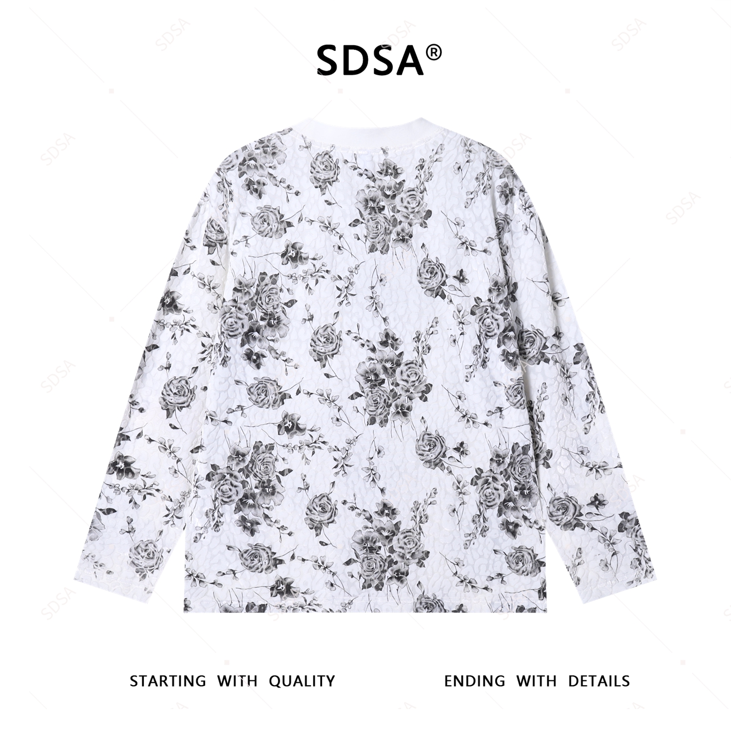 T4579SDSA男士秋冬新款轻奢痞帅男装泡泡植绒圆领长袖T恤花卉印花时尚