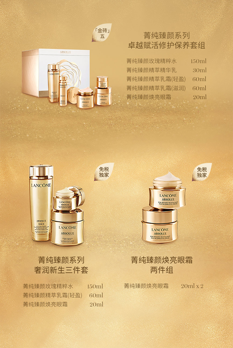 【航免仓】LANCOME兰蔻菁纯臻颜三件套(轻盈乳霜60ml+滋润面霜60ml+眼霜20ml)