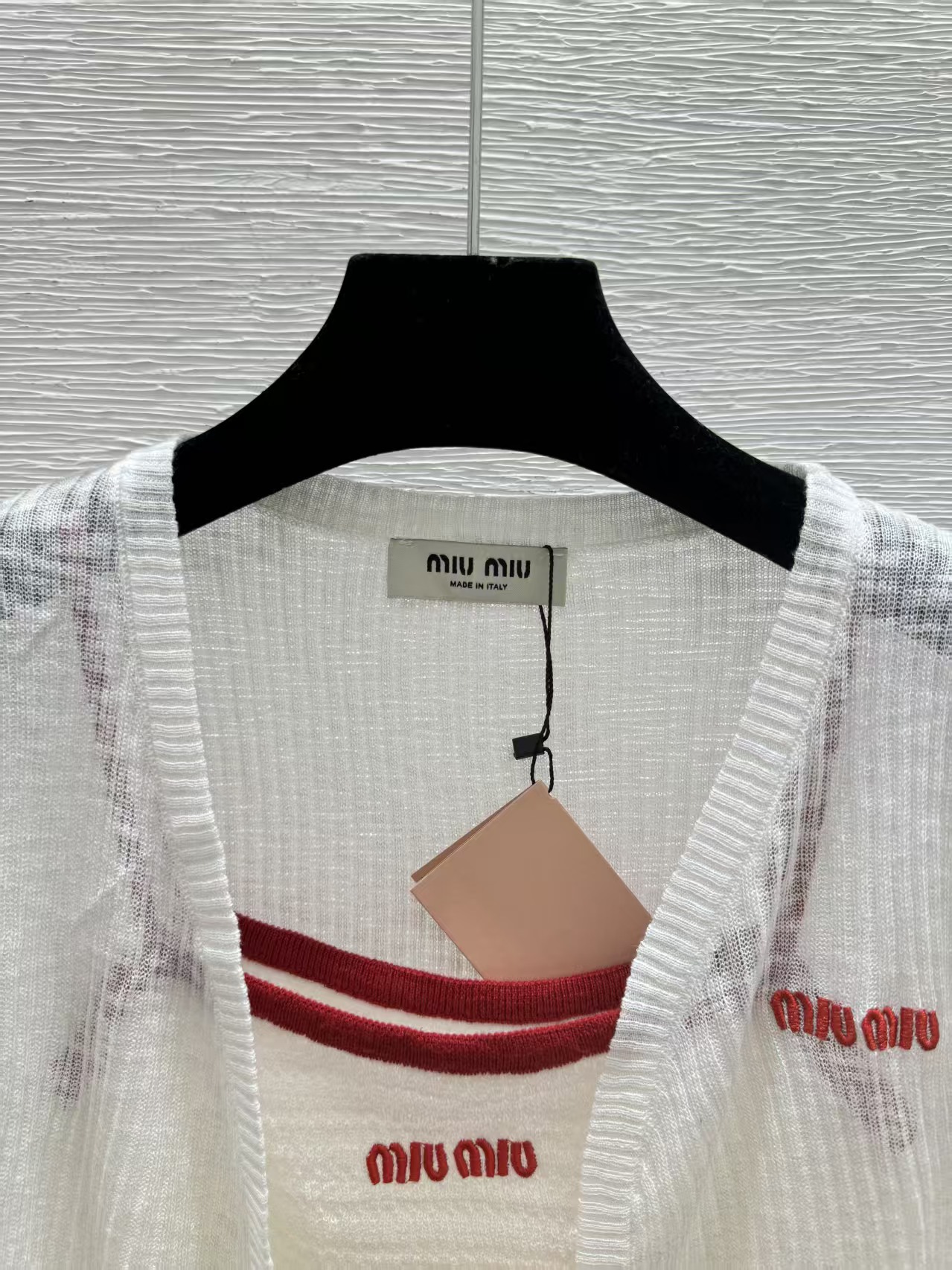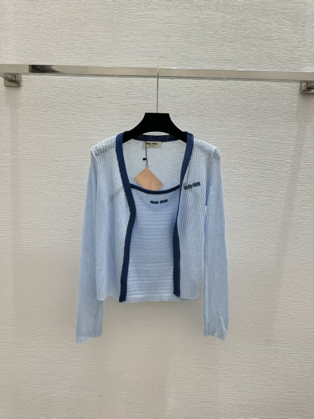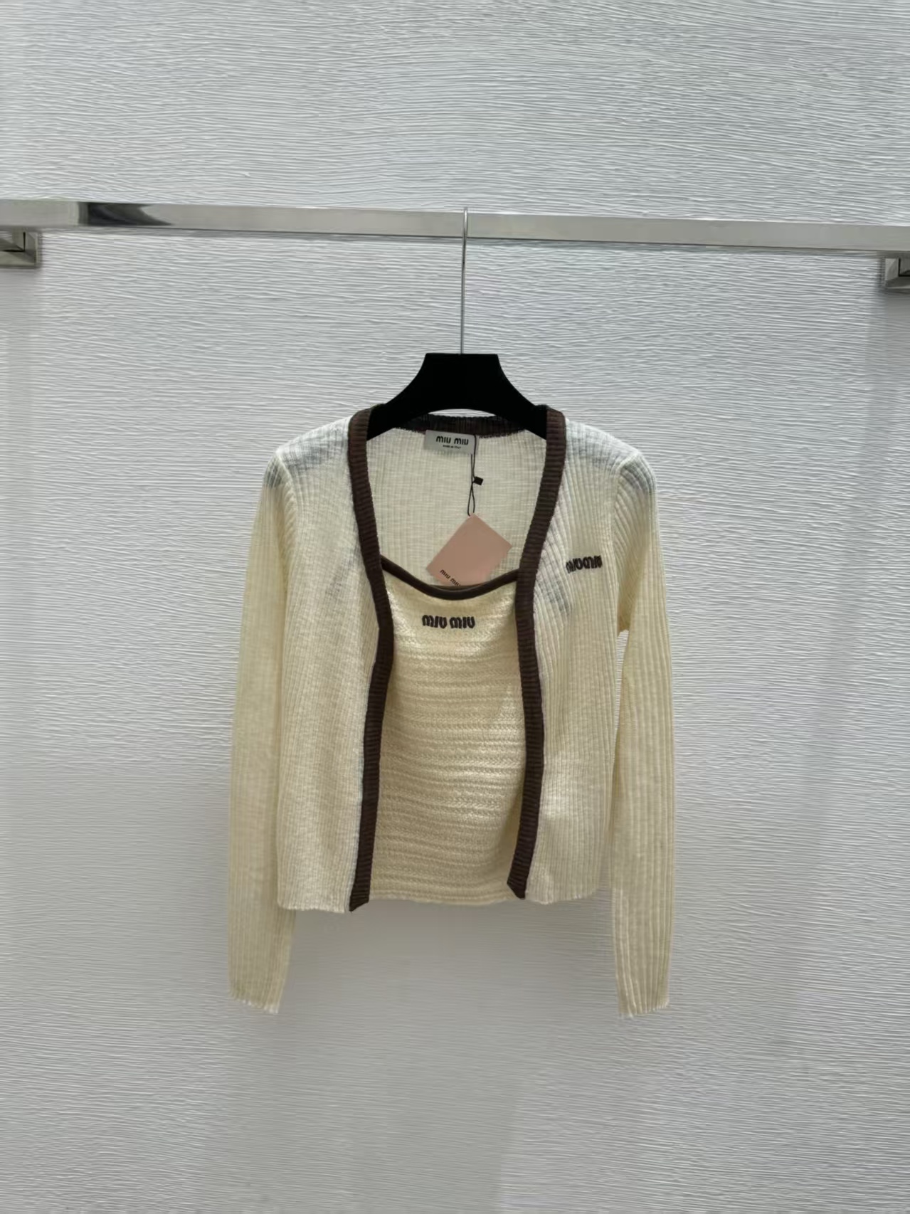【此款只换码不退】缪缪 撞色边薄款针织开衫+logo 刺绣吊带背心(MM)