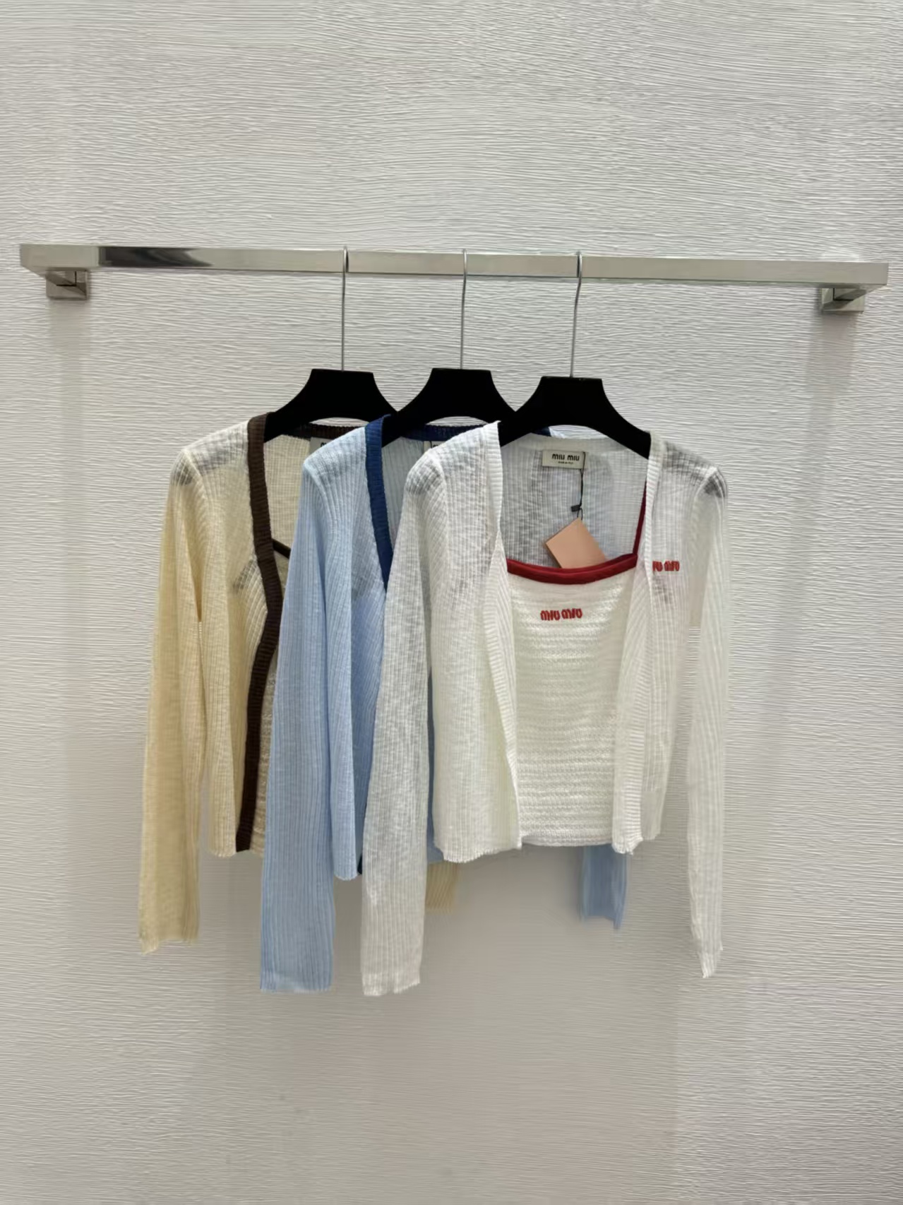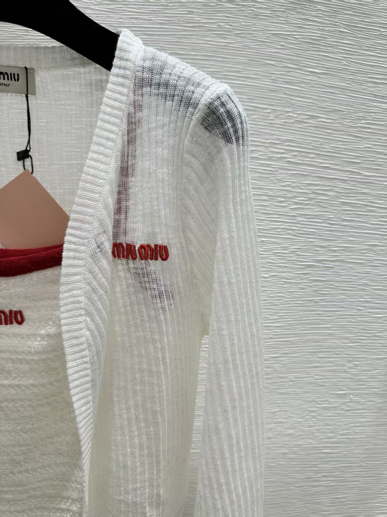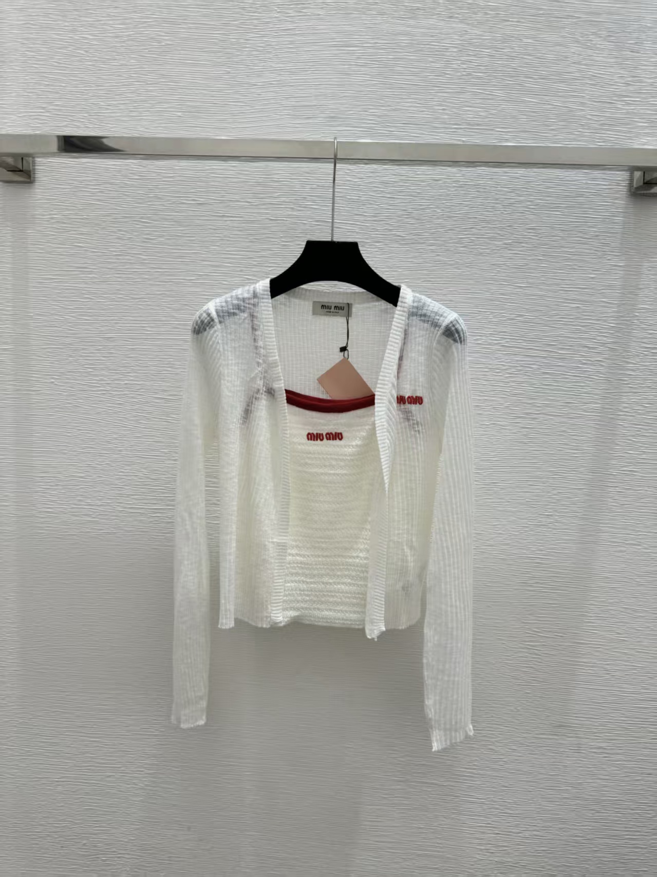 【此款只换码不退】缪缪 撞色边薄款针织开衫+logo 刺绣吊带背心(MM)
