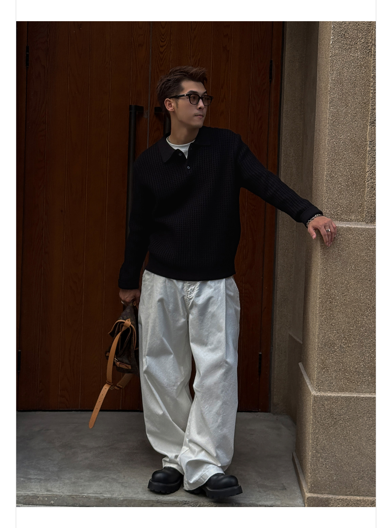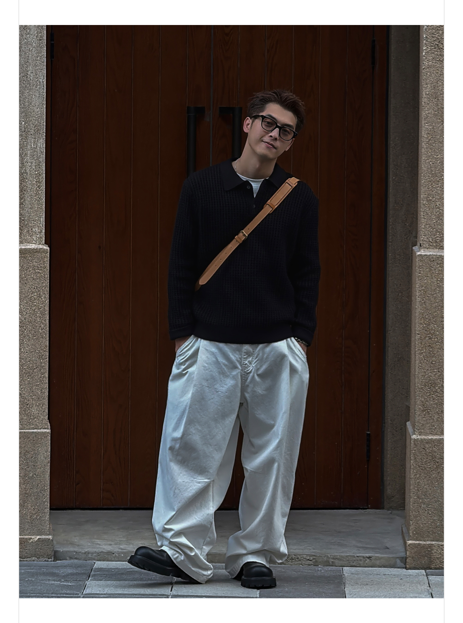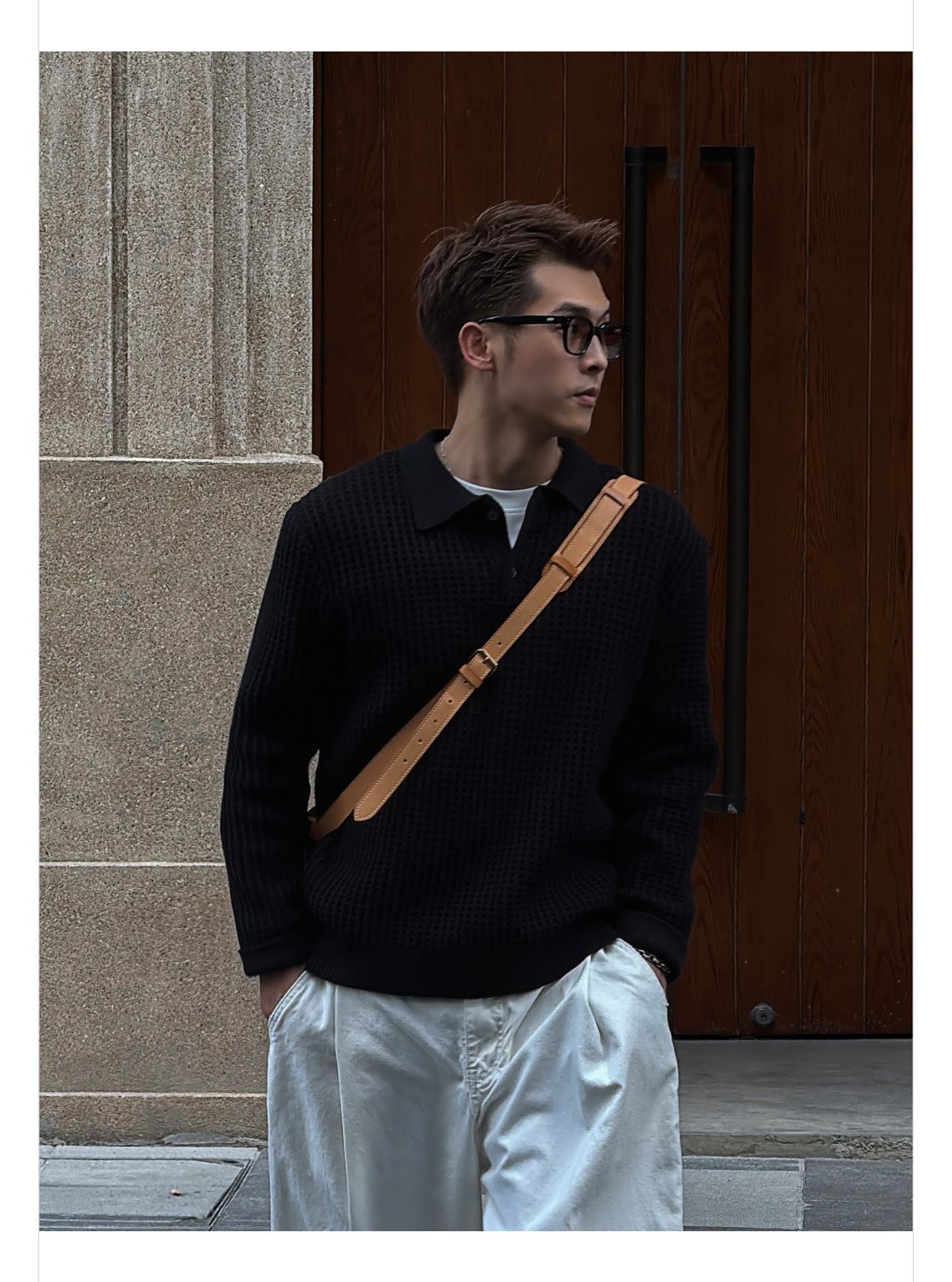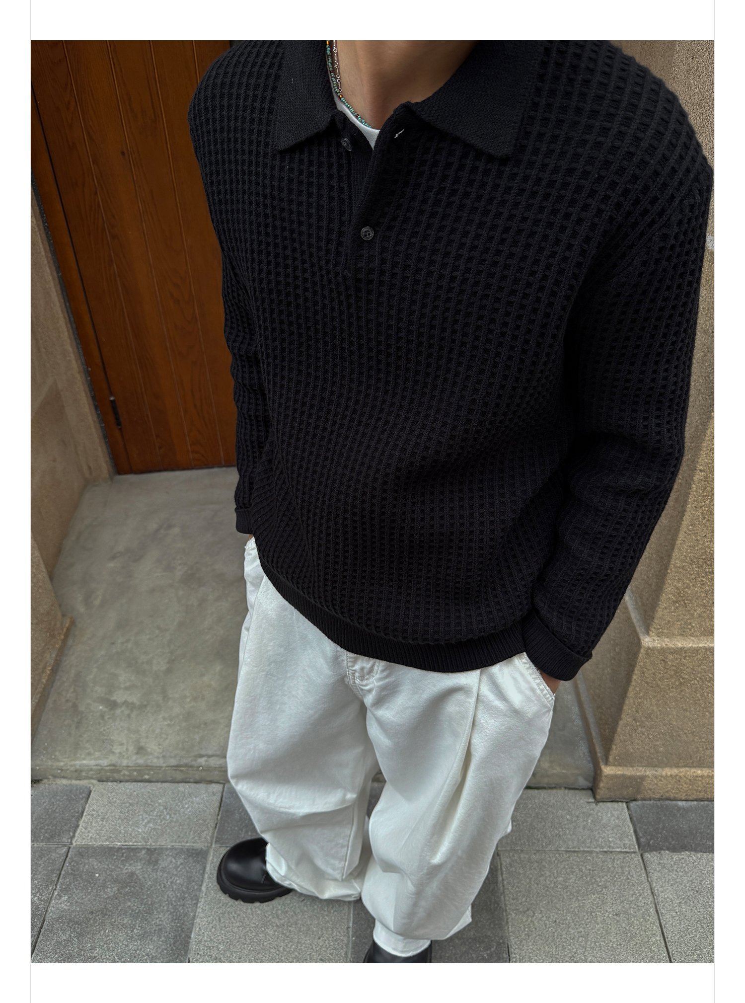徐太浪【格子扭花 慵懒风】黑色套头POLO领毛衣男春秋打底针织衫