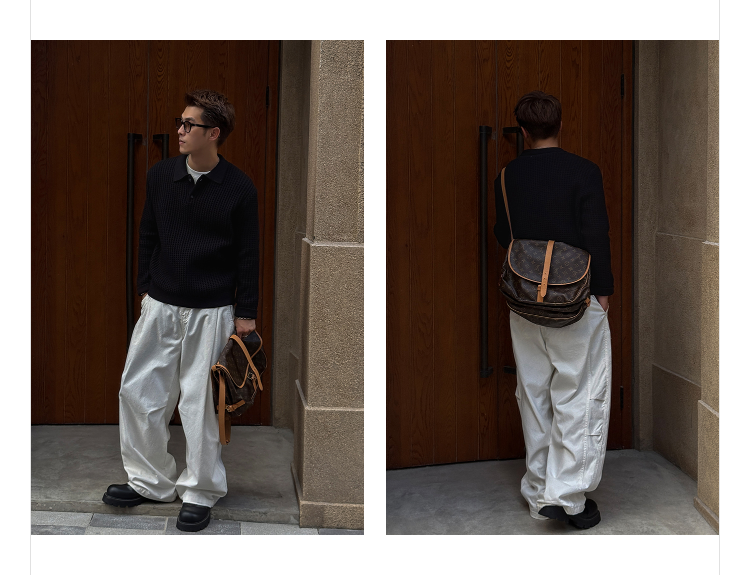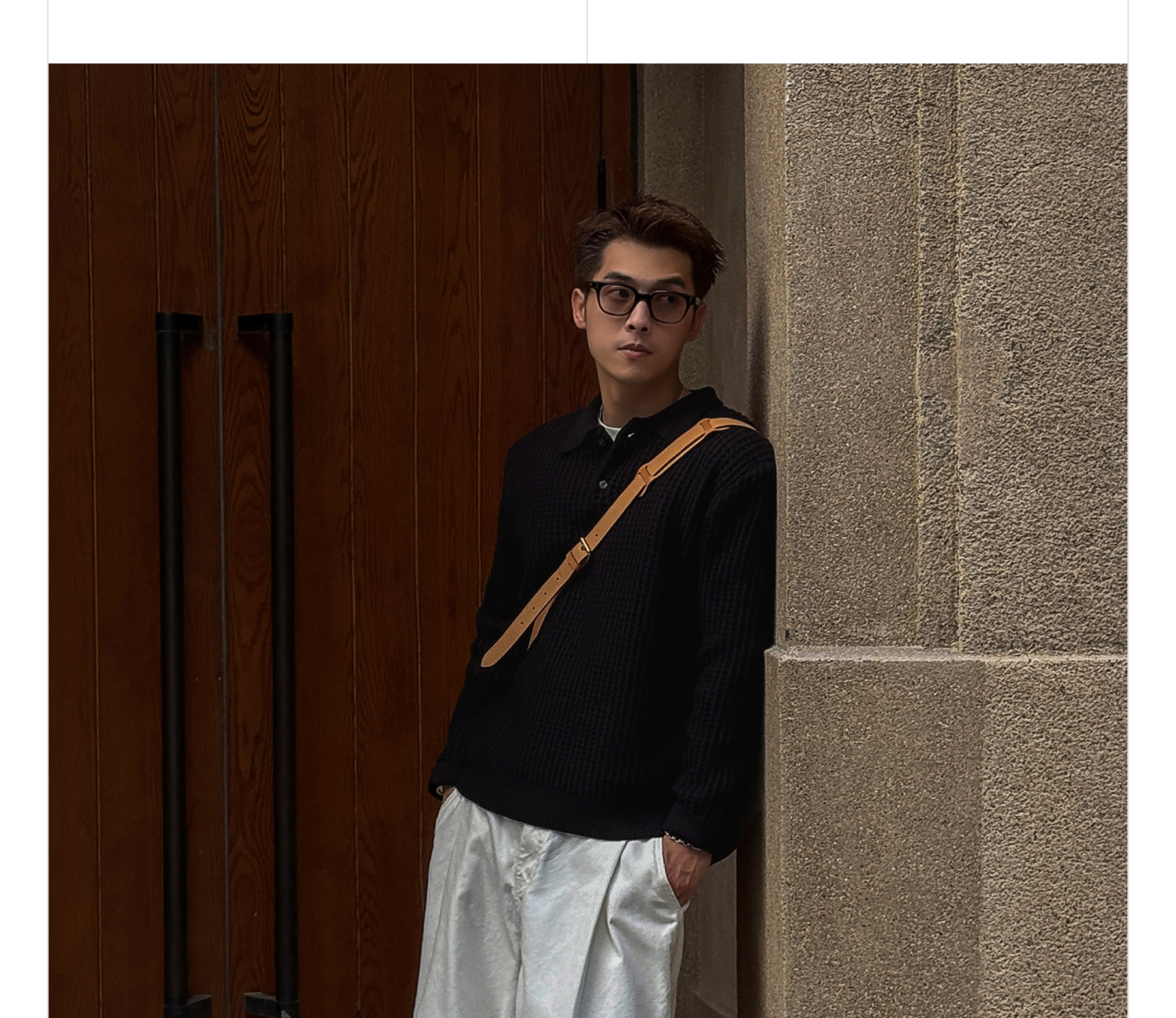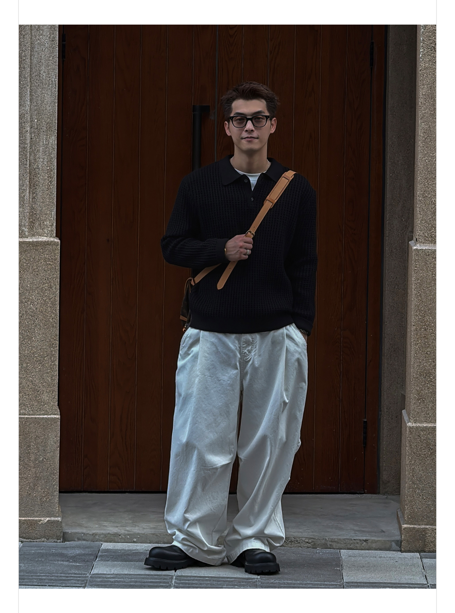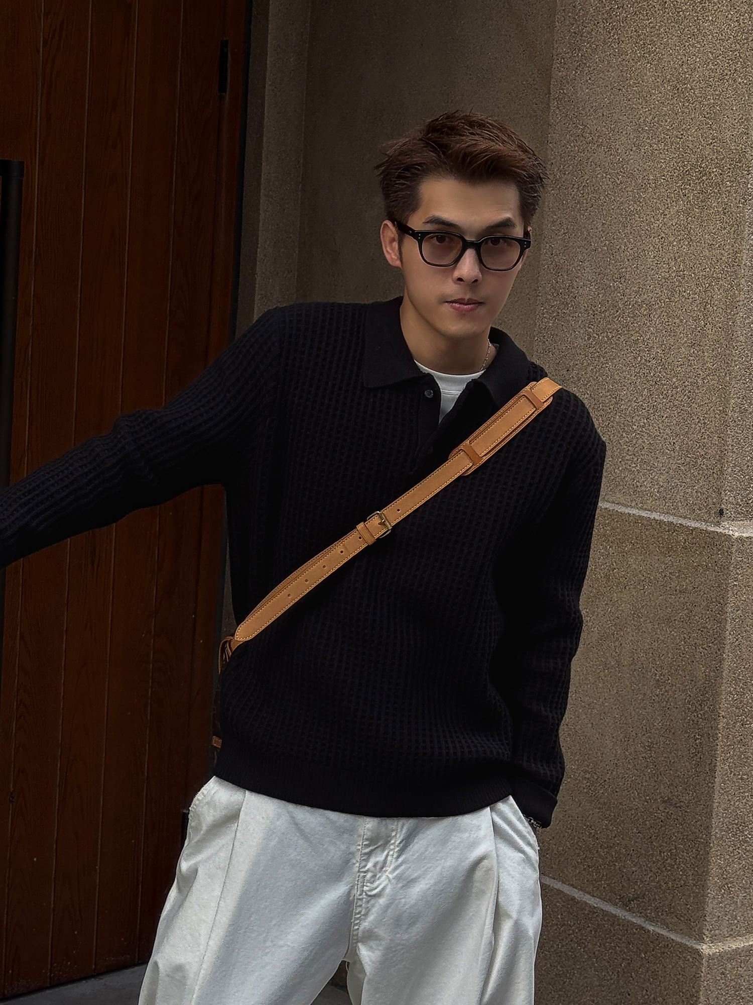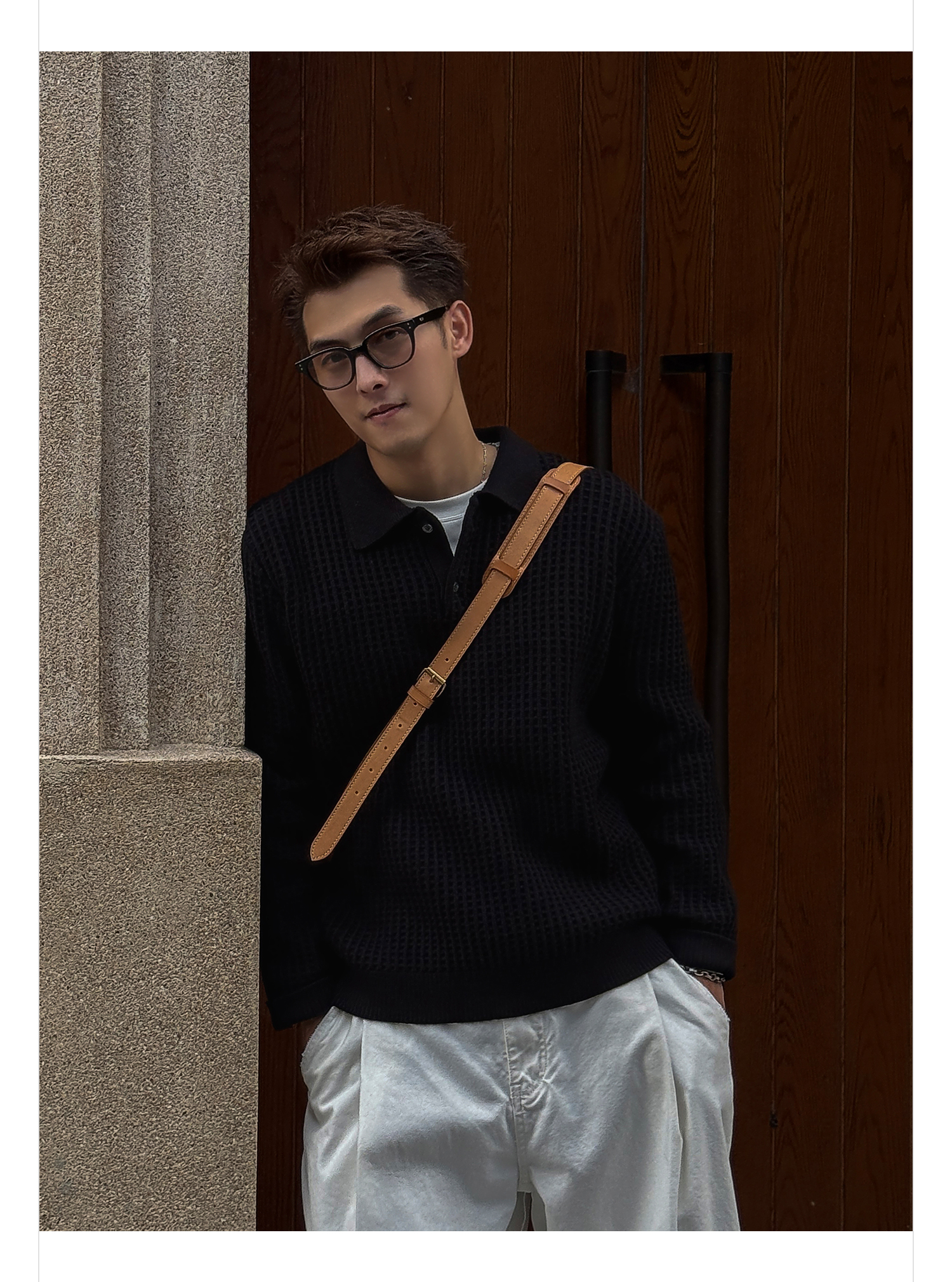 徐太浪【格子扭花 慵懒风】黑色套头POLO领毛衣男春秋打底针织衫
