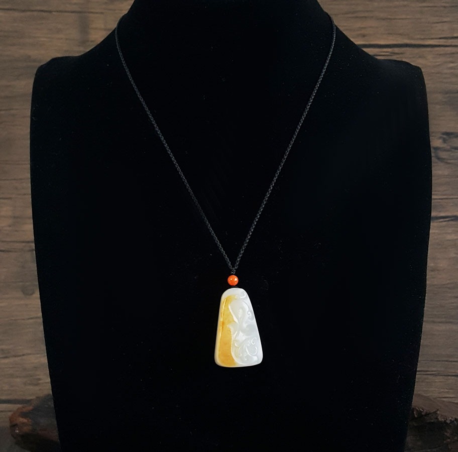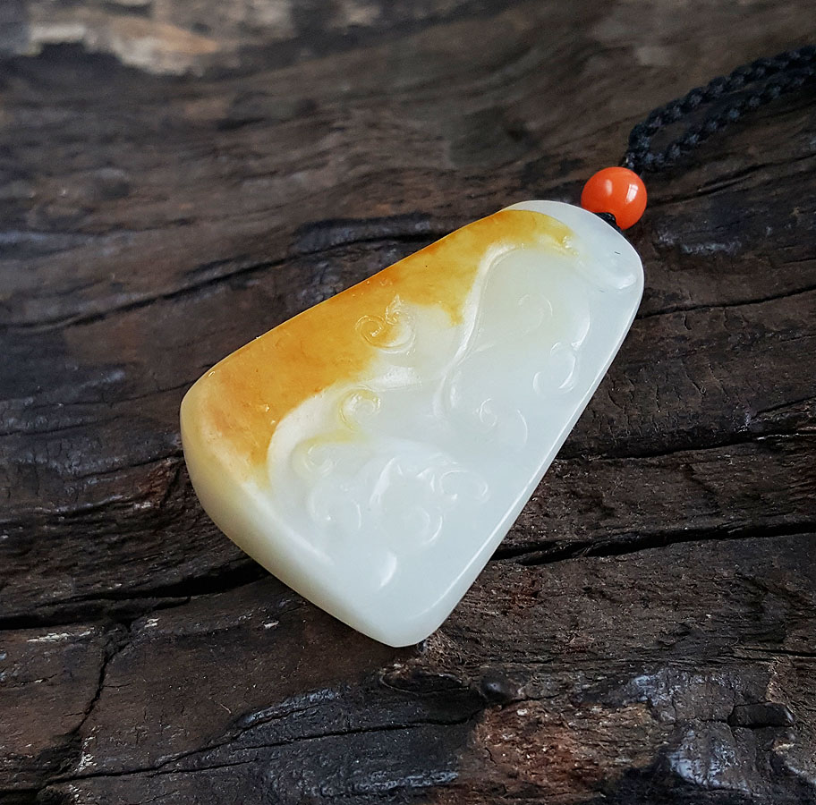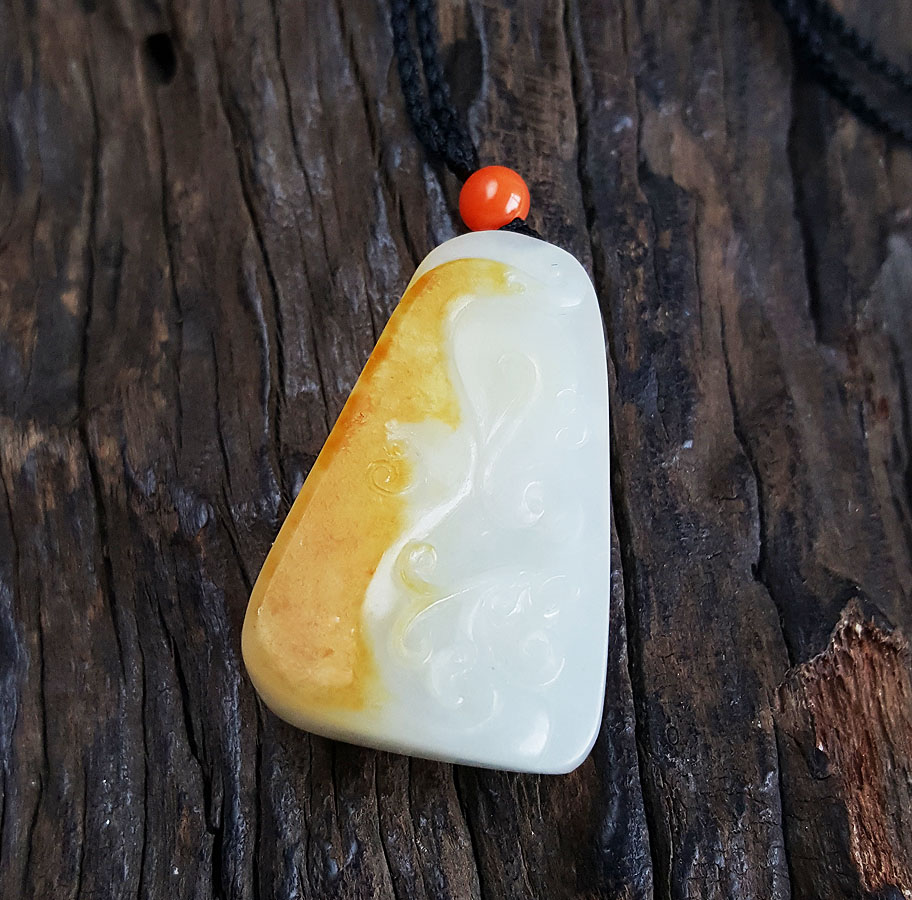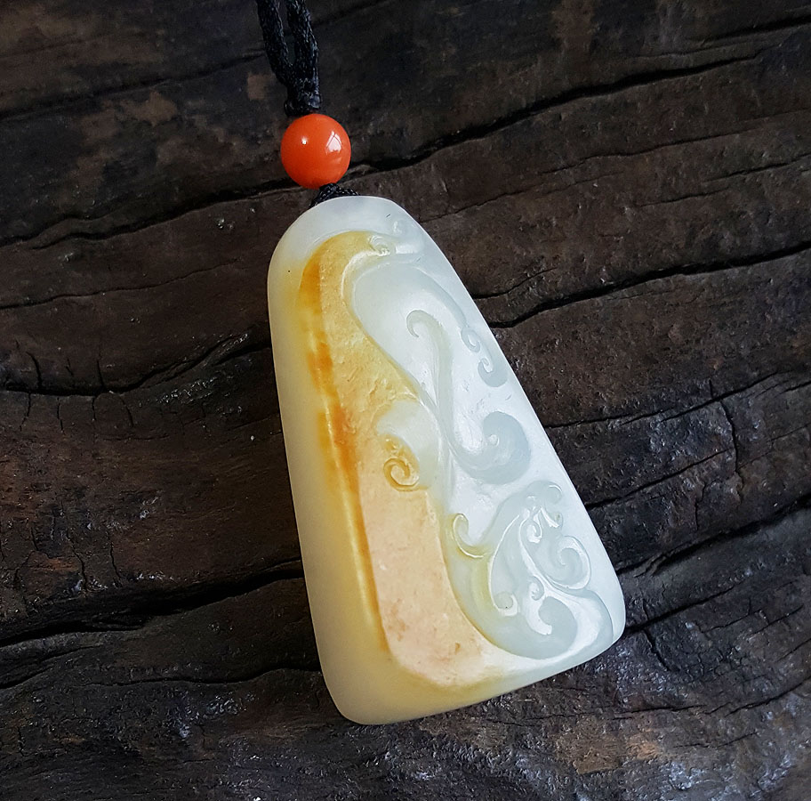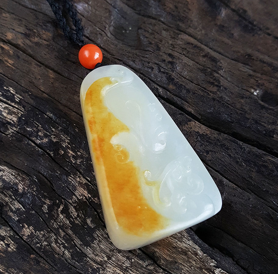 【天然正品】天然精品新疆籽料洒金皮如意图案和田玉吊坠项链36.1*22.2*11.2MM(皆取最大值)190224XY18+