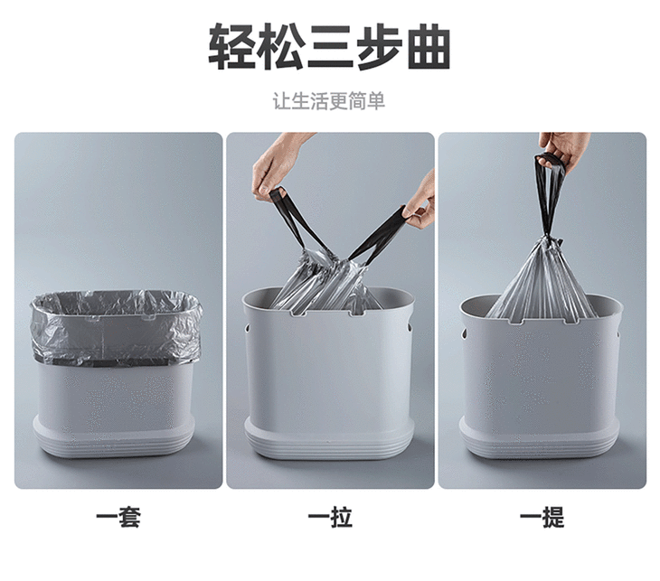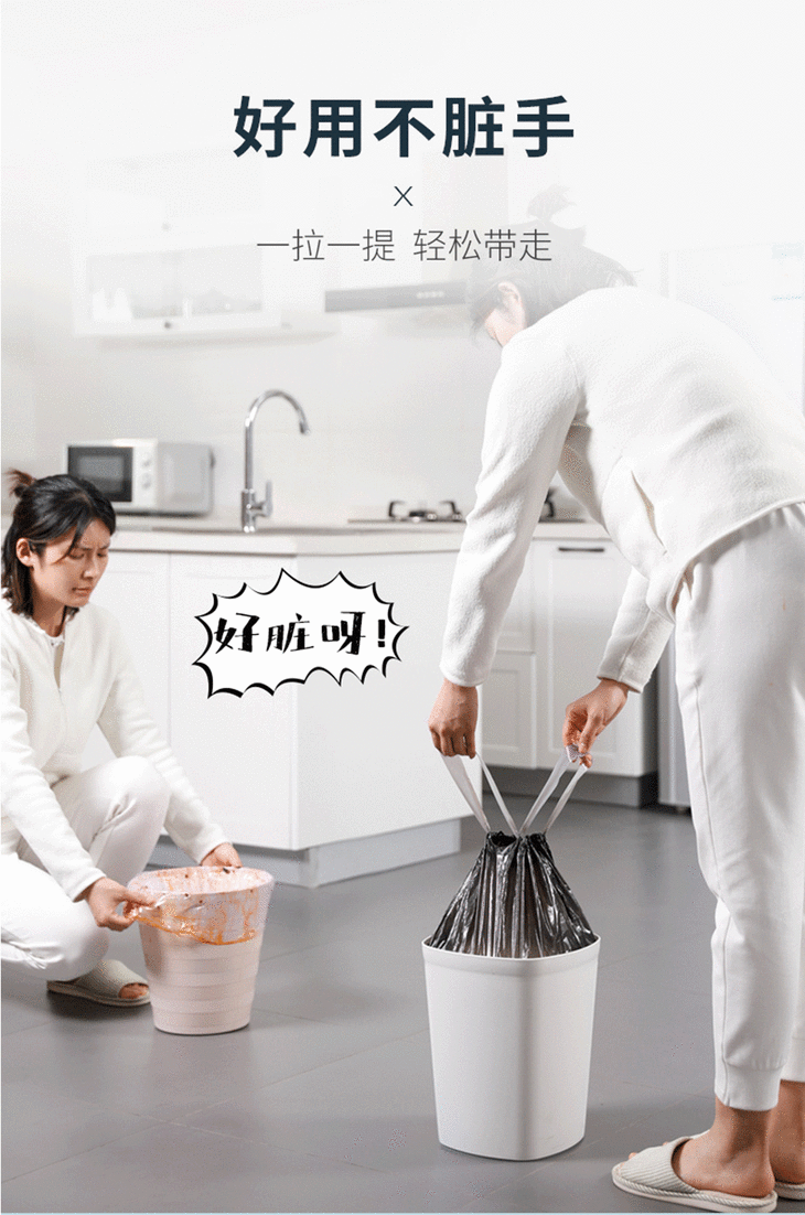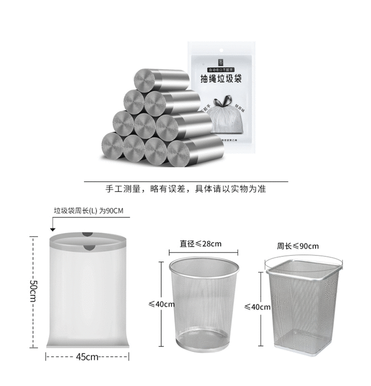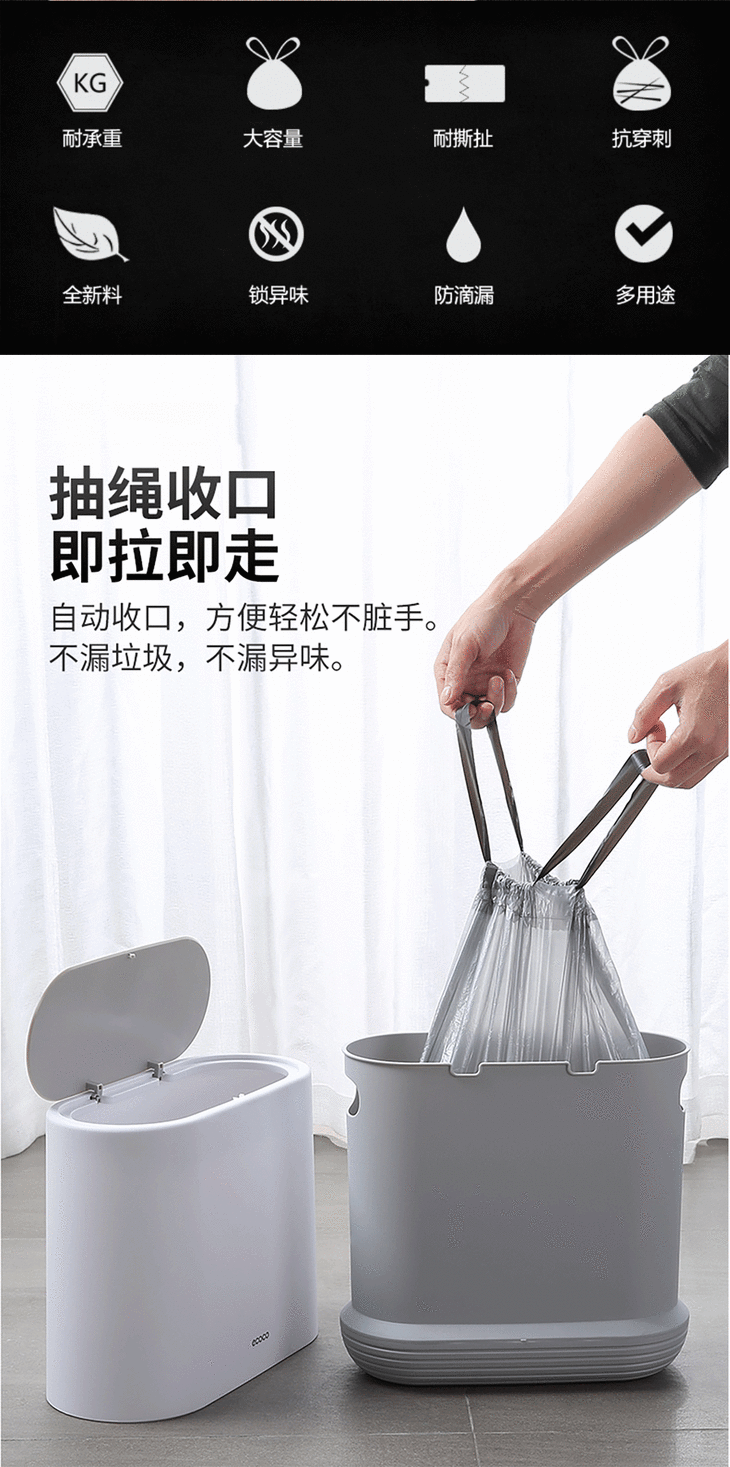 家用断点式自动收口垃圾袋,加厚塑料手提抽绳银钢袋一次性垃圾袋【188-2】