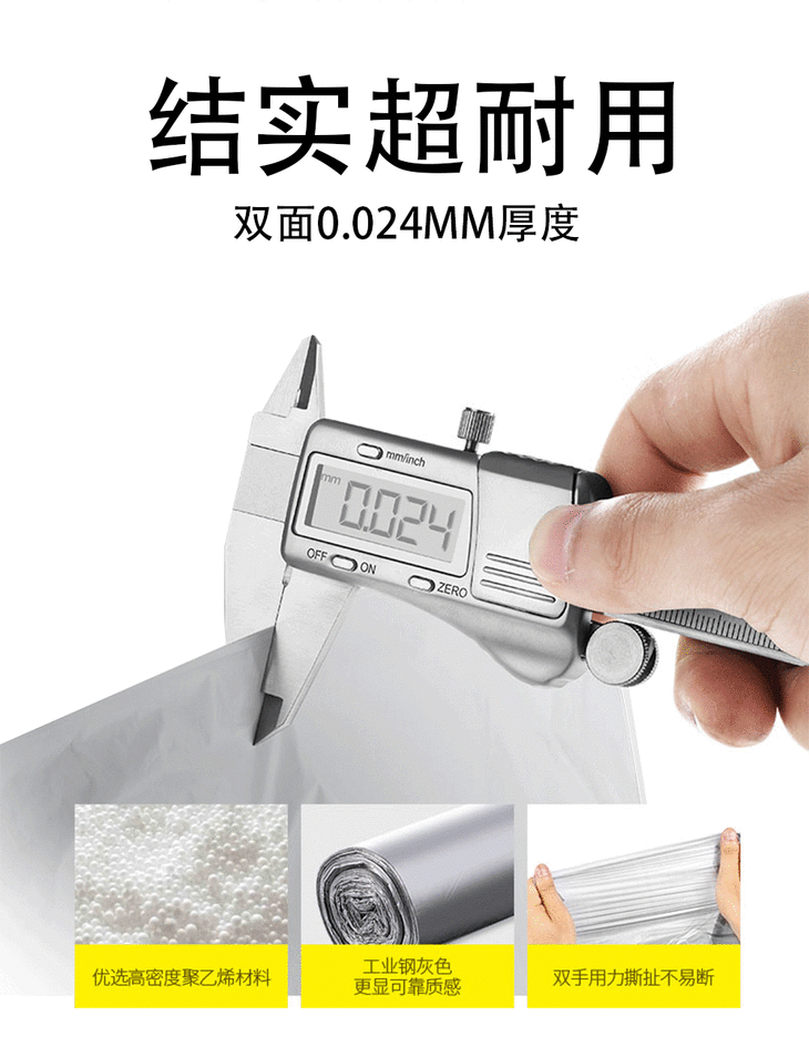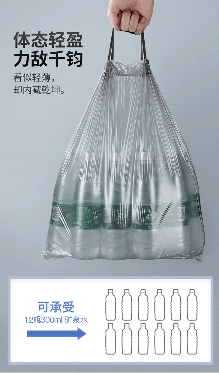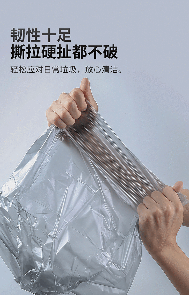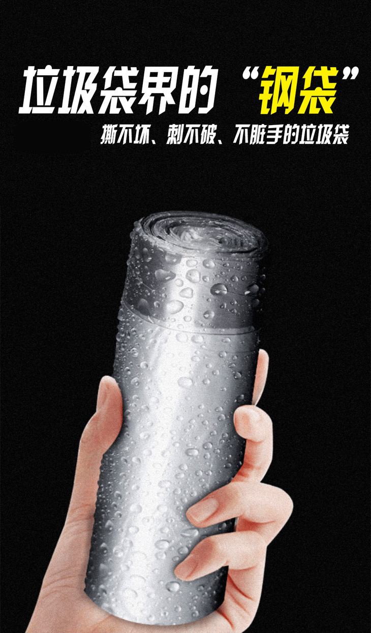 家用断点式自动收口垃圾袋,加厚塑料手提抽绳银钢袋一次性垃圾袋【188-2】