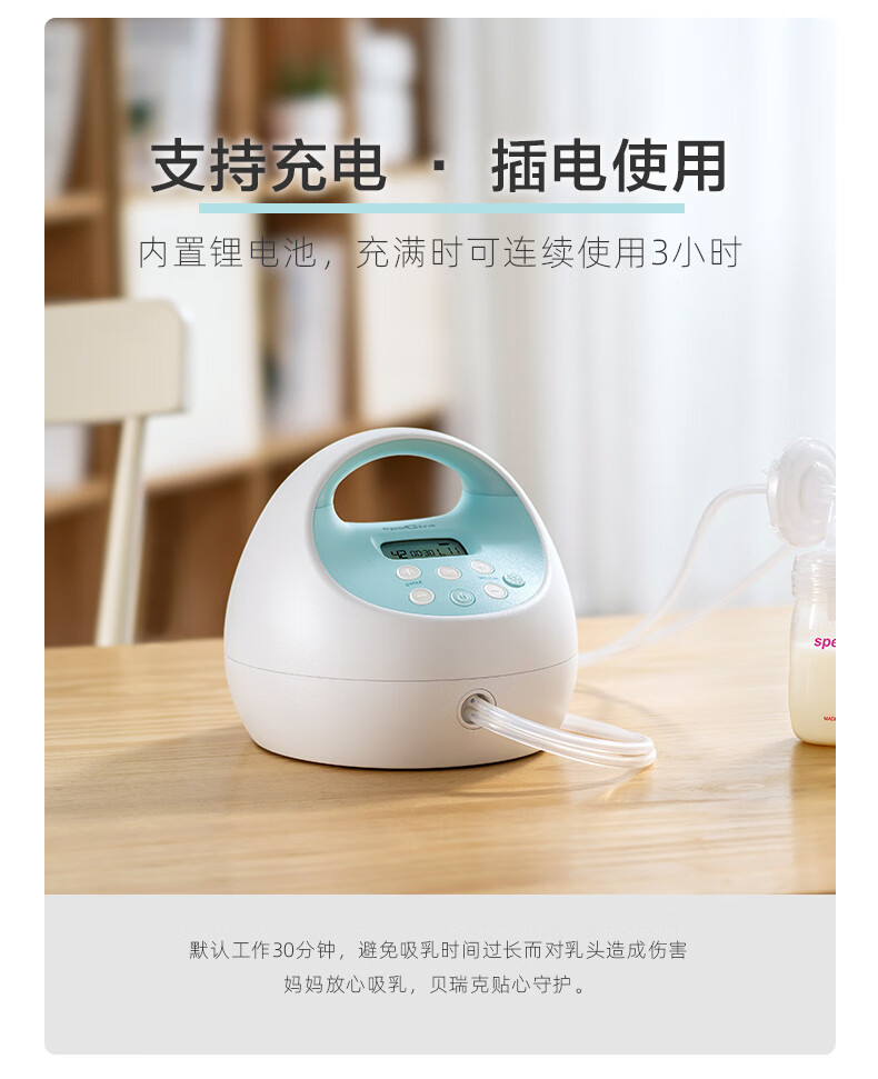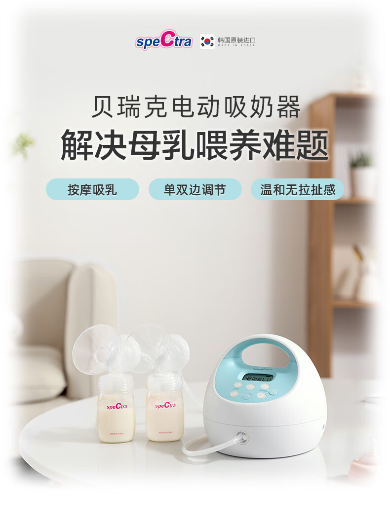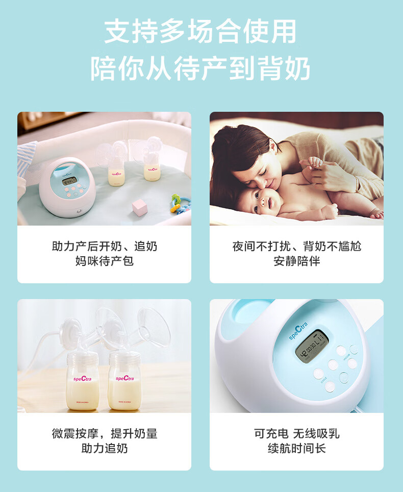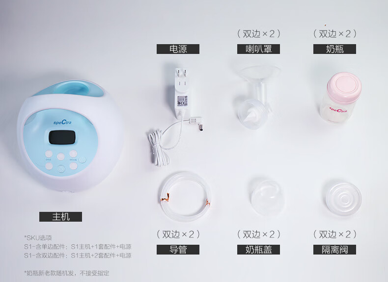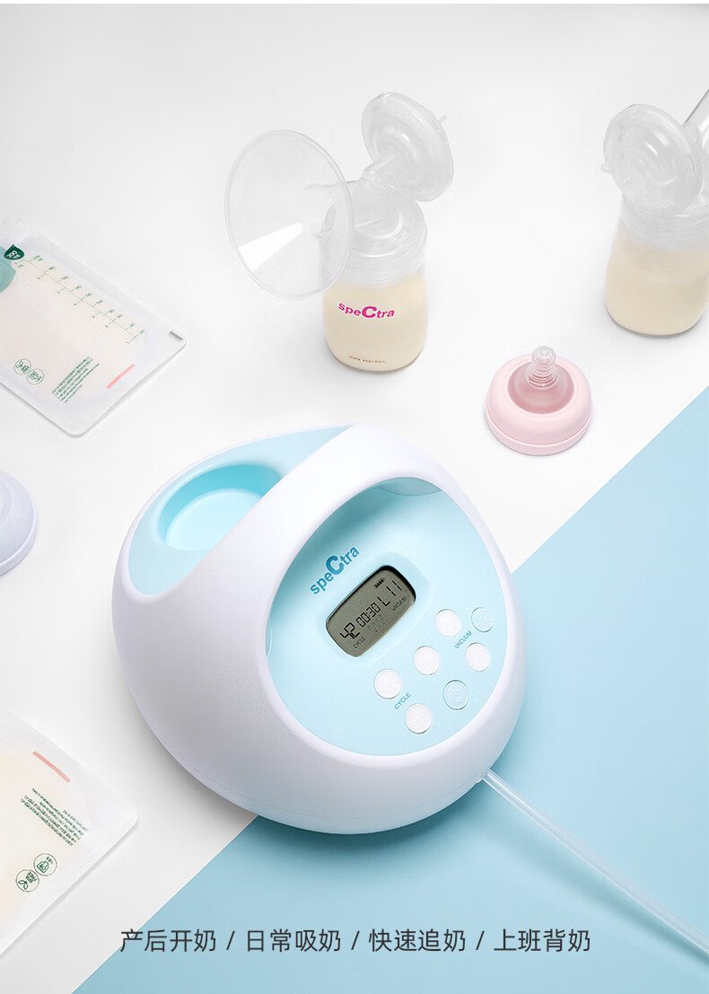 贝瑞克(spectra)电动吸奶器S1按摩吸乳器充电式防回流双边产后挤奶器蓝胖子S1 双边配件【微震按摩可充电】