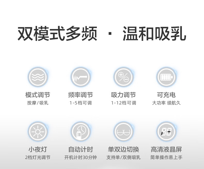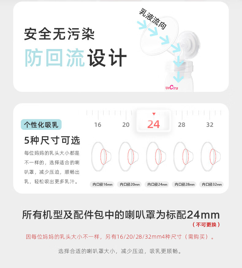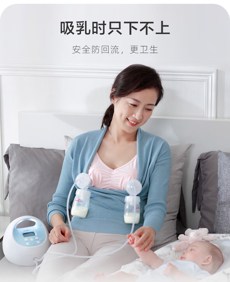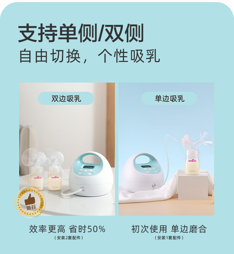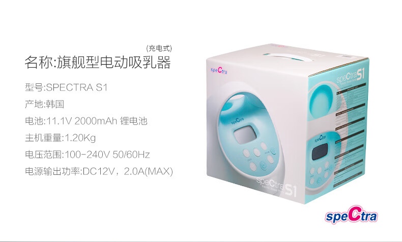 贝瑞克(spectra)电动吸奶器S1按摩吸乳器充电式防回流双边产后挤奶器蓝胖子S1 双边配件【微震按摩可充电】
