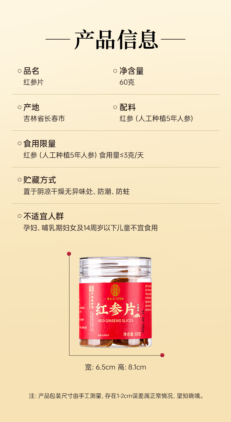 雷允上红参片60g/瓶(1.4-1.6cm)