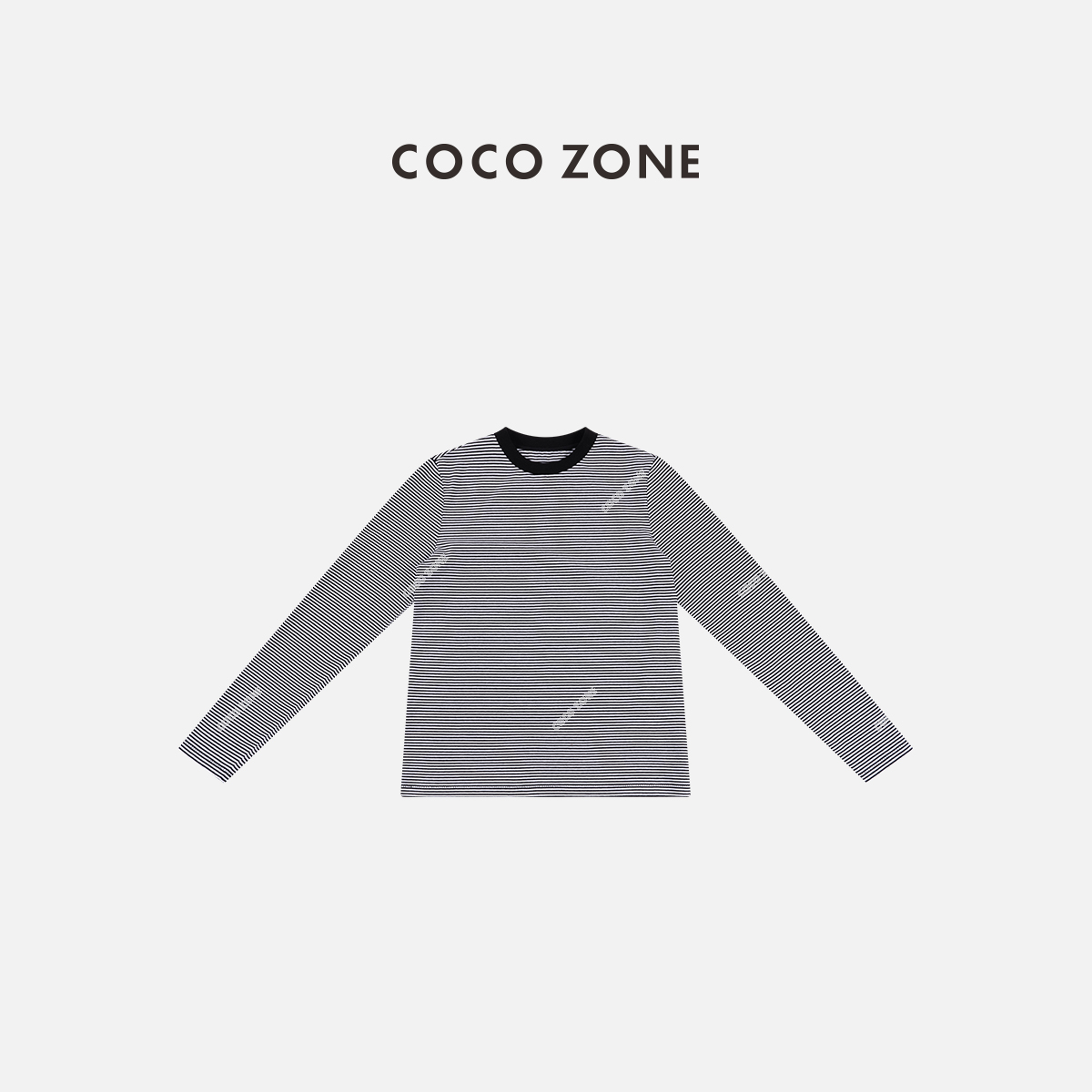 COCO ZONE 设计感条纹长袖T恤撞色圆领显瘦上衣CC1C2303
