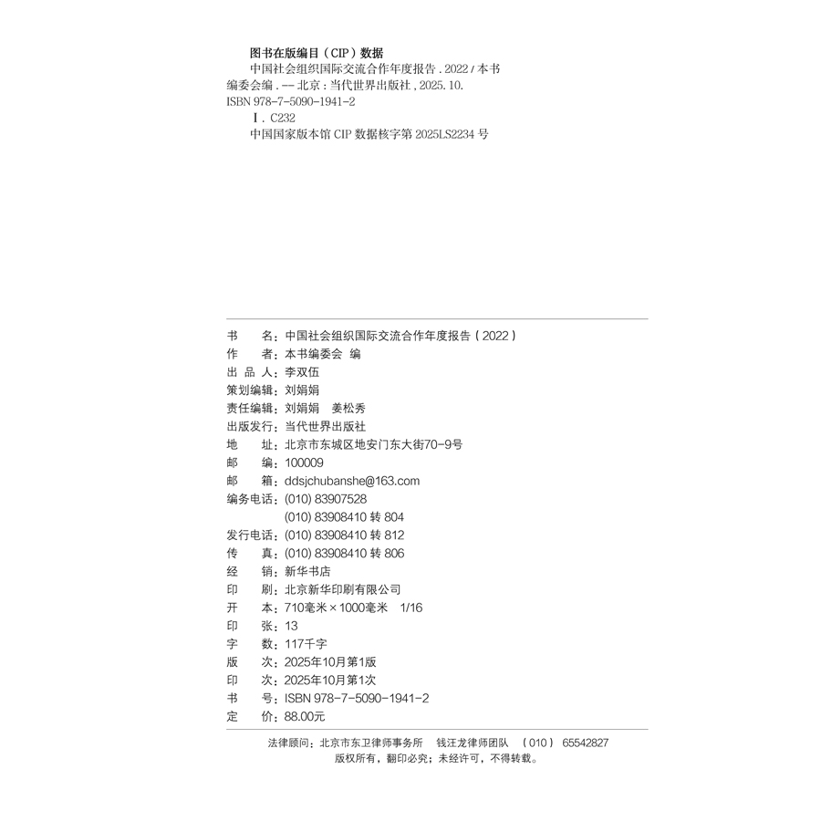 本书是继《中国社会组织国际交流合作年度报告(2021)》后第二部年度报告。该报告从社会组织国际交流合作的实践与案例、政策与理论、国际民间社会高度评价中国社会组织国际交流合作等方面,对中国社会组织2022年度国际交流合作情况进行了全景式概括分析,重点突出方向引领和政策指导,兼顾理论研究与经验分享,有助于从政策、理论、实践等方面立体化推进国内社会组织参与国际非政府组织活动。