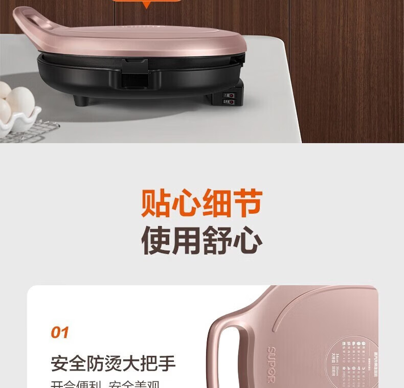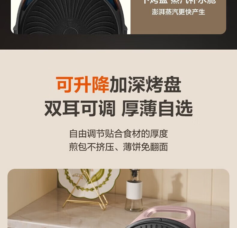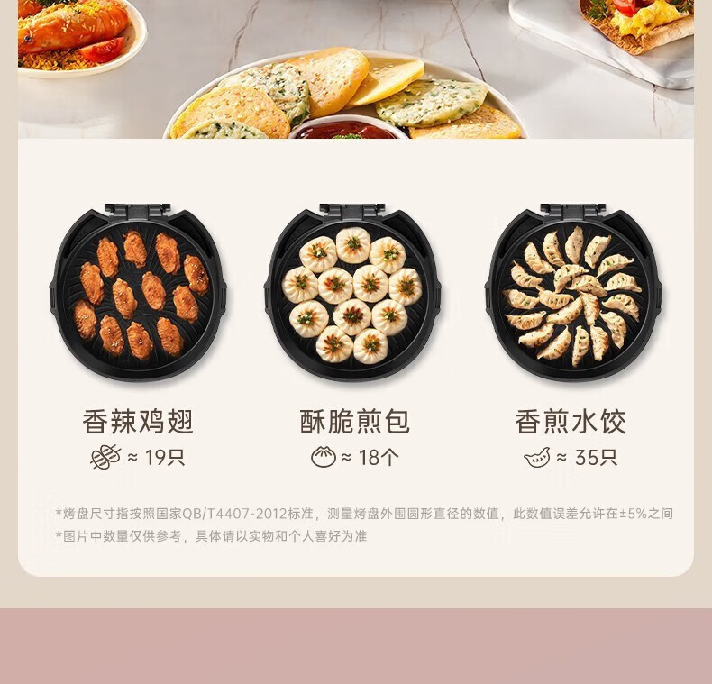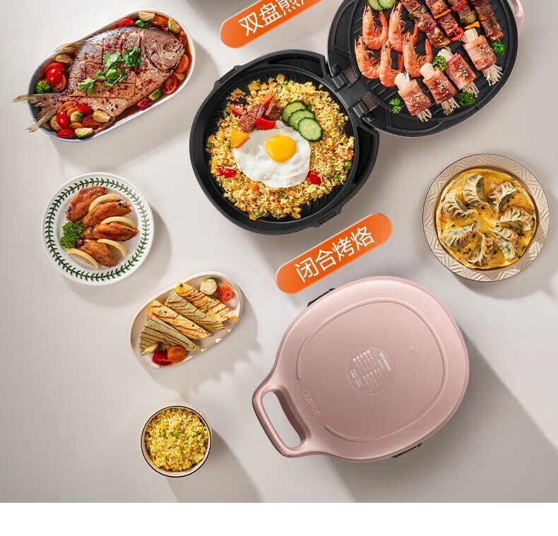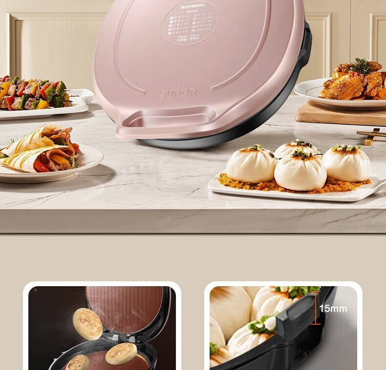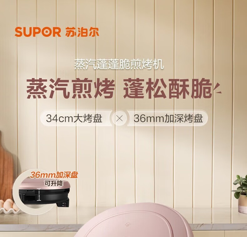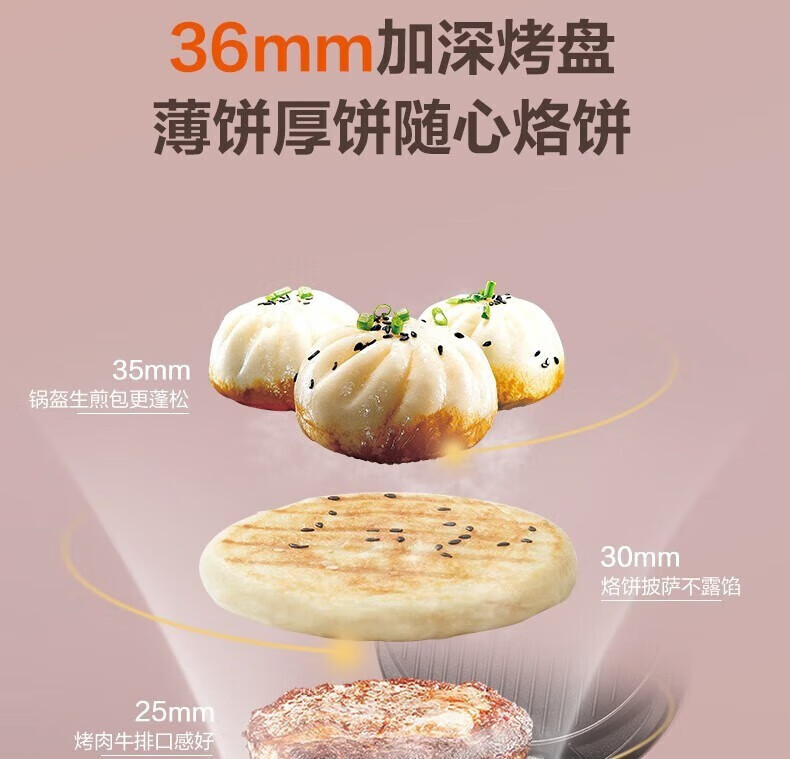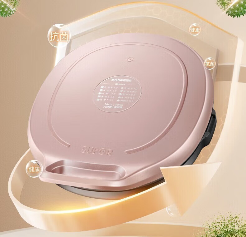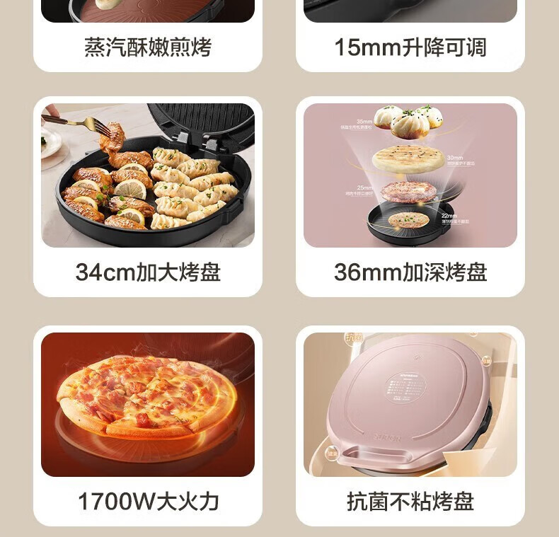 苏泊尔电饼铛档家庭用加大加深双面加热大号大尺寸烙饼锅煎烤机JJ34AQ77 抗菌烤盘-34cm大烤盘-36mm深盘