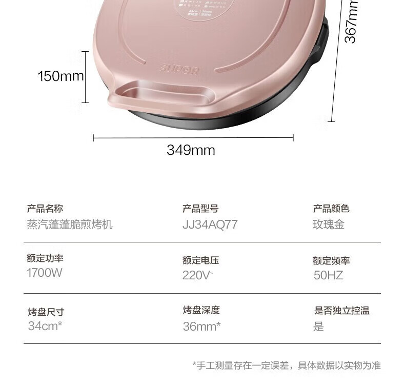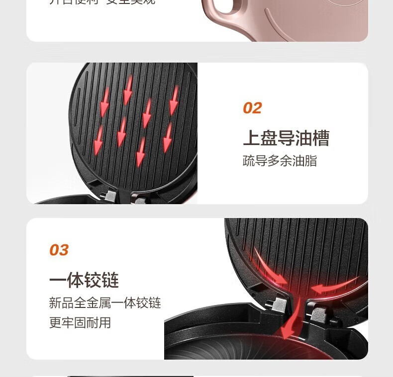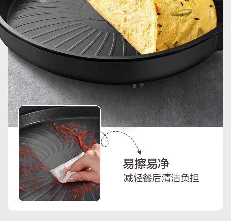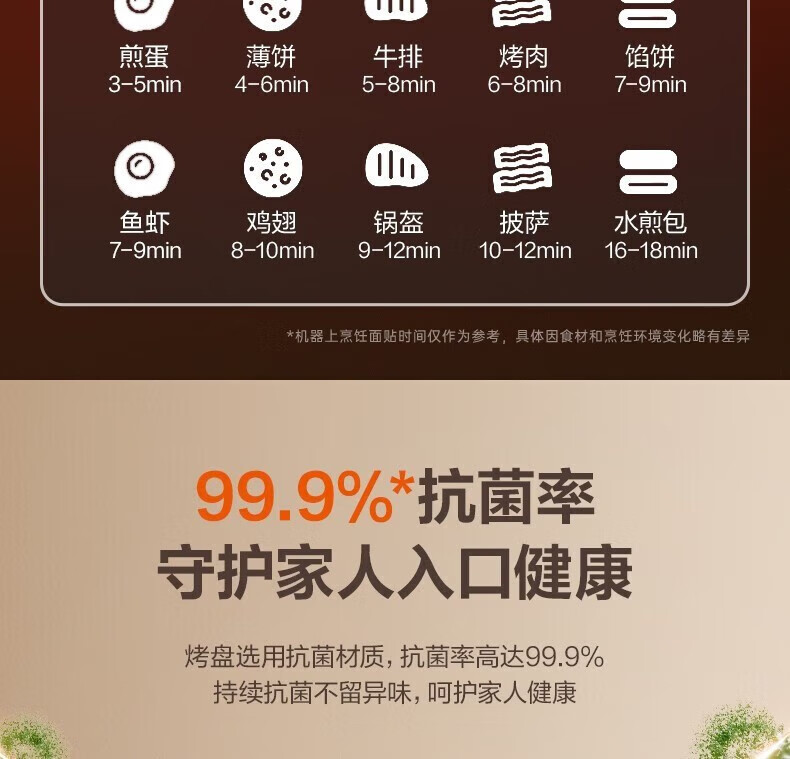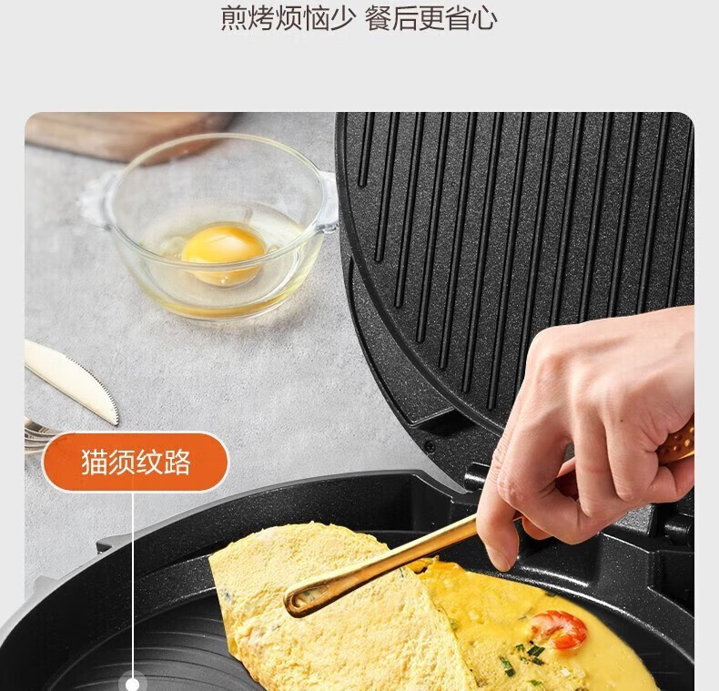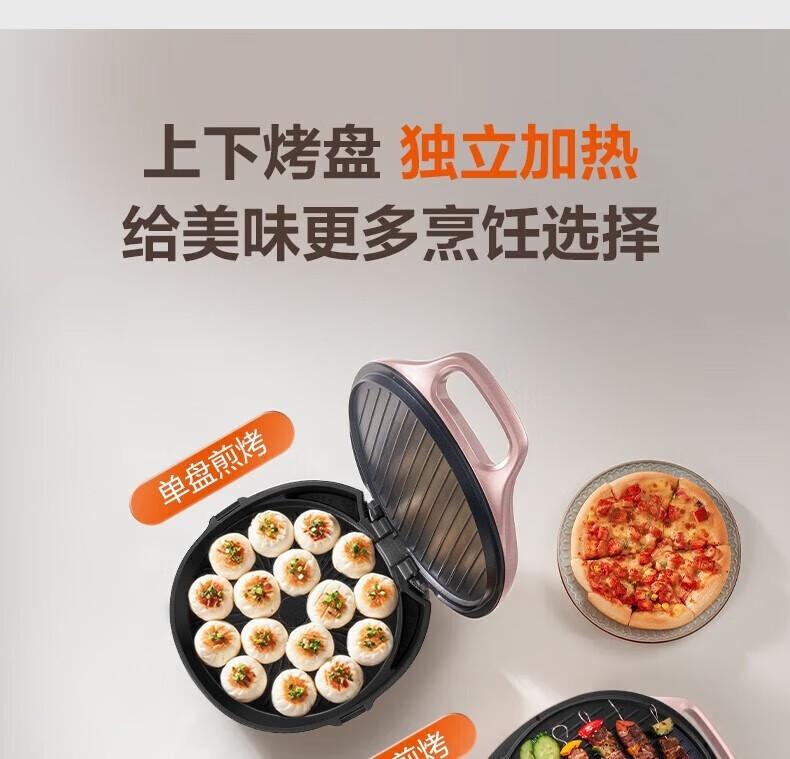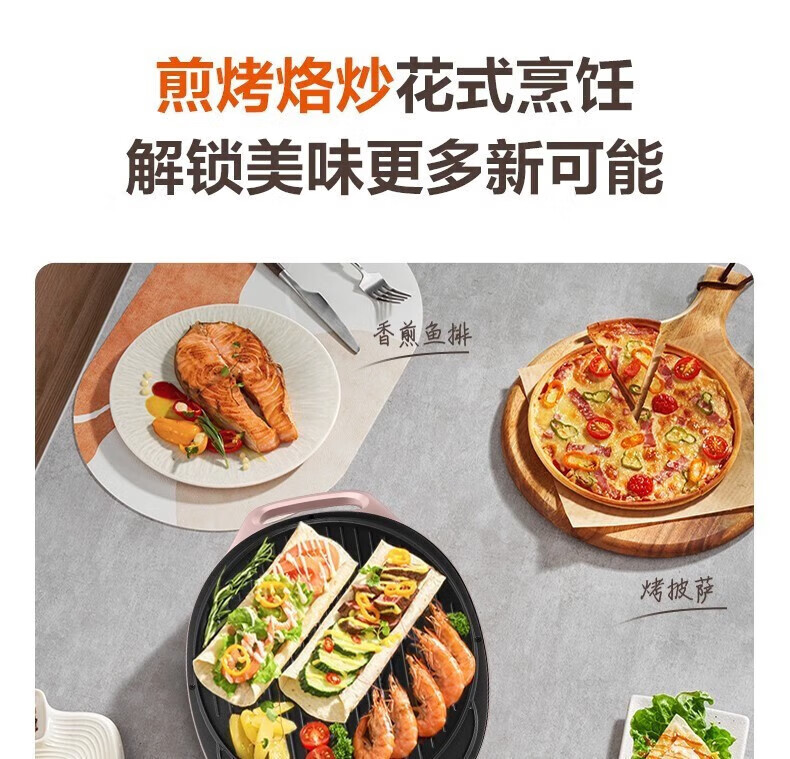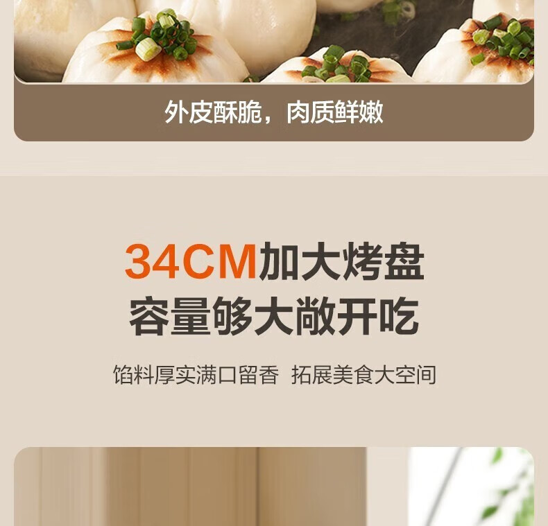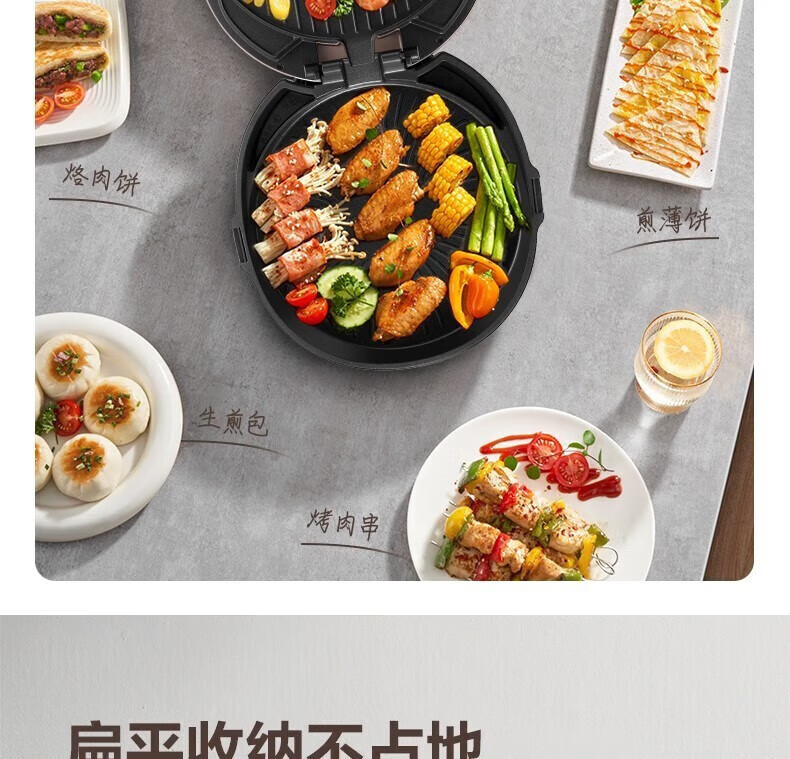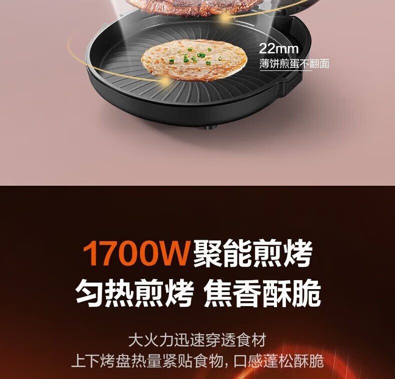苏泊尔电饼铛档家庭用加大加深双面加热大号大尺寸烙饼锅煎烤机JJ34AQ77 抗菌烤盘-34cm大烤盘-36mm深盘