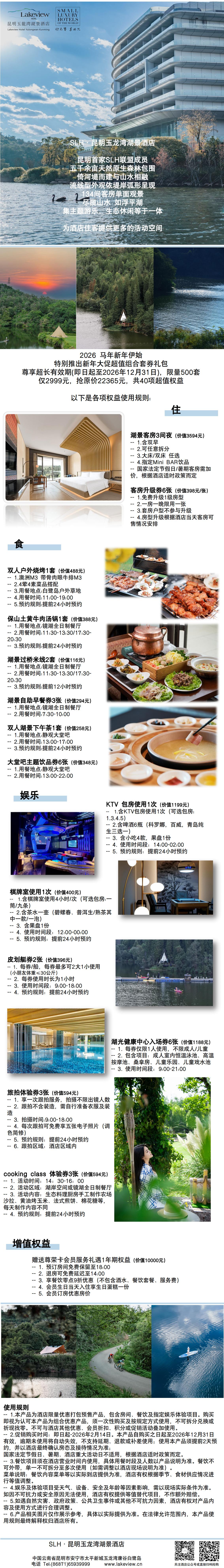 昆明玉龙湾湖景酒店新年大促超值组合套券礼包(YX)
