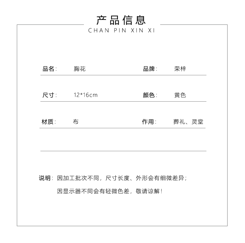 黄色胸花布花哀念胸花殡仪馆告别仪式殡葬祭祀(选色找客服)