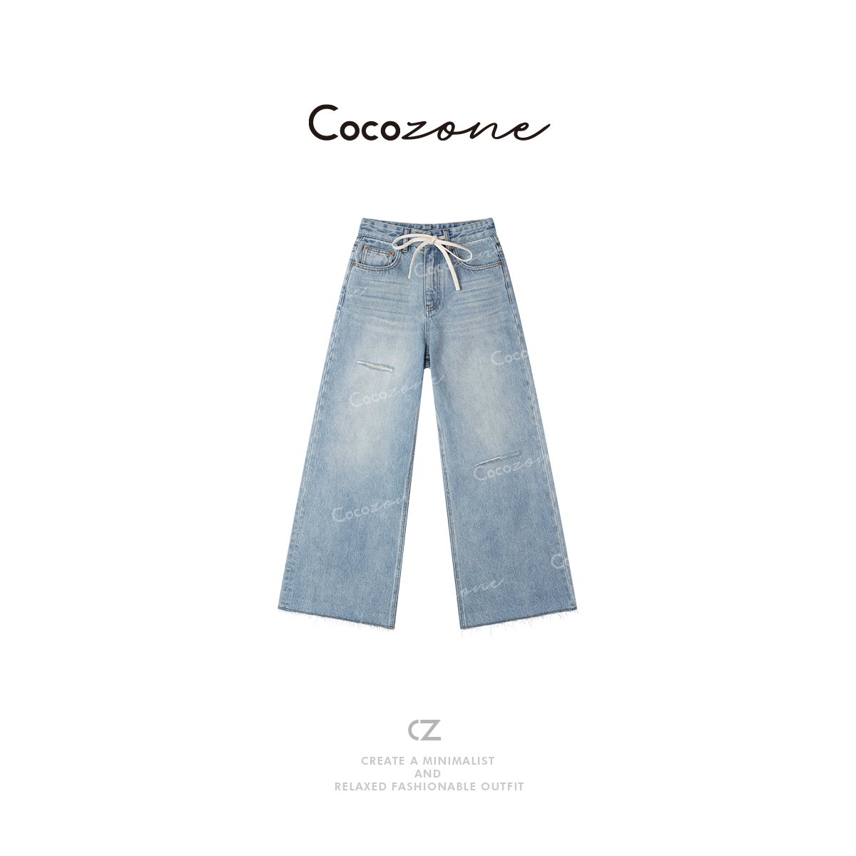 COCO ZONE 刘一一 “抽绳牛仔”100棉慵懒舒适牛仔裤CD1A0237