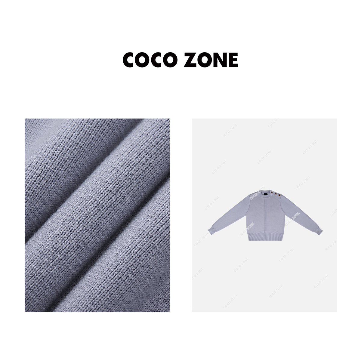 刘一一&COCO ZONE秋冬羊毛针织衫圆领侧肩纽扣设计毛衣23C30551
