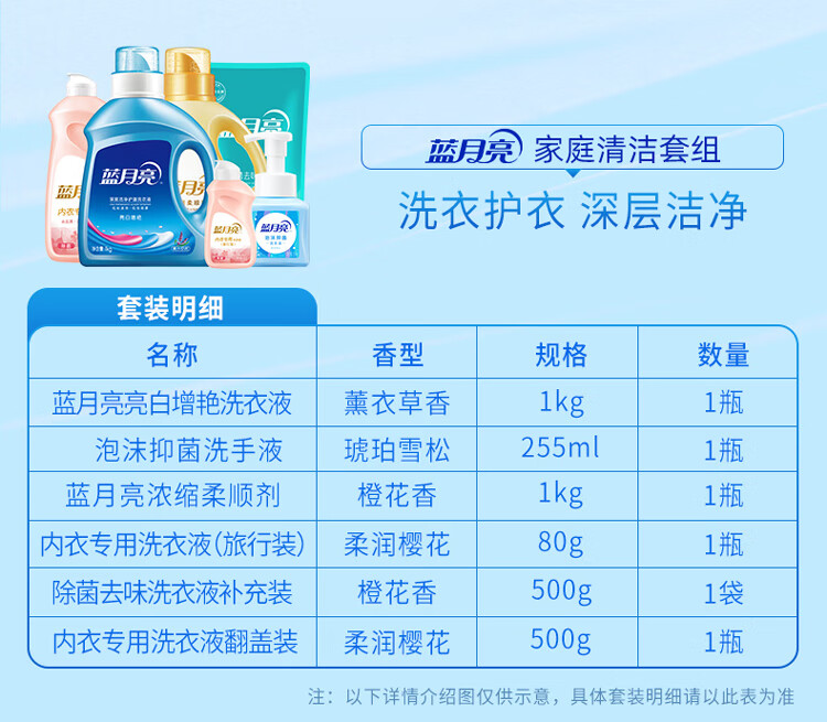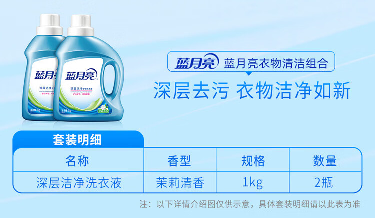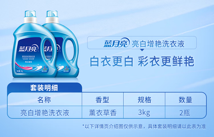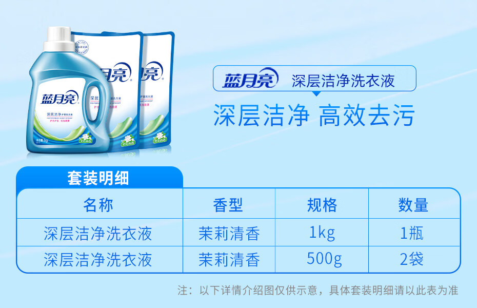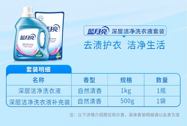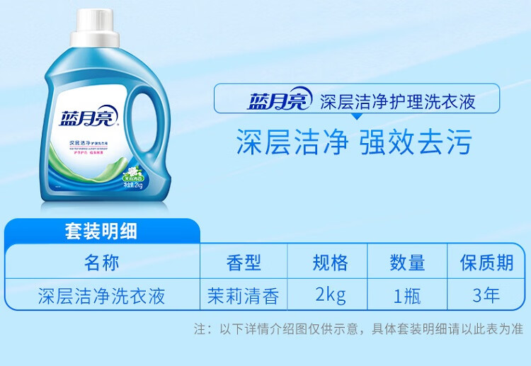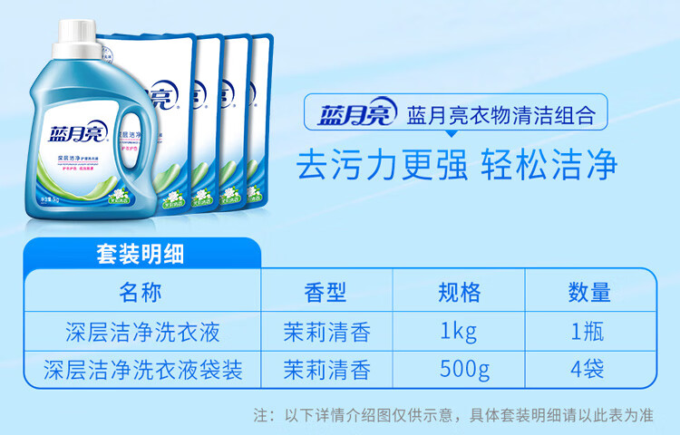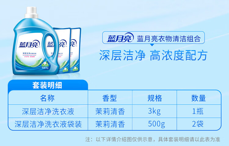 蓝月亮茉莉清香洁净洗衣液3kg+茉莉清香洁净洗衣液袋装500g*2