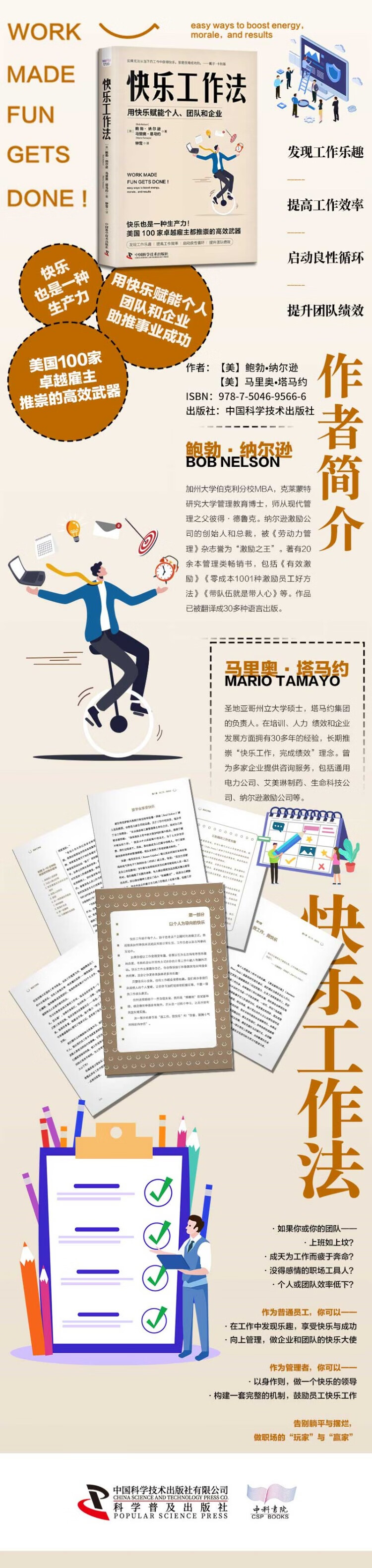鲍勃·纳尔逊(Bob Nelson),加州大学伯克利分校MBA,克莱蒙特研究大学管理教育博士,师从现代管理之父彼得·德鲁克。纳尔逊激励公司的创始人和总裁,被《劳动力管理》杂志誉为“激励之王”。 著有20余本管理类畅销书,包括《有效激励》《零成本1001种激励员工好方法》《带队伍就是带人心》等。作品已被翻译成30多种语言出版。 马里奥·塔马约(Mario Tamayo) 圣地亚哥州立大学硕士,塔马约集团的负责人。在培训、人力绩效和企业发展方面拥有30多年的经验,长期推崇“快乐工作,完成绩效”理念。 曾为多家企业提供咨询服务,包括通用电力公司、艾美琳制药、生命科技公司、纳尔逊激励公司等。
