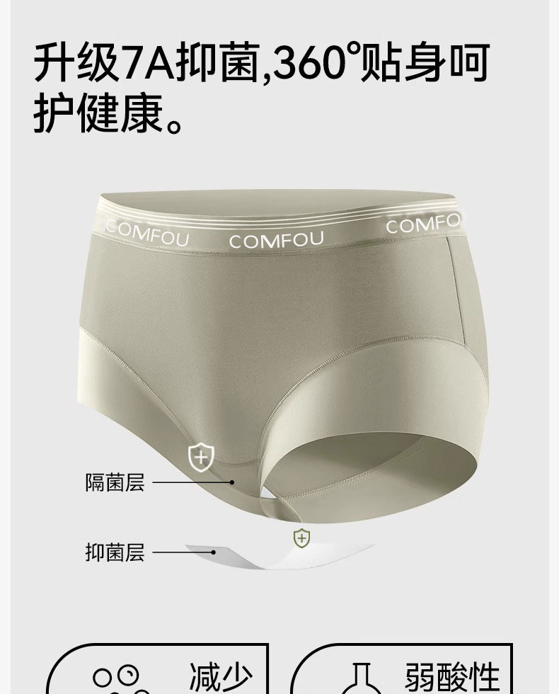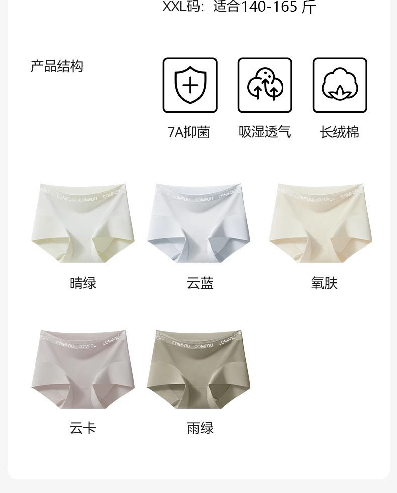 COMFOU 新疆长绒棉无痕三角裤7A全棉抑菌裆小平角内裤高弹舒适女生内裤