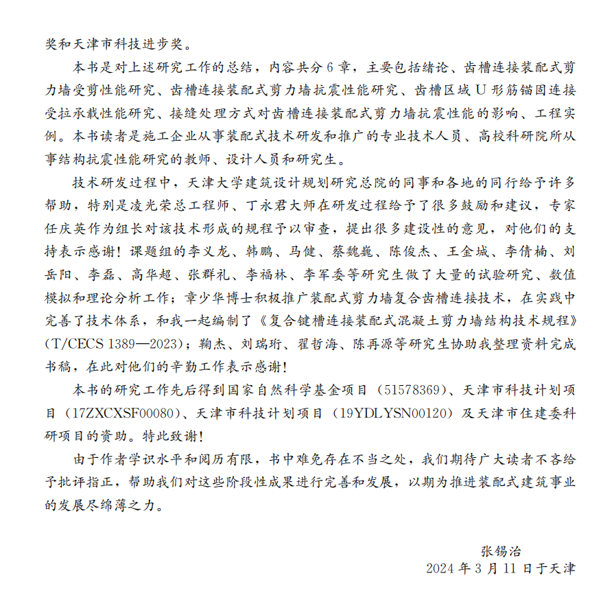 装配式剪力墙齿槽式连接理论与应用/张锡治著 中国建材工业出版社,20248 ISBN 9787516041079
