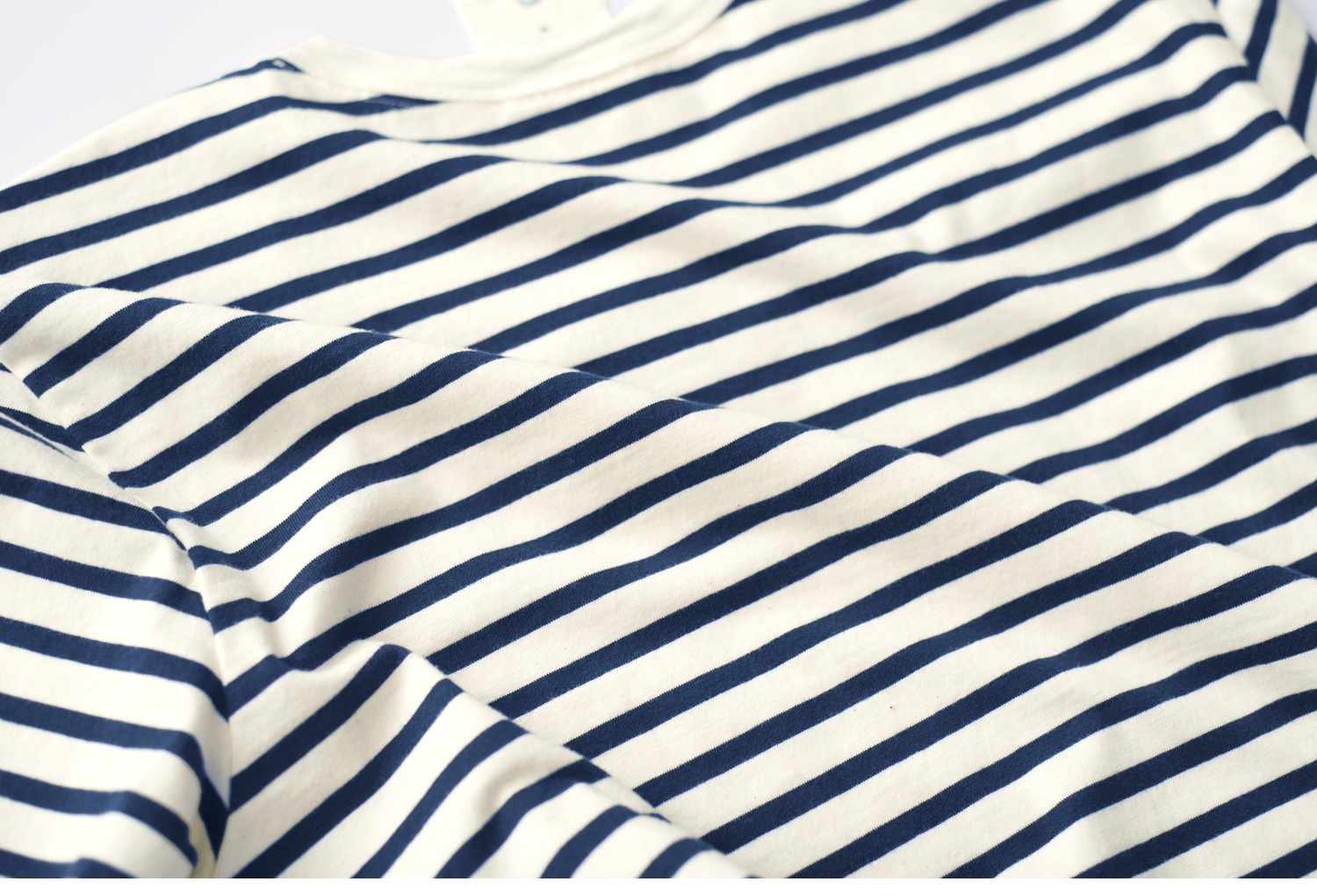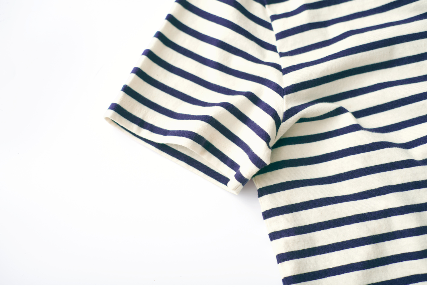 此批条纹T恤领圈罗纹比上一批要稍厚一些