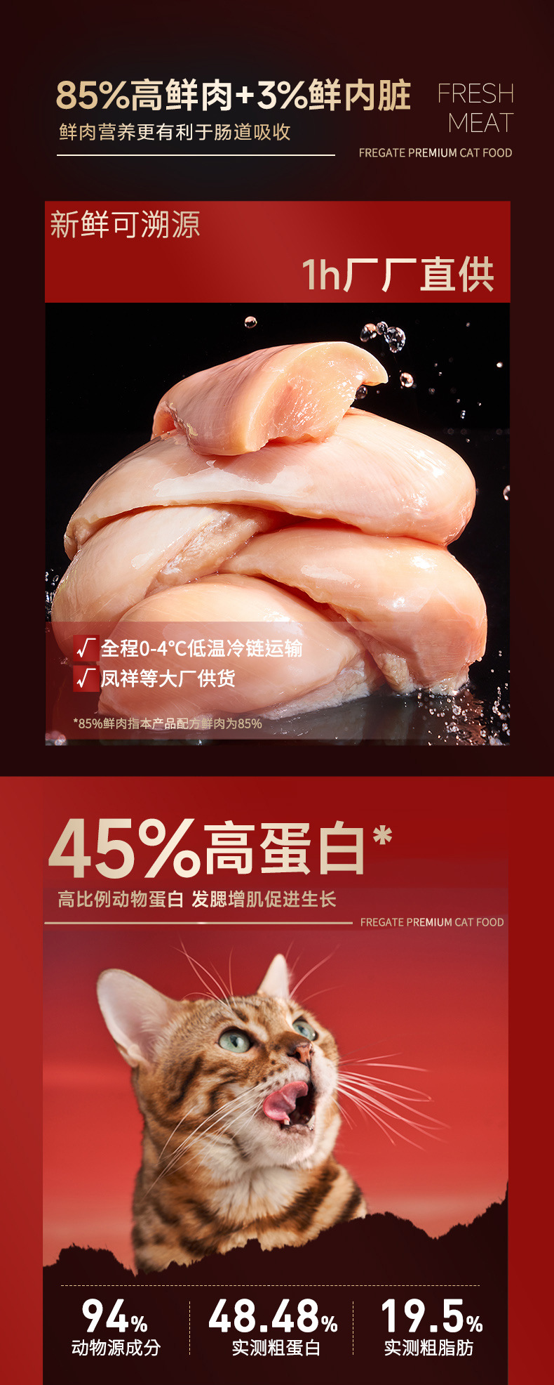 弗列加特猫粮鲜肉粮烘焙主食冻干全期猫主粮主食罐头猫条猫零食15g*3条