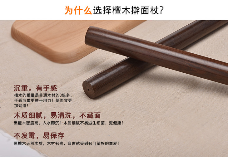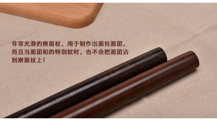 黑檀木擀面杖 实木滚轴 压面饺子皮 烘焙常备厨房工具