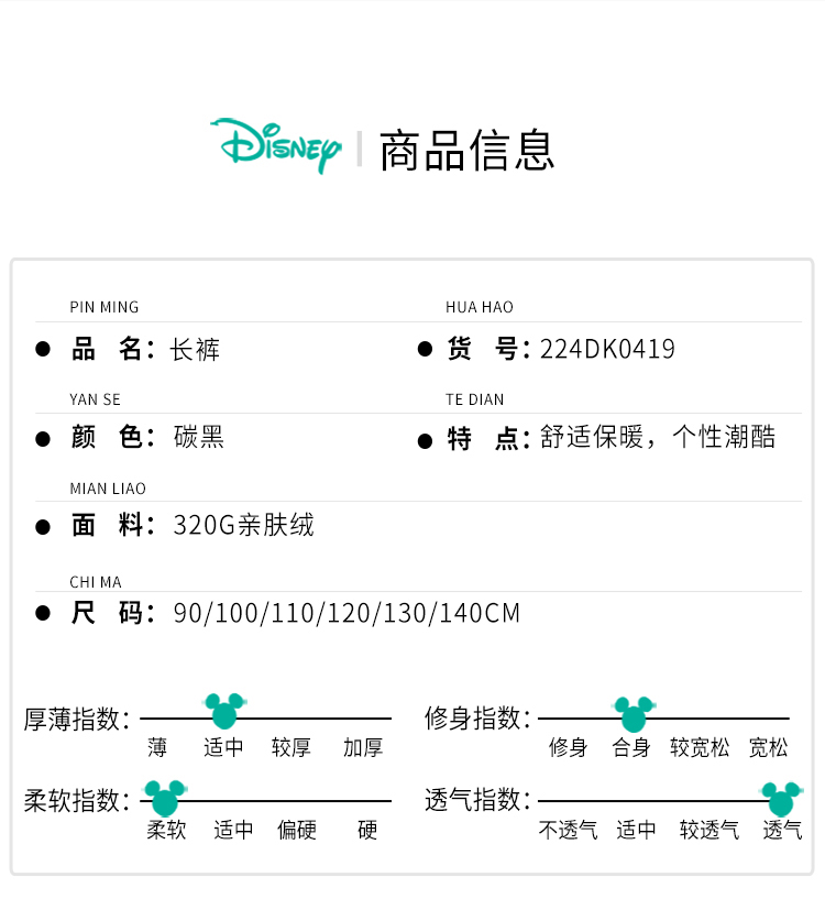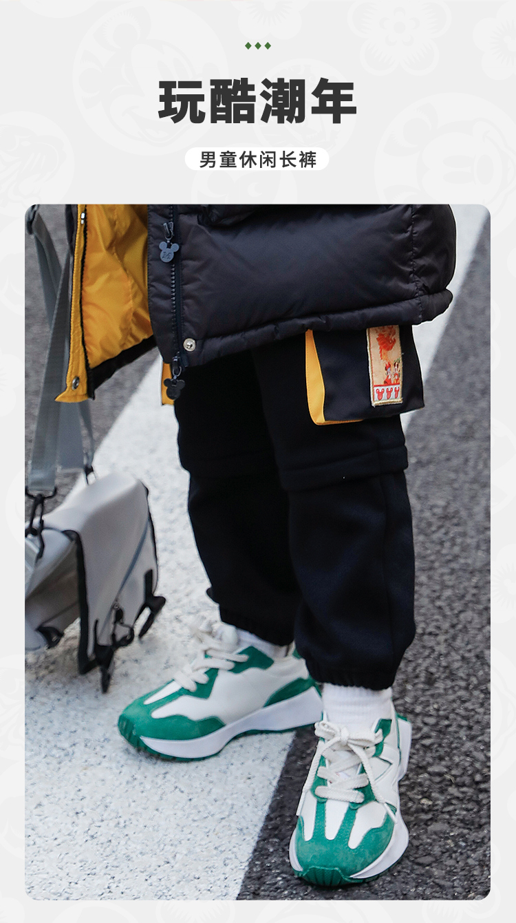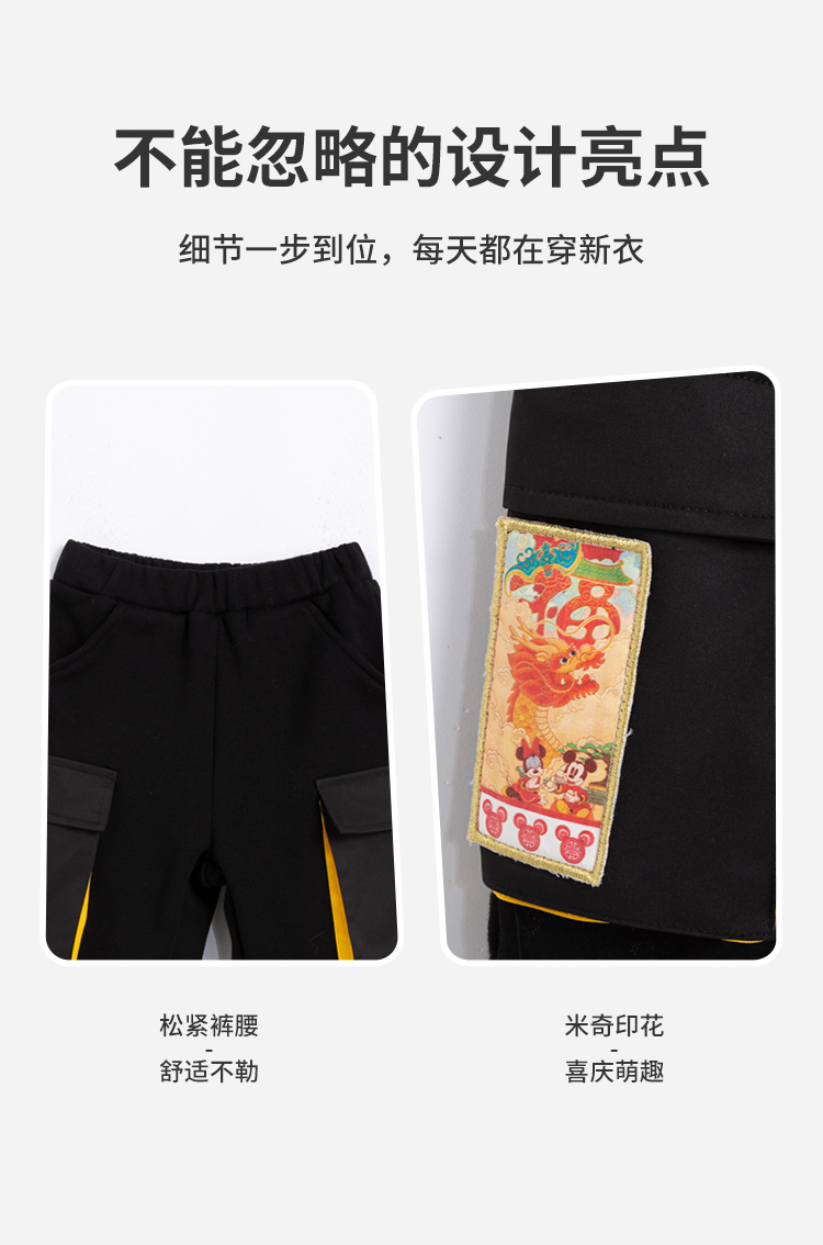 【商场同款】Disney/迪士尼秋季加绒男童长裤中国风休闲工装裤224DK0419