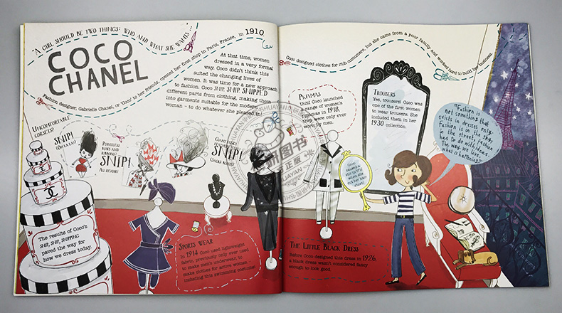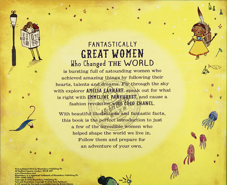 时装界灵魂人物Coco Chanel、墨西哥传奇女画家Frida Kahlo、美国第1位独自飞越大西洋的女飞机师Amelia Earhart、以及英国著名女作家Jane Austen等我们熟悉的女神,她们为什么能够改变世界?因为她们都是锲而不舍地追寻梦想的一群人呀! Nominated for the CILIP Carnegie & Kate Greenaway Children's Book Awards 2018. Kate Pankhurst, descendent of Emmeline Pankhurst, has created this wildly wonderful and accessible book about women who really changed the world. Discover fascinating facts about some of the most amazing women who changed the world we live in. Fly through the sky with the incredible explorer Amelia Earhart, and read all about the Wonderful Adventures of Mary Seacole with the number one best-selling children's non-fiction title in the UK market this year. Bursting full of beautiful illustrations and astounding facts, Fantastically Great Women Who Changed the World is the perfect introduction to just a few of the most incredible women who helped shaped the world we live in. List of women featured: Jane Austen, Gertrude Ederle, Coco Chanel, Frida Kahlo, Marie Curie, Mary Anning, Mary Seacole, Amelia Earhart, Agent Fifi, Sacagawa, Emmeline Pankhurst, Rosa Parks, Anne Frank