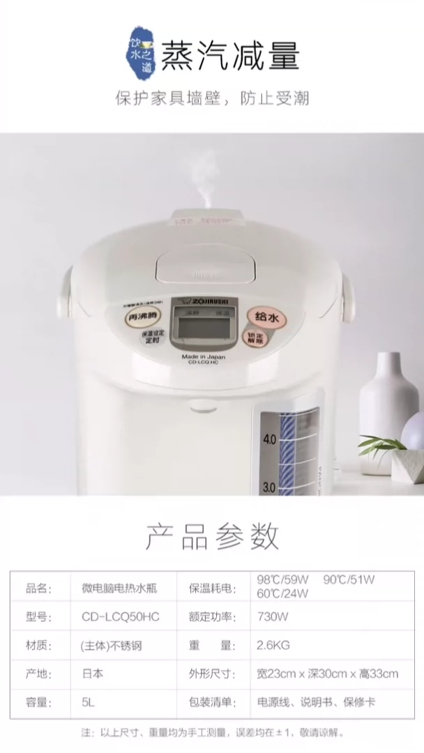 象印ZOJIRUSHI/日本象印进口CD-LCQ50HC不锈钢电热水壶微电脑烧水瓶