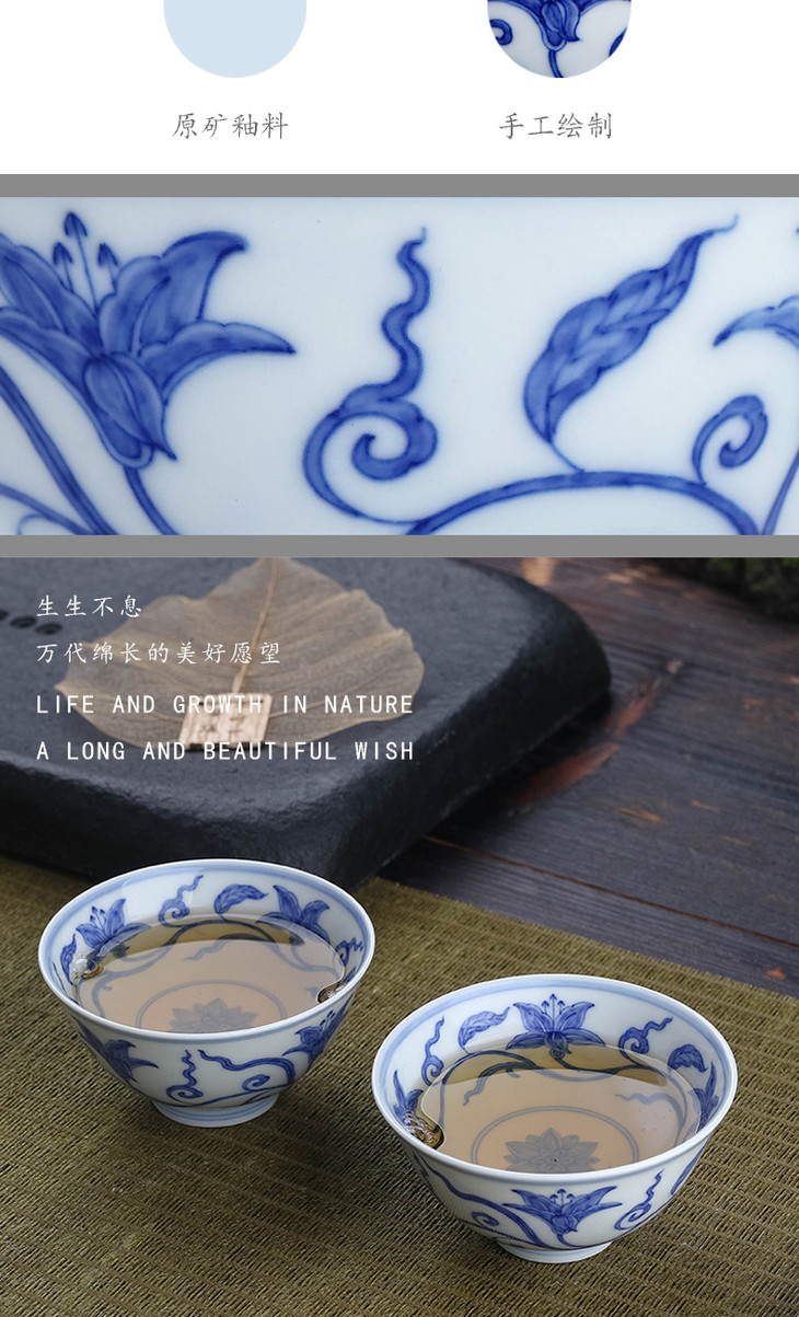 宝瓷林青花萱草杯/盖碗