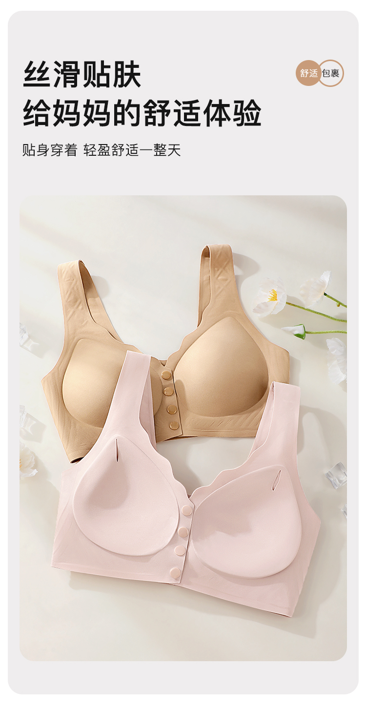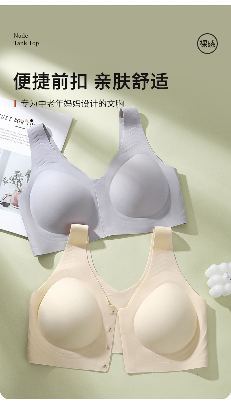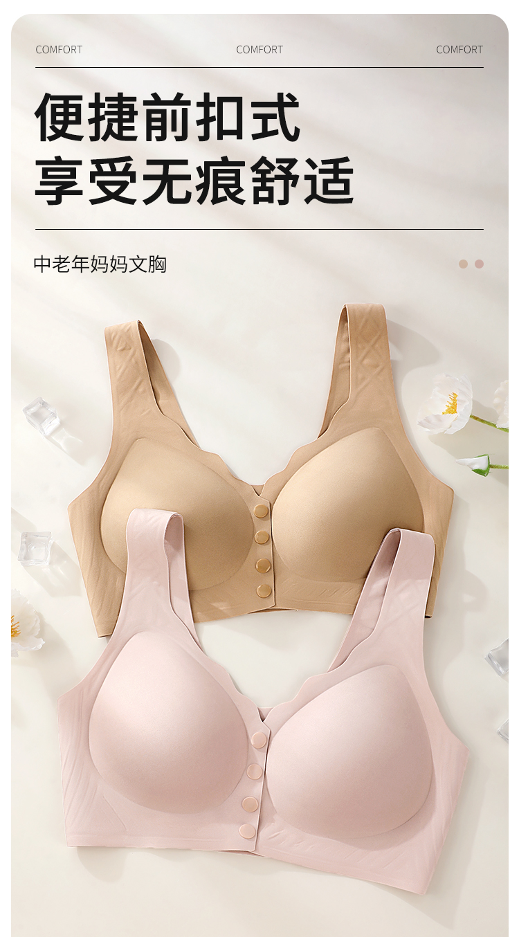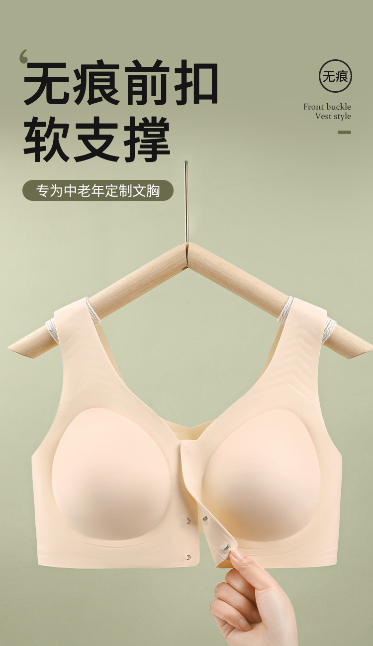 D1-【B-C杯】【中老年妈妈内衣】便捷前开扣大码内衣女上托提拉防下垂背心式文胸罩 明月清清 /玉露凝春