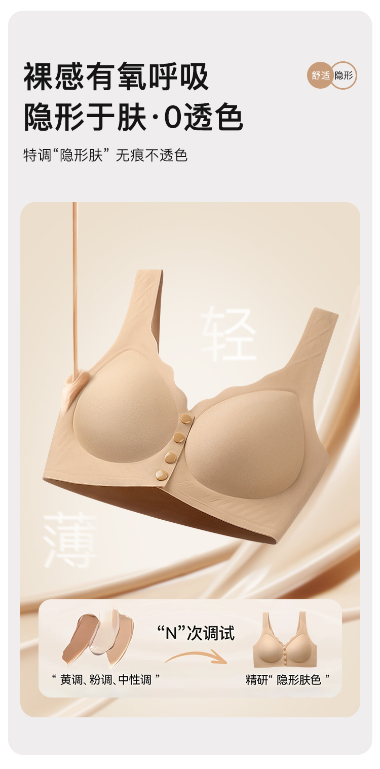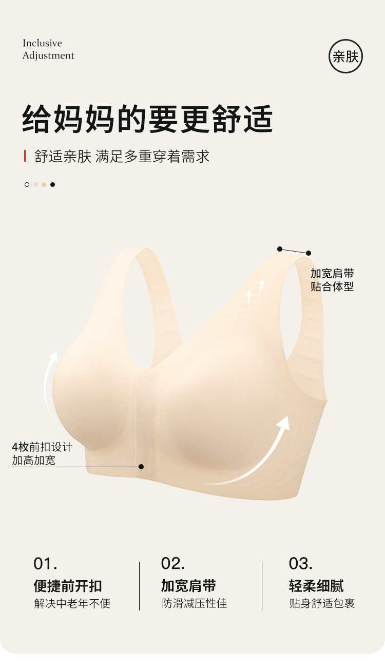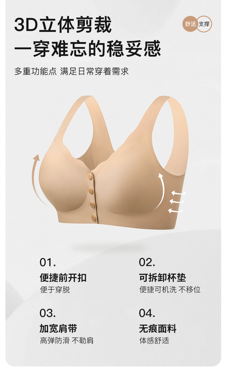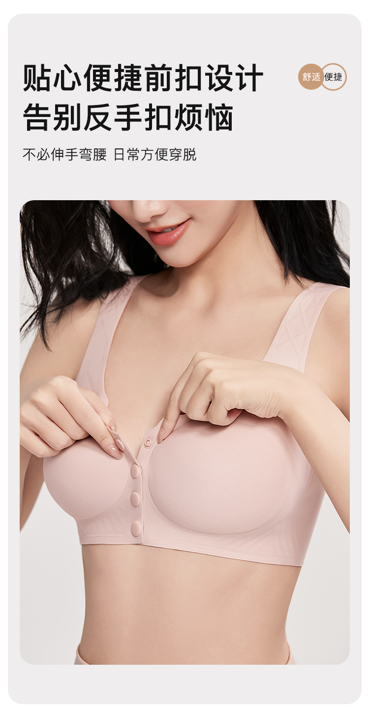 D1-【B-C杯】【中老年妈妈内衣】便捷前开扣大码内衣女上托提拉防下垂背心式文胸罩 明月清清 /玉露凝春