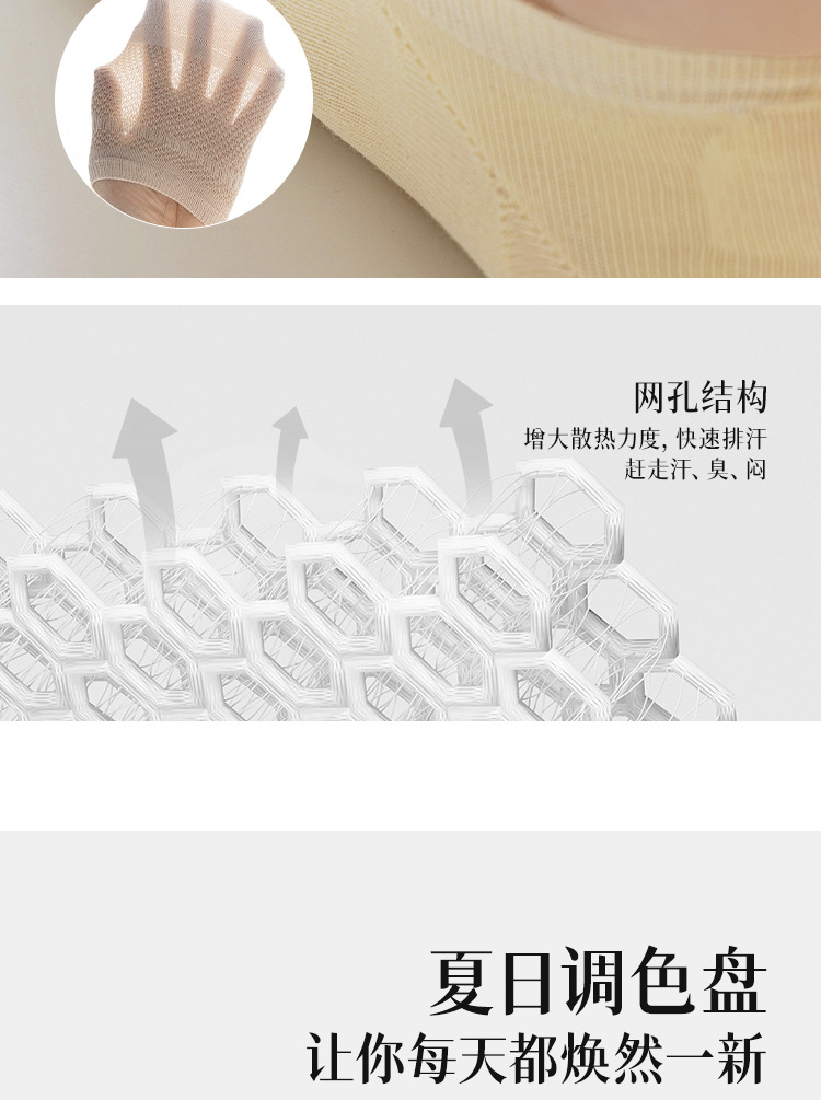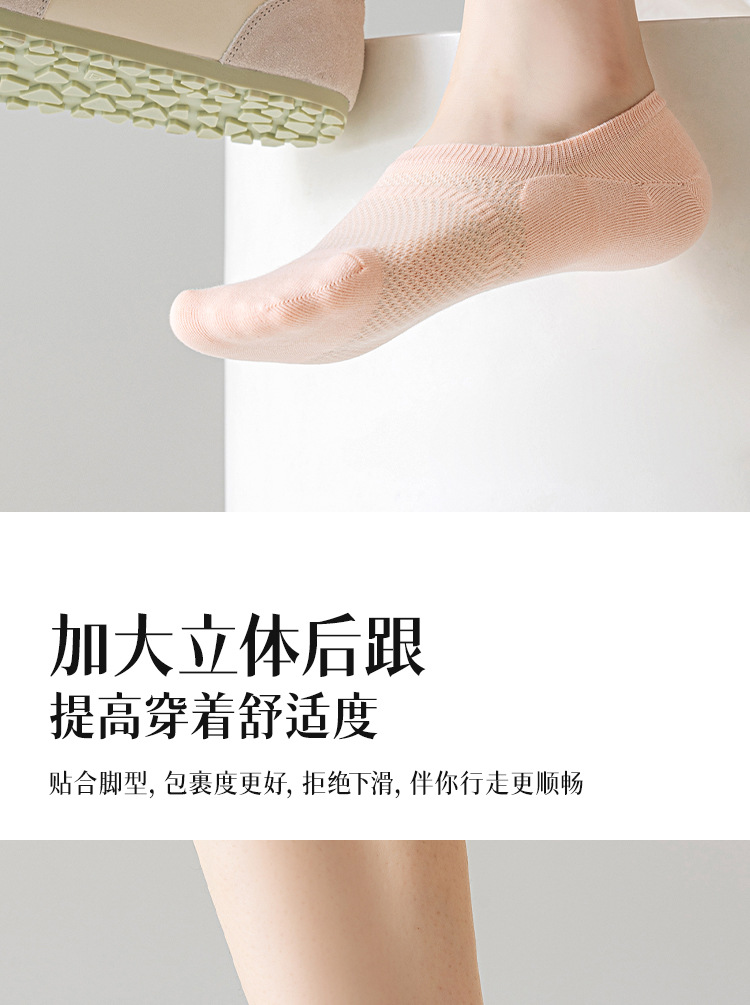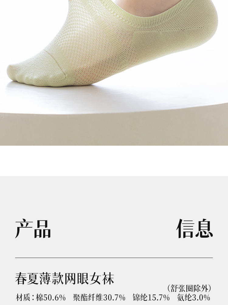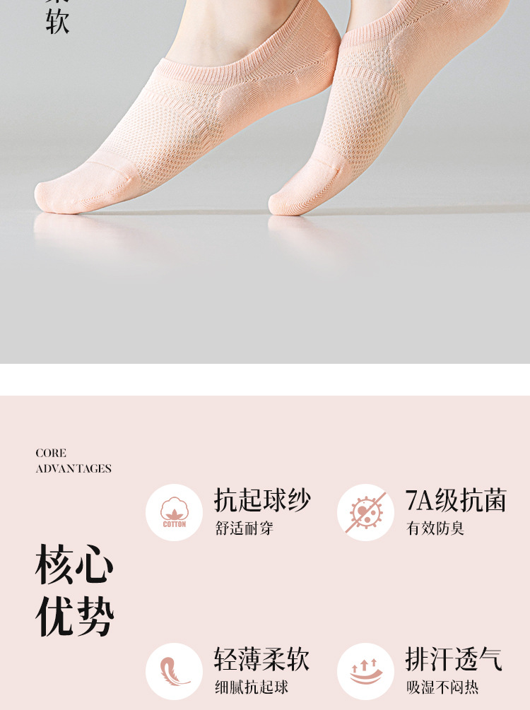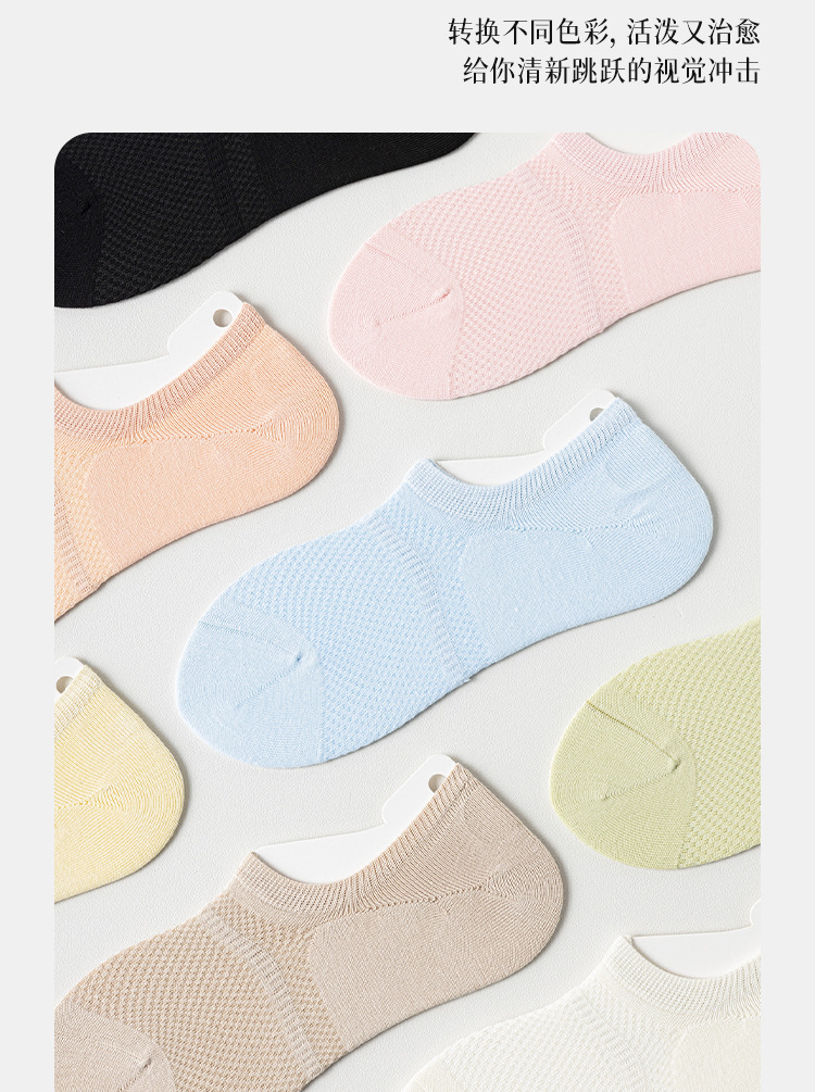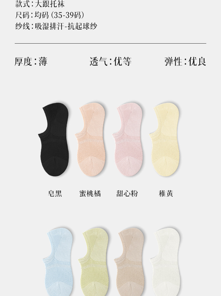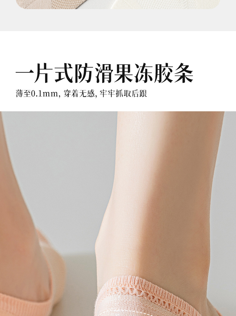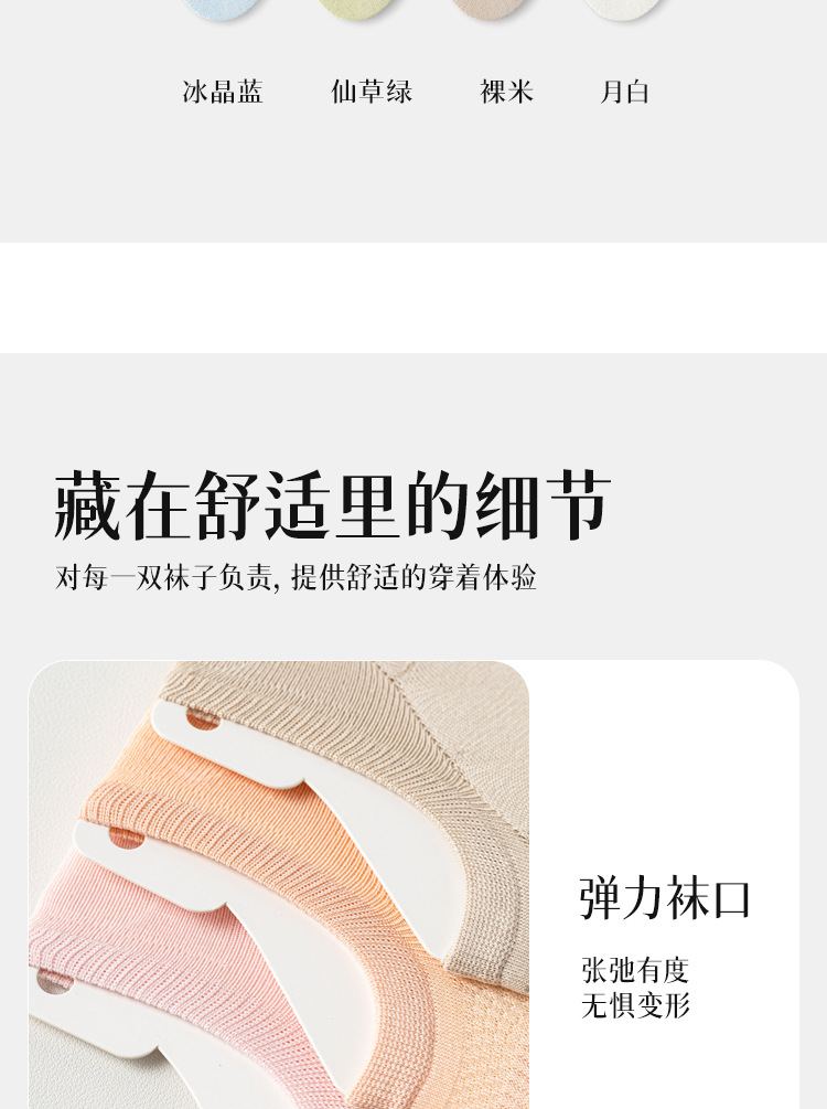 5双一组!春夏深口不掉跟船袜 女马卡龙色百搭学院风纯色硅胶防滑隐形袜
