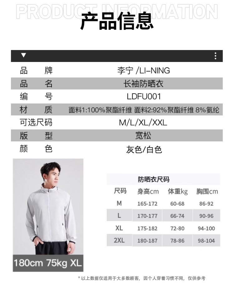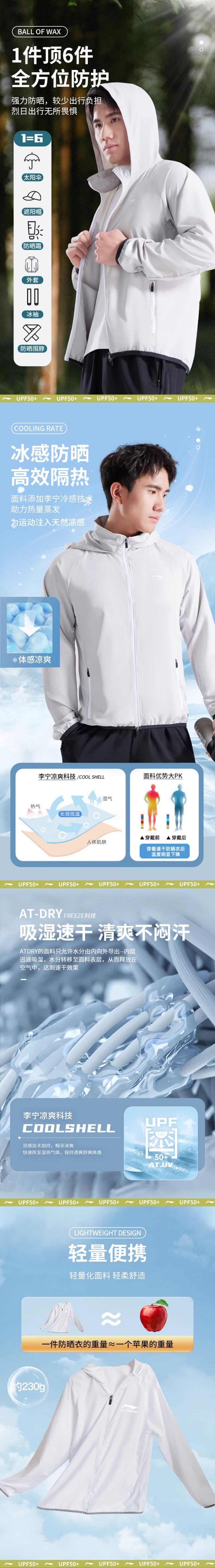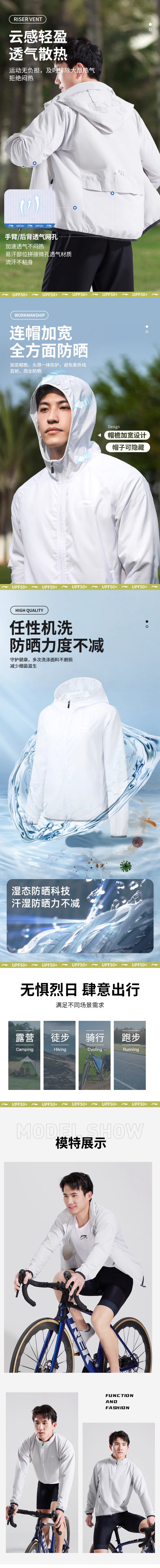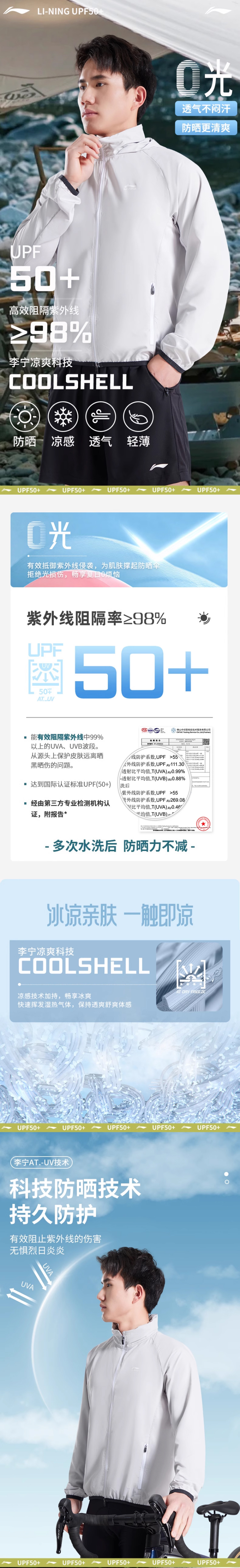 男女同款!男士建议选大一码「官方授权正版 李宁 Li-Ning」 UPF50+长袖防晒衣,连帽透气凉感骑行防晒服