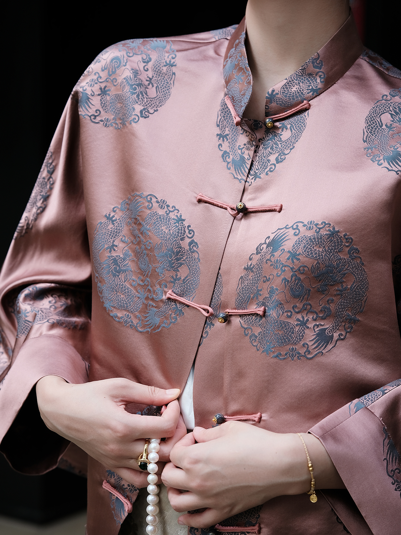 瑕疵|盛唐婧 |真丝库缎龙纹外套-红棕色
