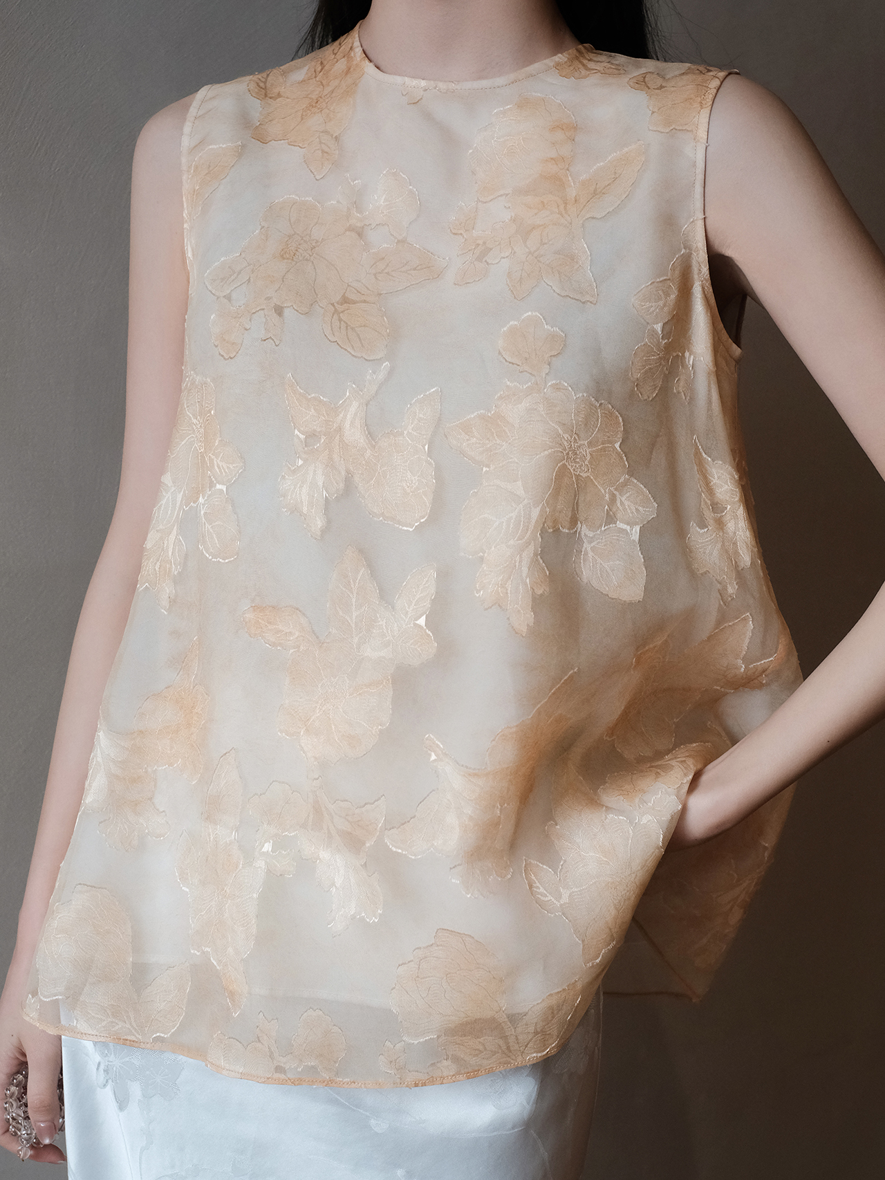 盛唐牡丹 | 浅香槟色真丝绡女上衣