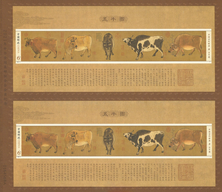《五牛图》邮票是中国十大名画系列邮票的收官之作!它是首个无齿会员双联小型张,还是首枚丝绸材质的集邮会员双联小型张!因此非常受关注!