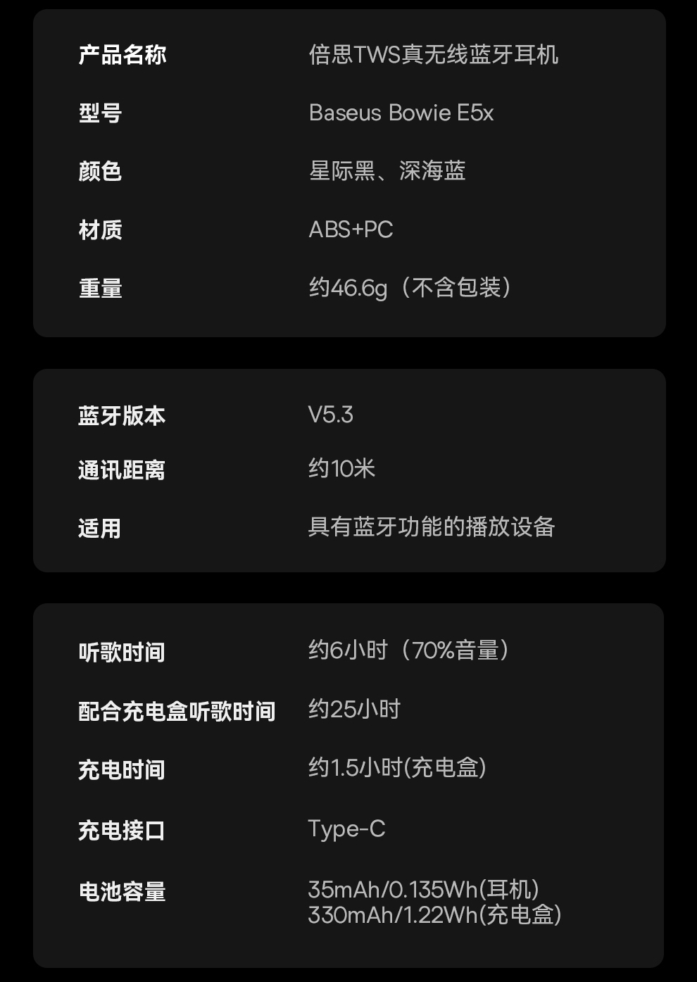 倍思 Bowie系列 E5x 真无线蓝牙耳机