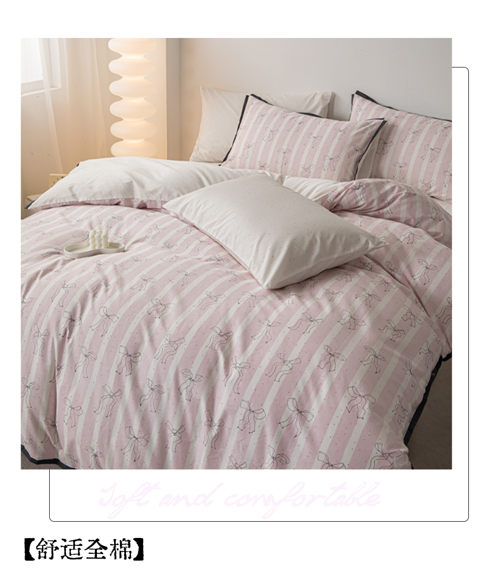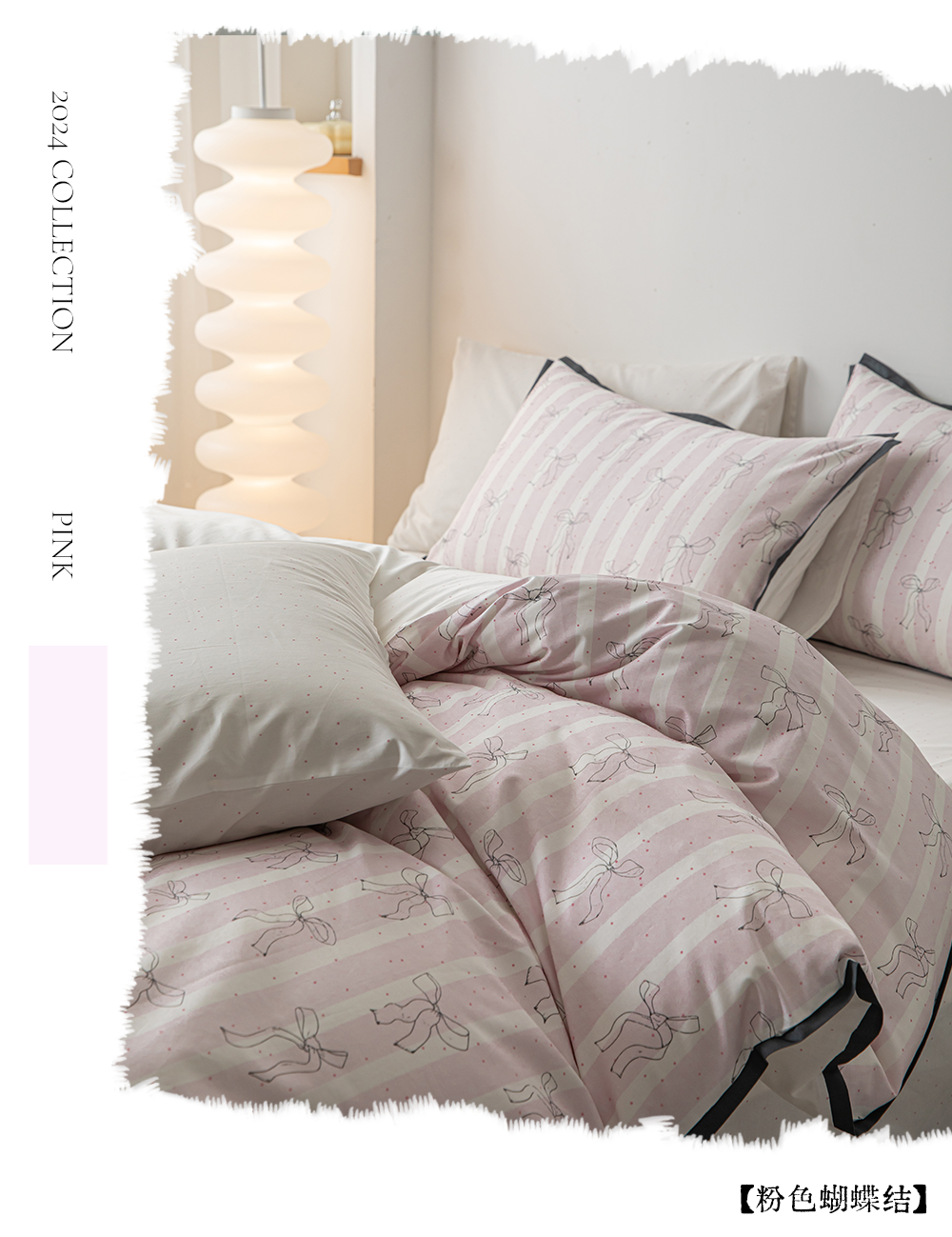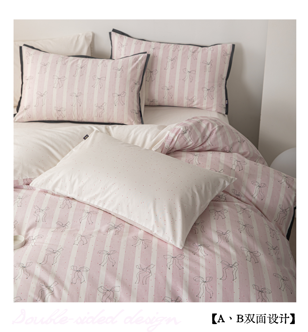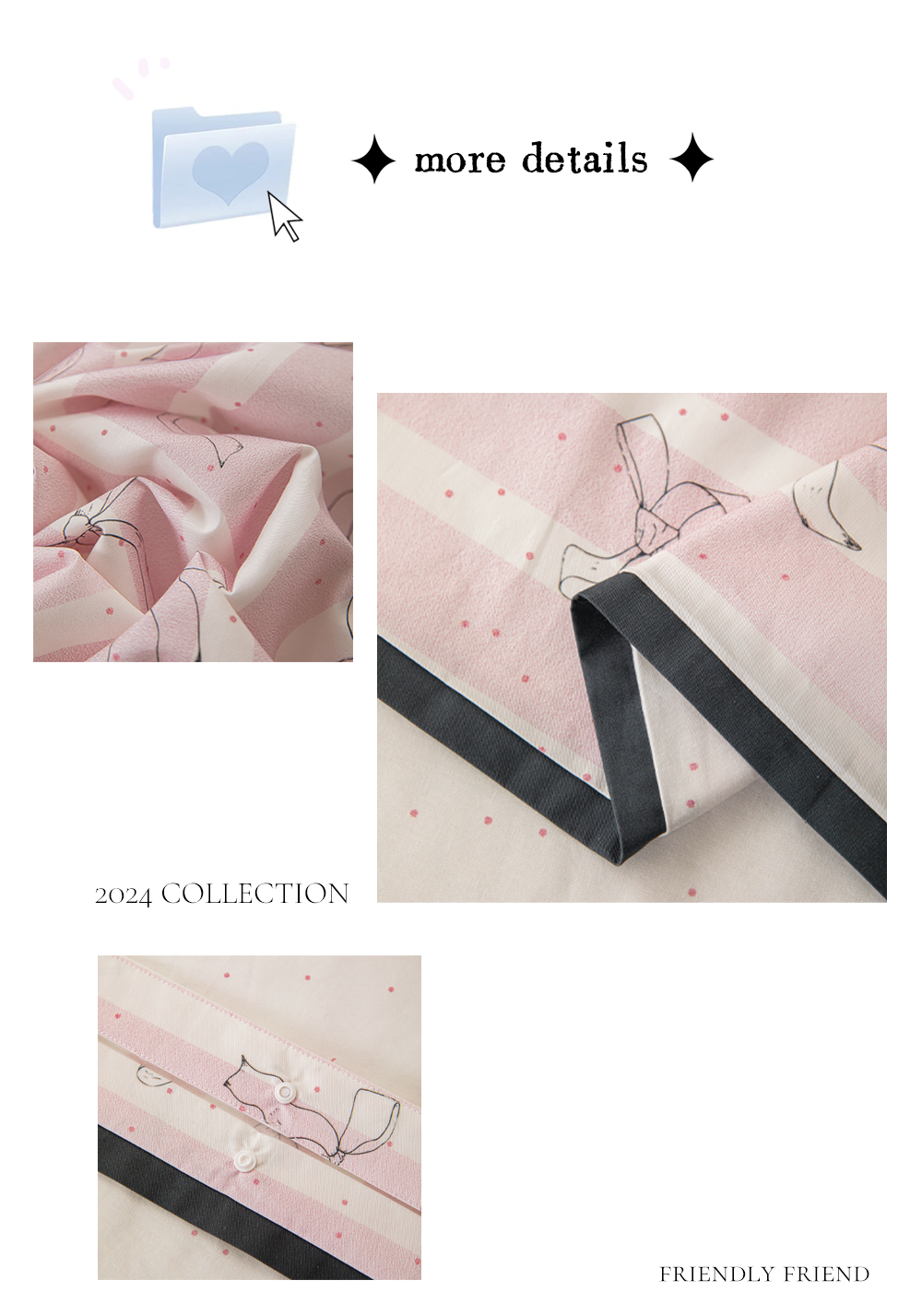 多喜爱 好朋友系列 高密全棉卡通数码印花三/四件套 粉色蝴蝶结/平行灰蓝