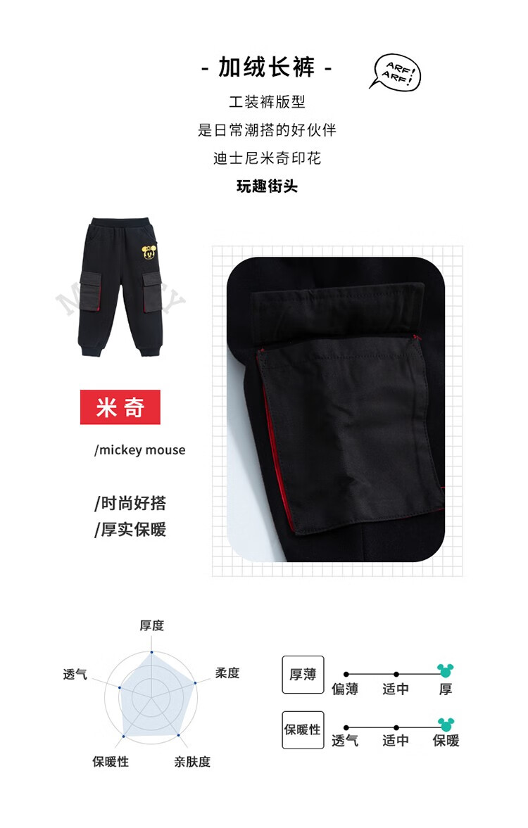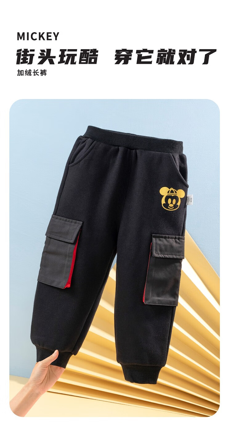 迪士尼童装秋冬新品儿童加绒长裤时尚男童工装裤223K1326