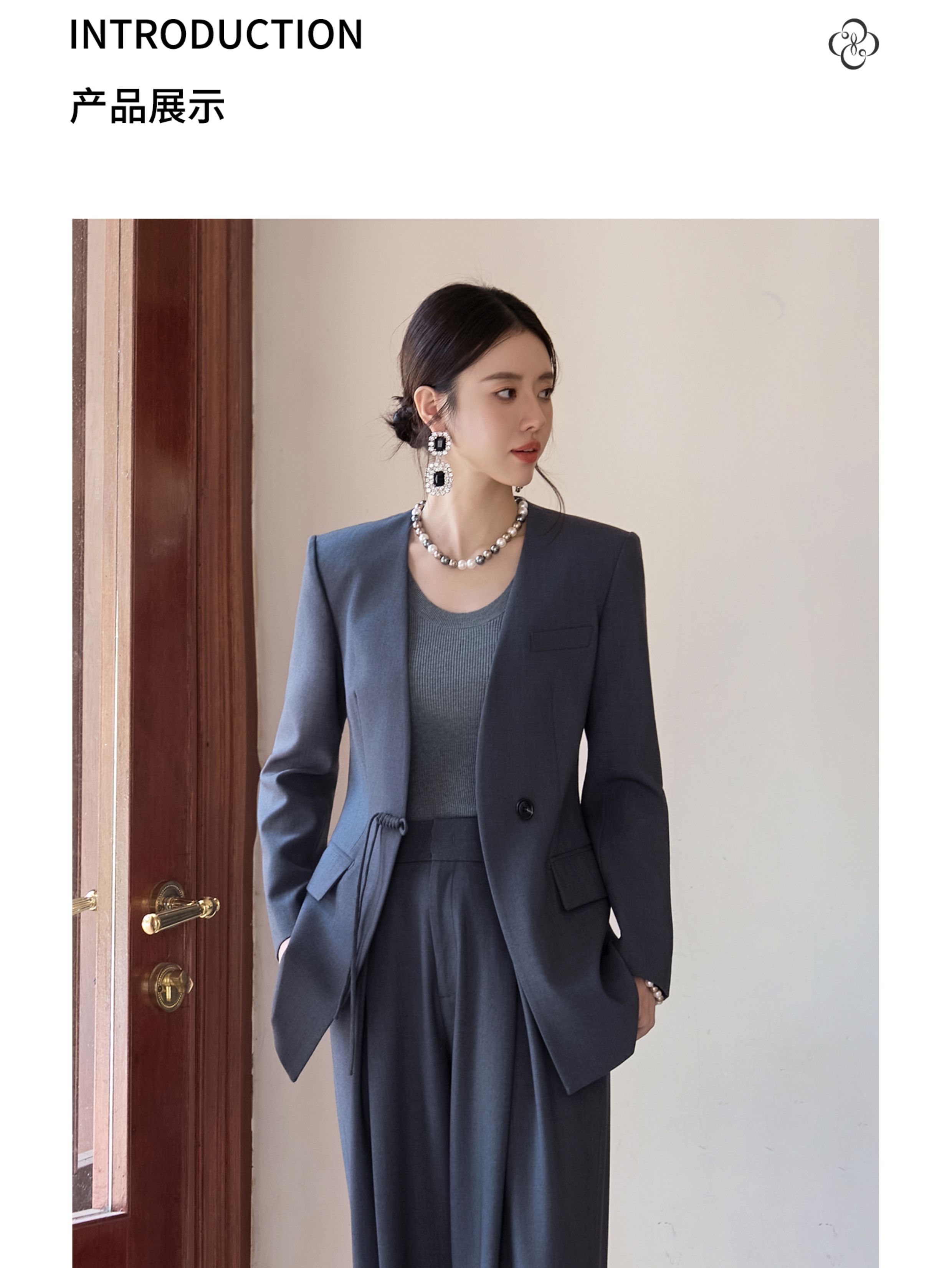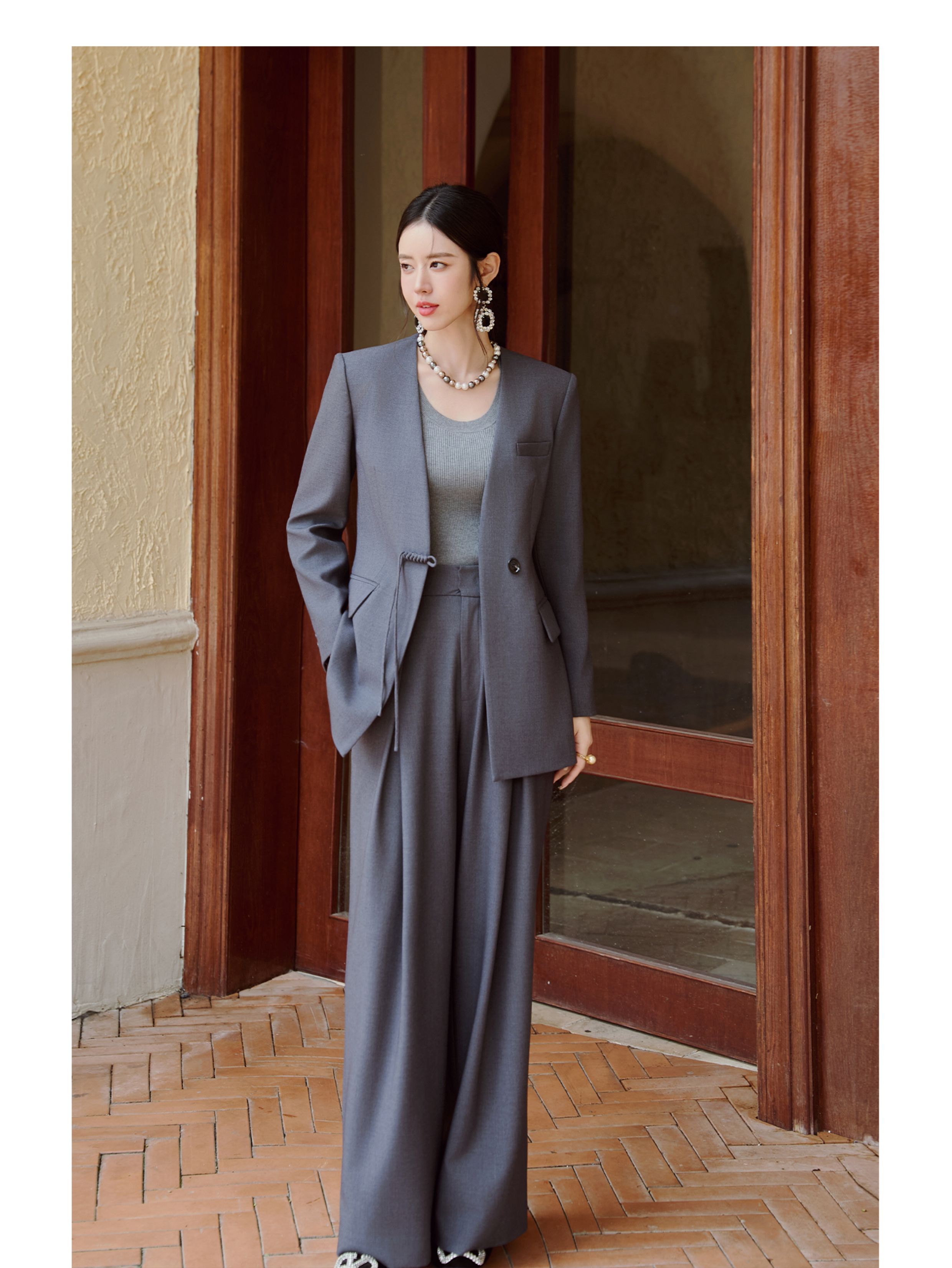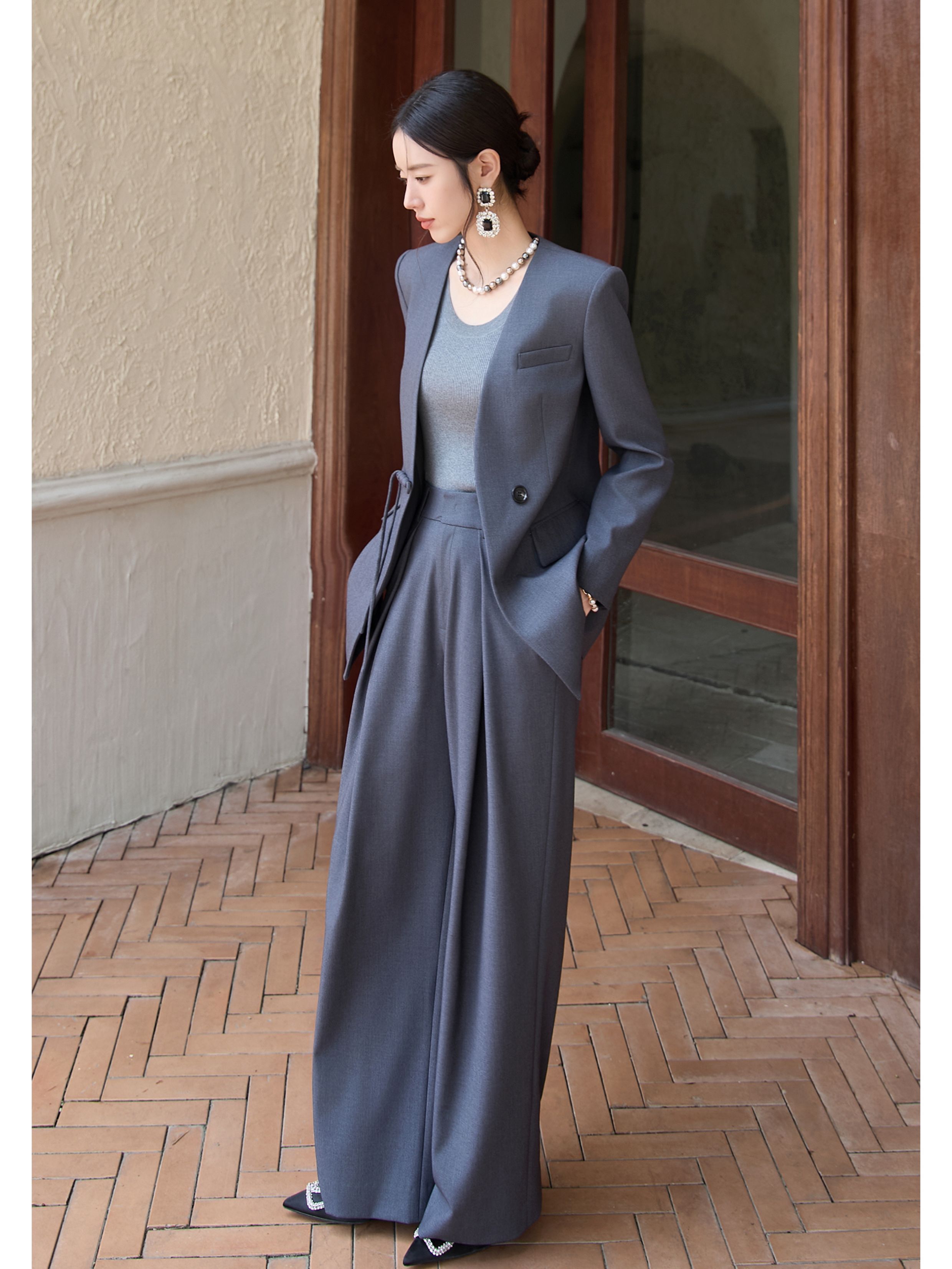 FUYAO扶摇 2025新款时尚套装女秋冬灰色高级感西装阔腿裤两件套