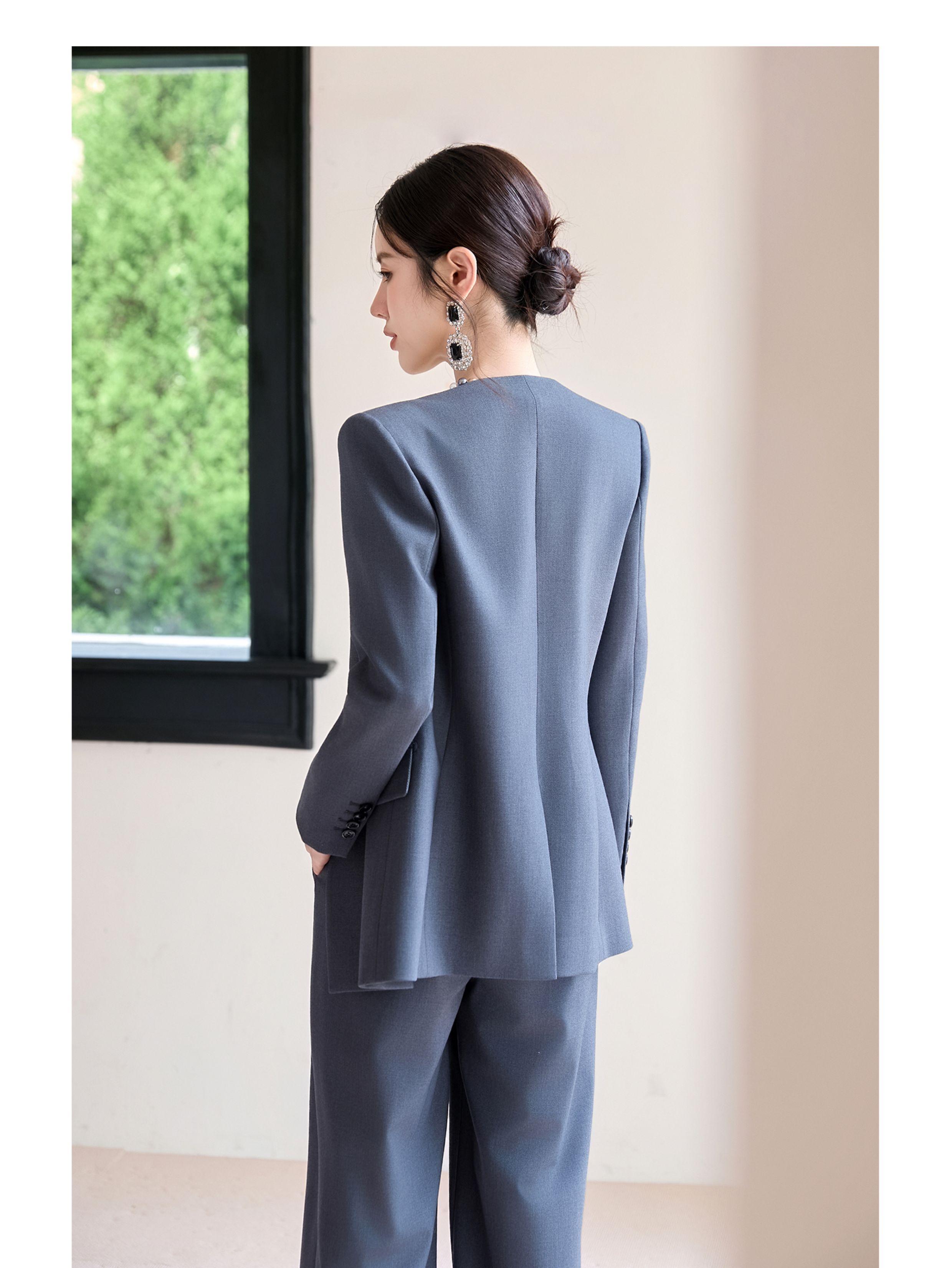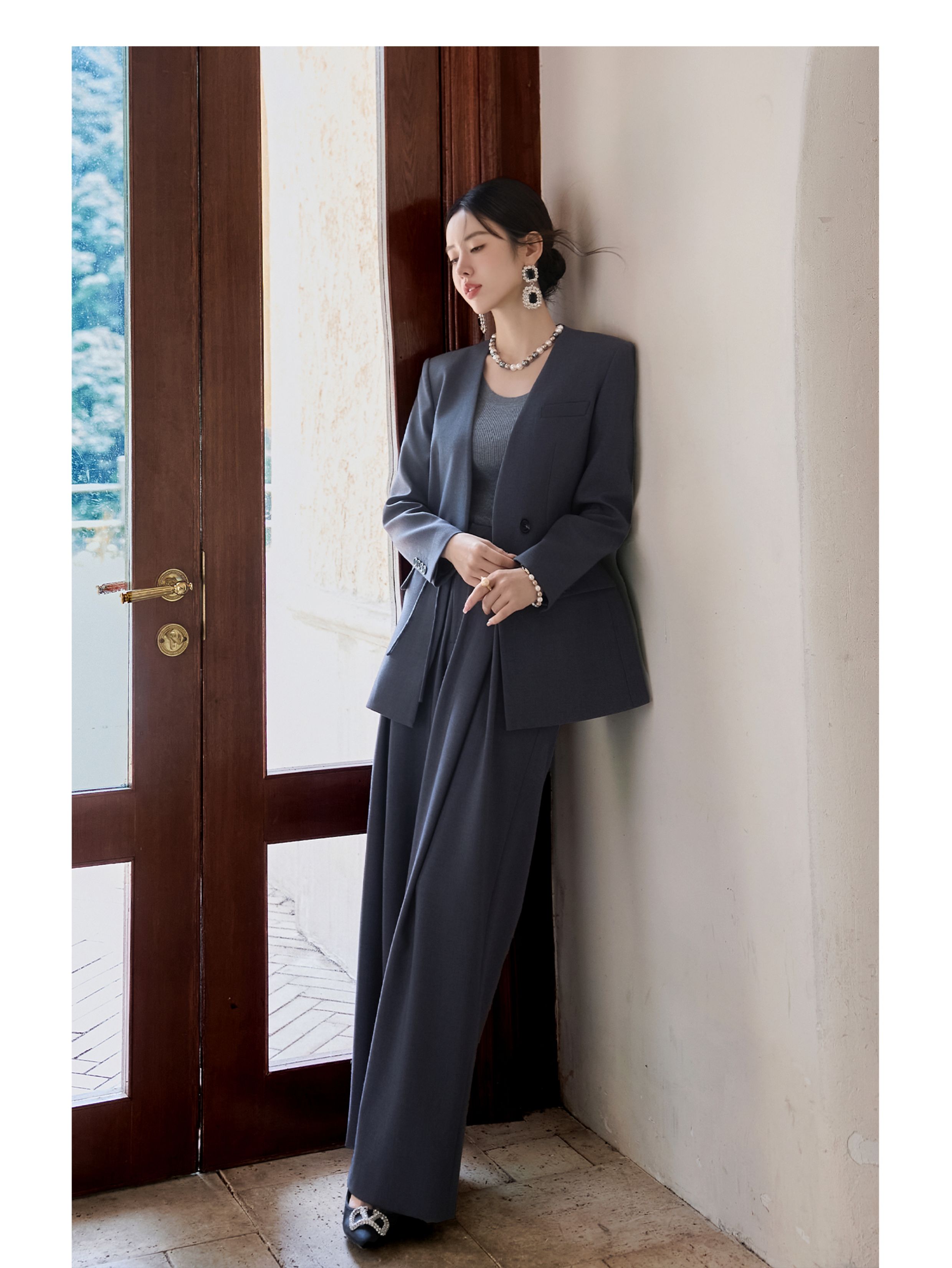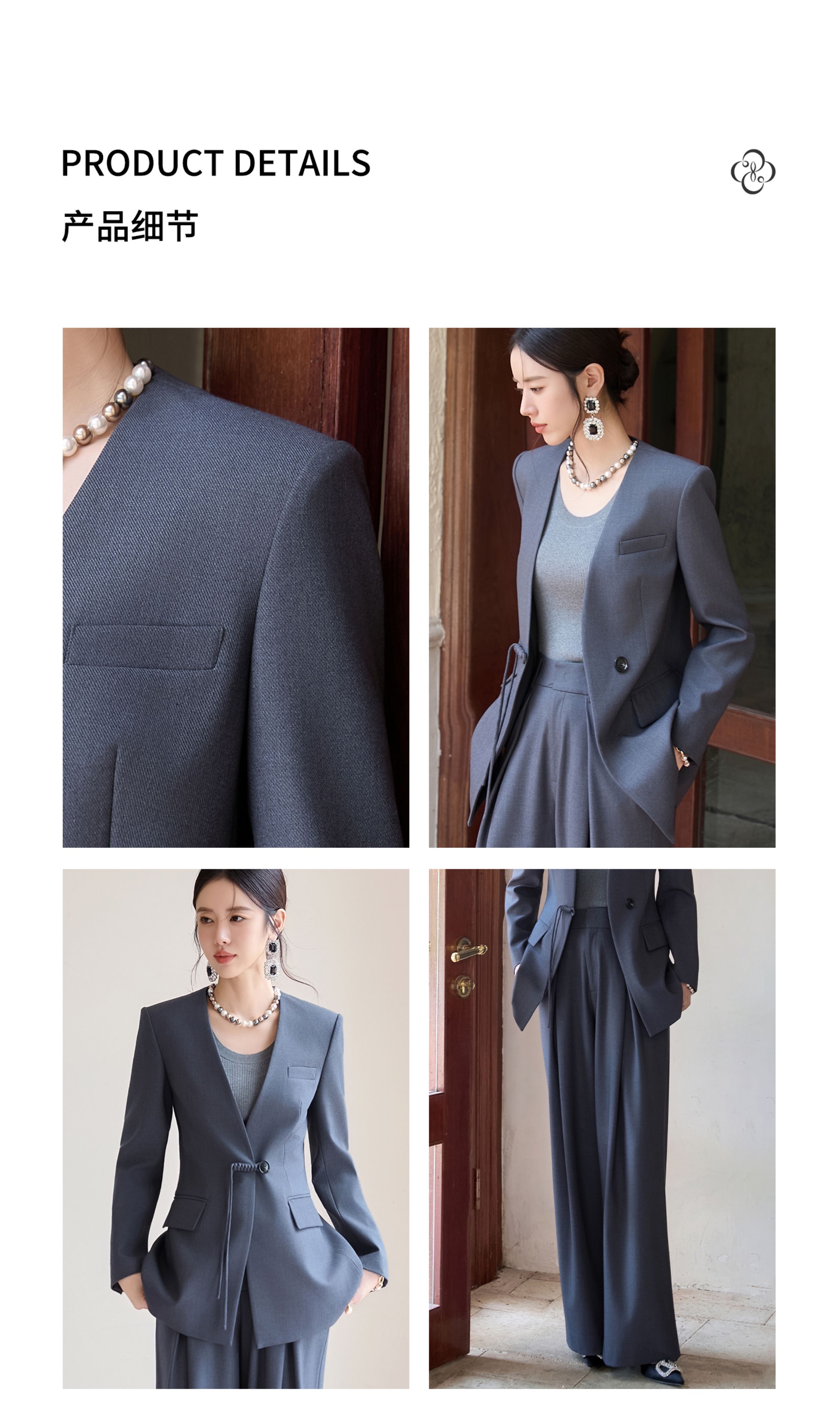 FUYAO扶摇 2025新款时尚套装女秋冬灰色高级感西装阔腿裤两件套