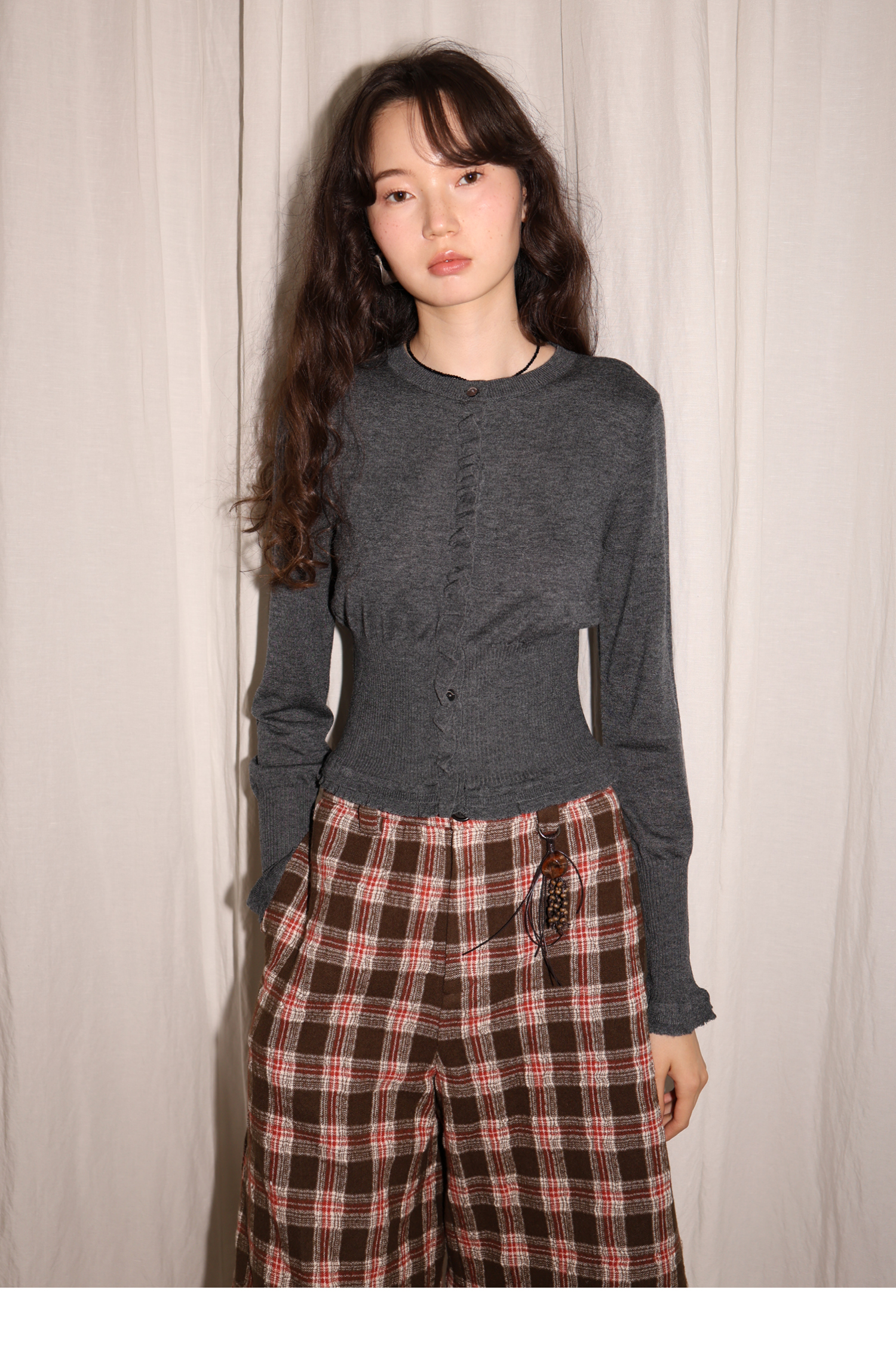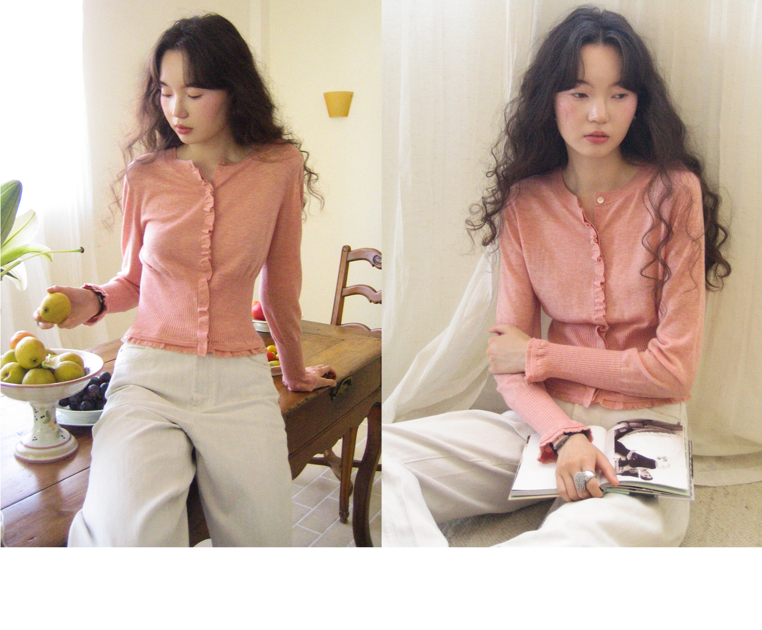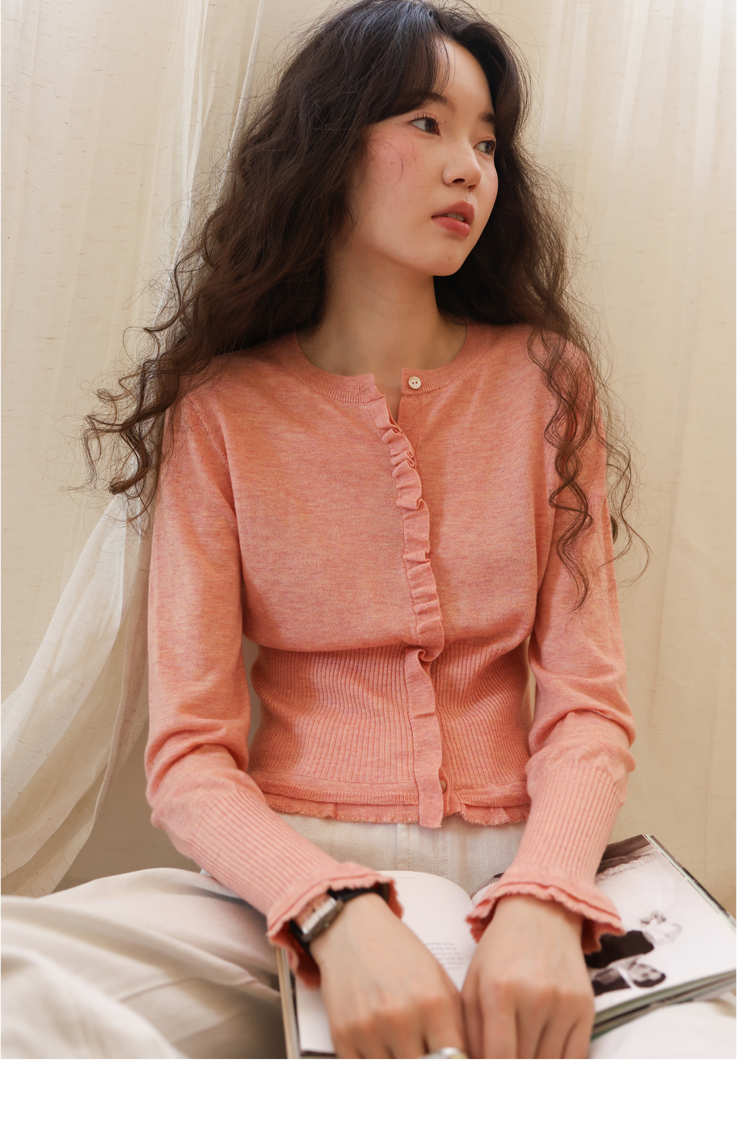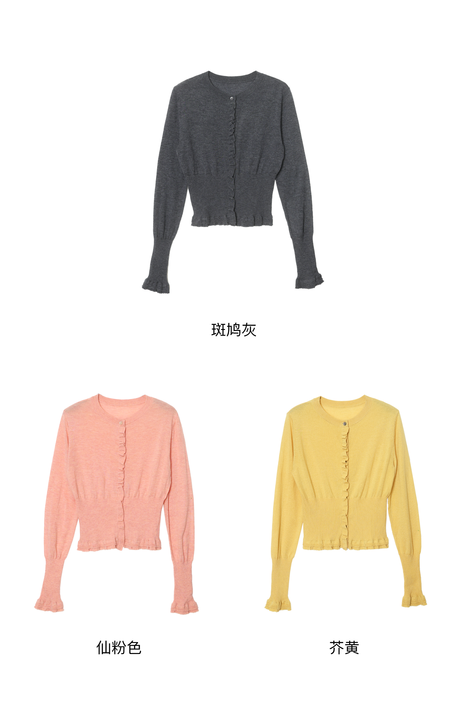 素舶 极细美丽诺羊毛亲肤弹力褶皱花边门襟法式收腰显瘦针织开衫
